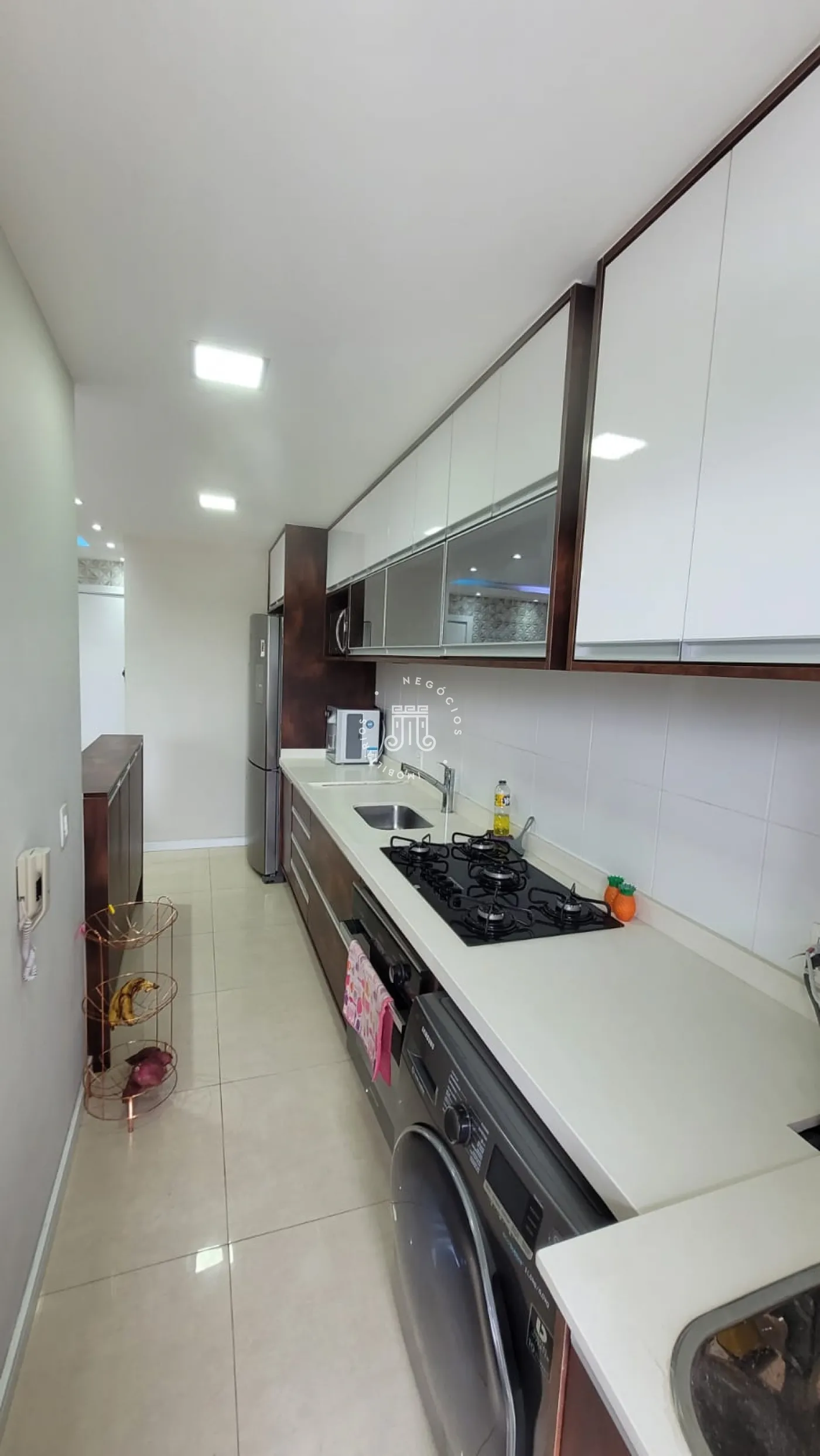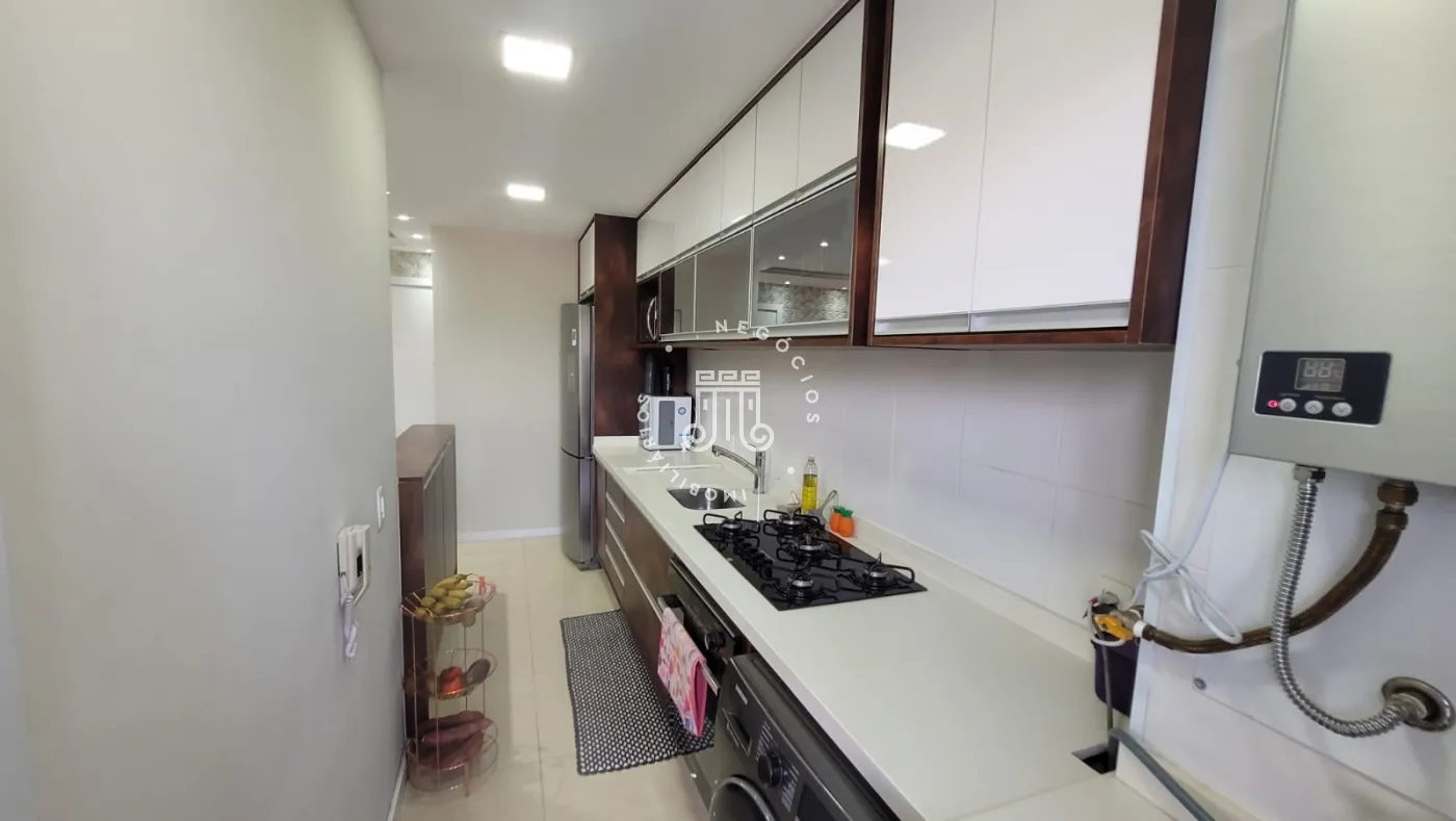 Acompanha: sofá retrátil de quase 3 metros de comprimento e com espuma da NASA, mesa com 4 cadeiras e banco embutido que junta com mais armários, cama com gavetas, geladeira 573 litros Brastemp inverter, cooktop, forno, máquina Samsung lava e seca, armários planejados na cozinha, banheiros, sala, lavanderia, quarto do casal e varanda.