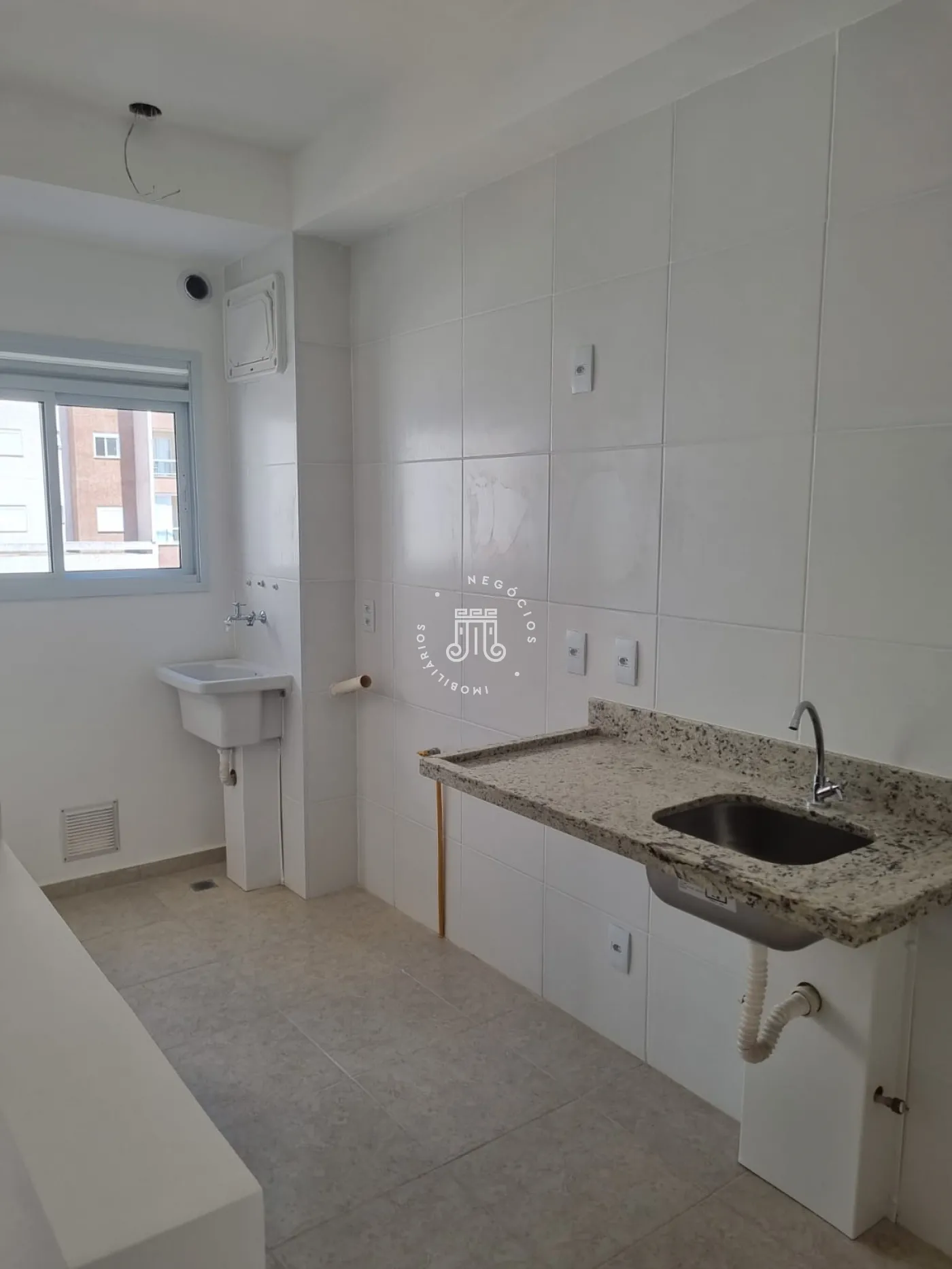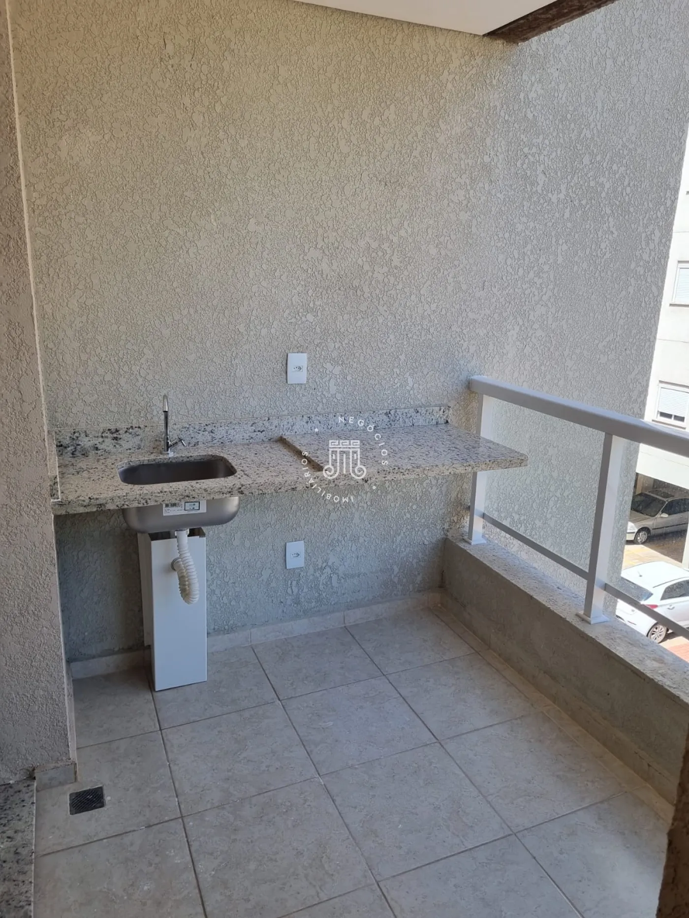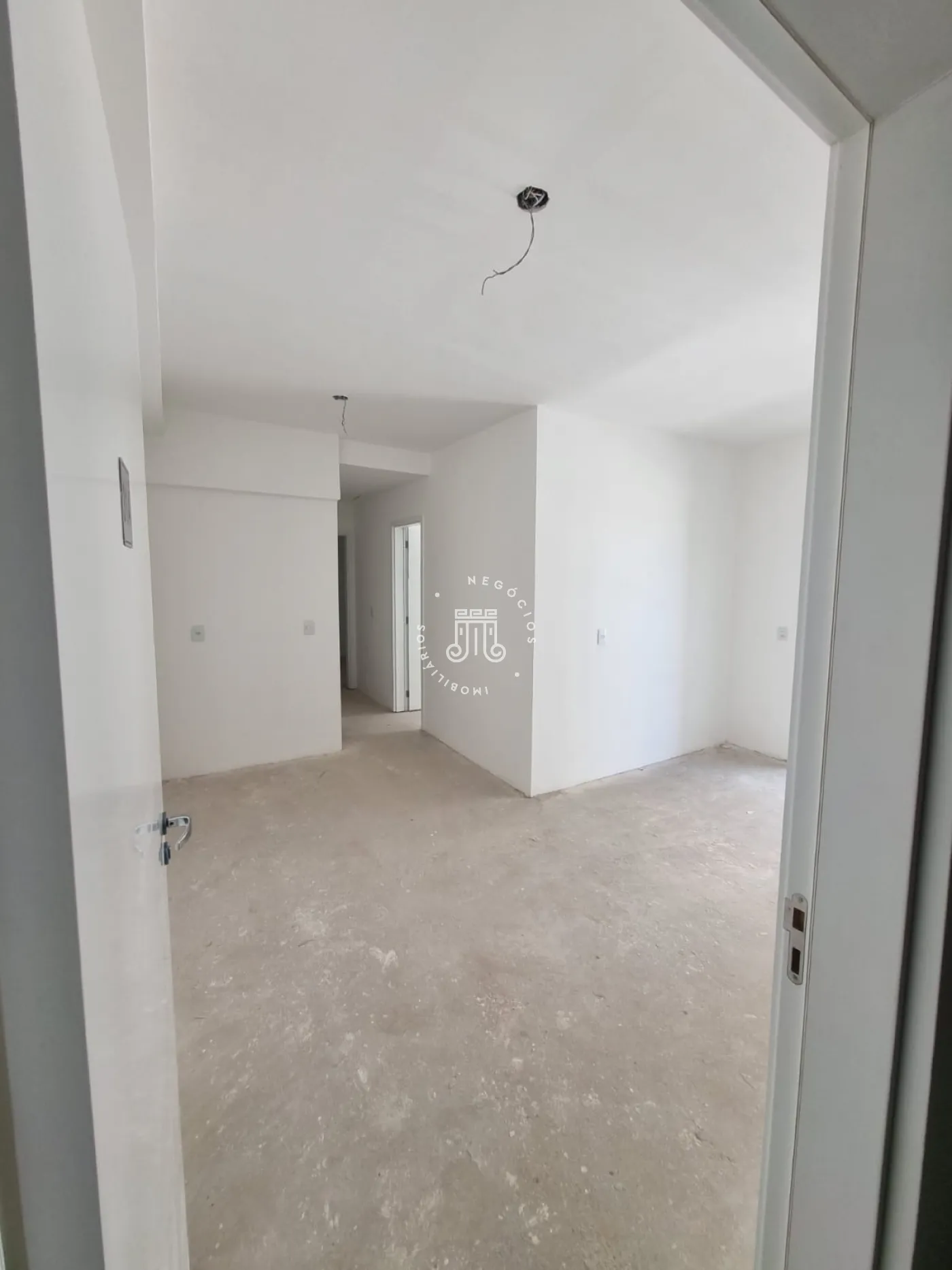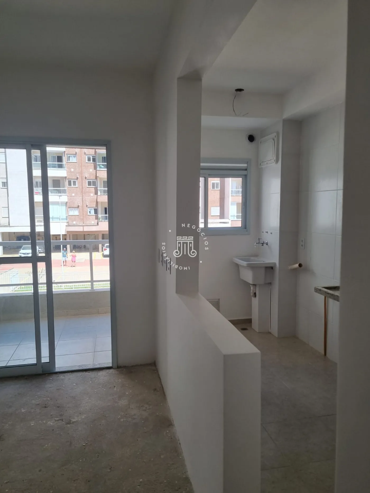 O imóvel conta com 2 quartos, sendo 1 suíte, banheiro social, cozinha, sala com varanda, área de serviço e 2 vagas descobertas.