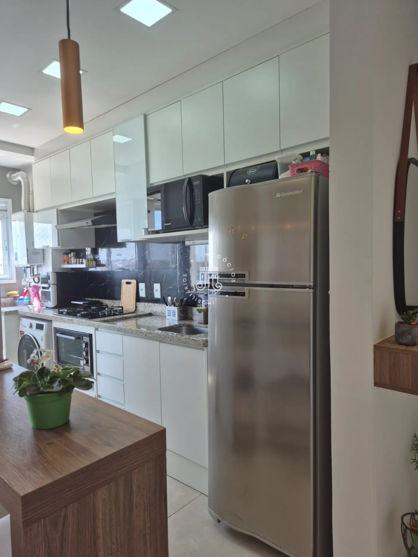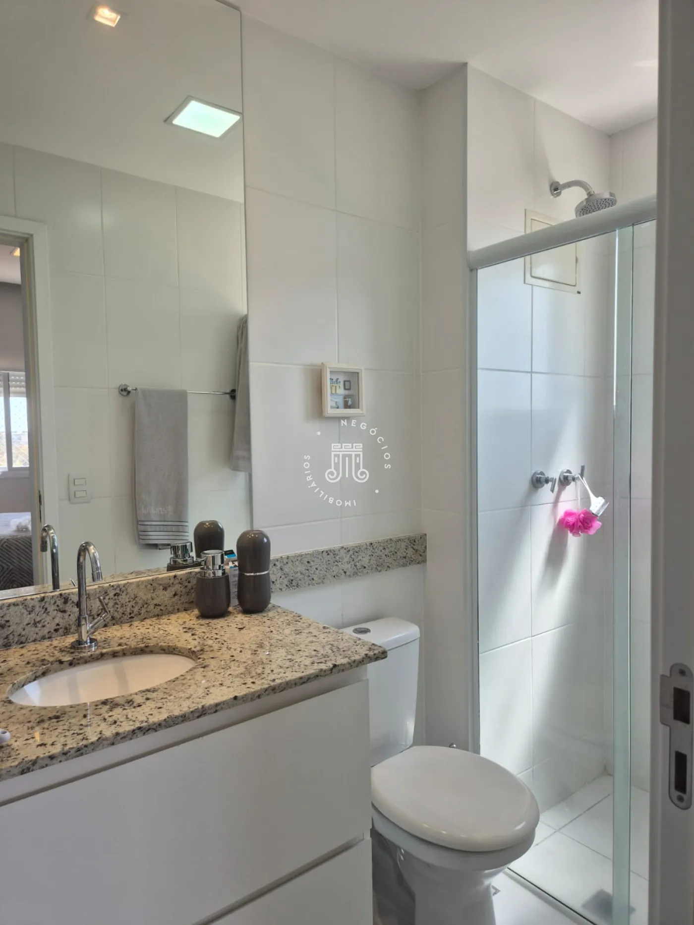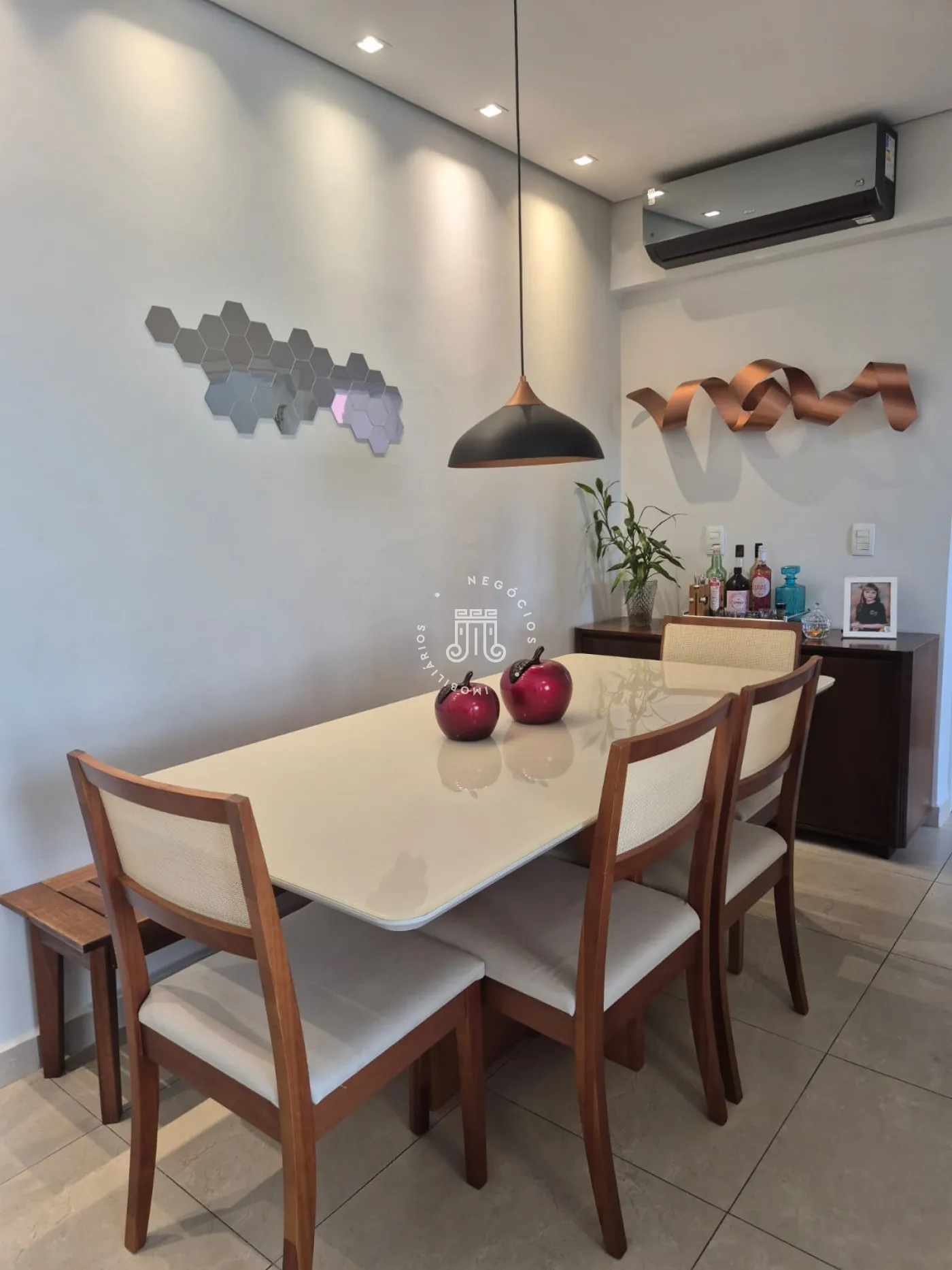 Apartamento com 3 quartos, sendo 2 suítes, banheiro social, 2 vagas de gaveta, uma coberta e uma descoberta, fixas e determinadas. Possui varanda gourmet e varanda técnica. O imóvel aceita financiamento, está em andar alto, com planejados e voltado para o sol da manhã.