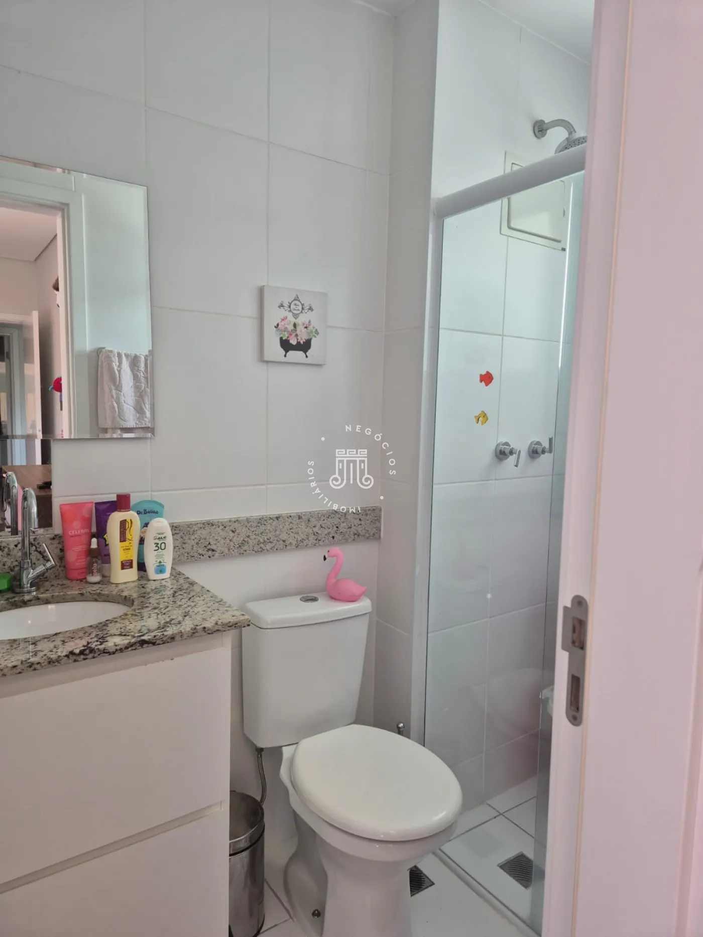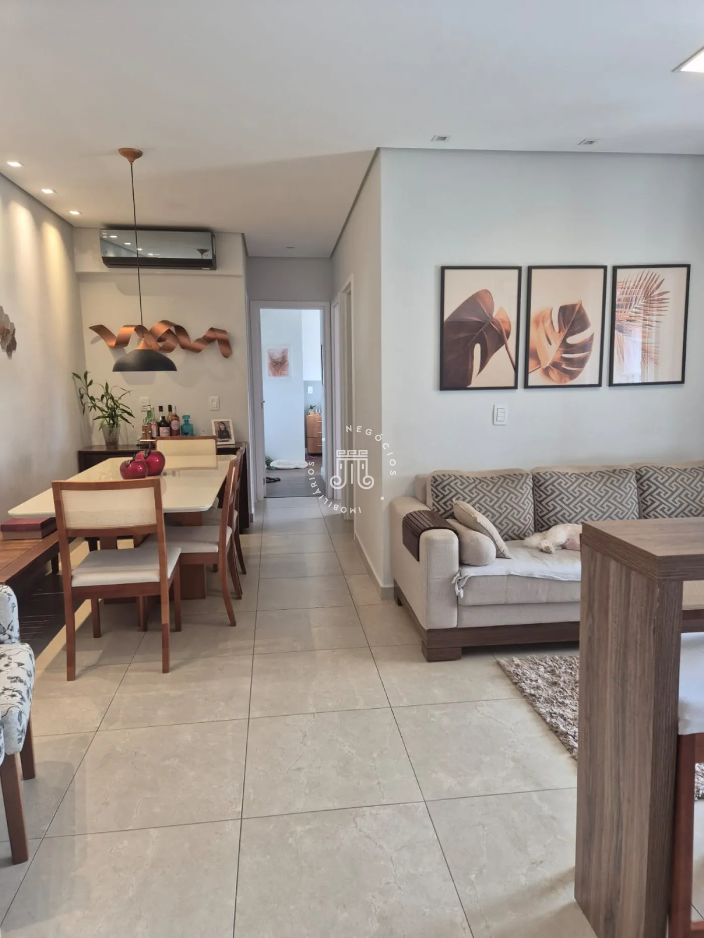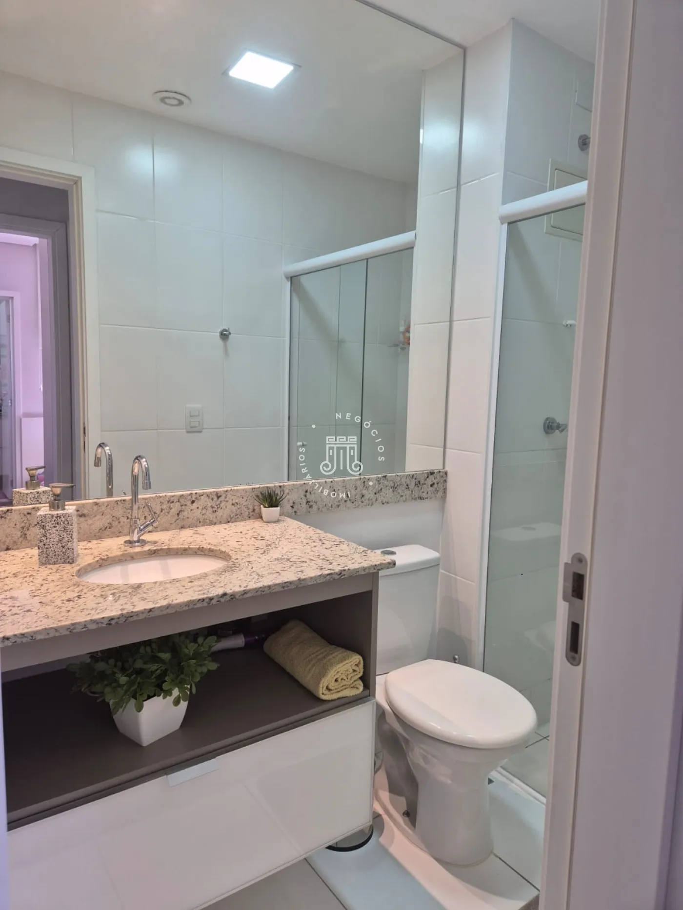 Apartamento com 3 quartos, sendo 2 suítes, banheiro social, 2 vagas de gaveta, uma coberta e uma descoberta, fixas e determinadas. Possui varanda gourmet e varanda técnica. O imóvel aceita financiamento, está em andar alto, com planejados e voltado para o sol da manhã.