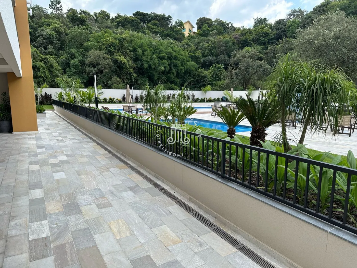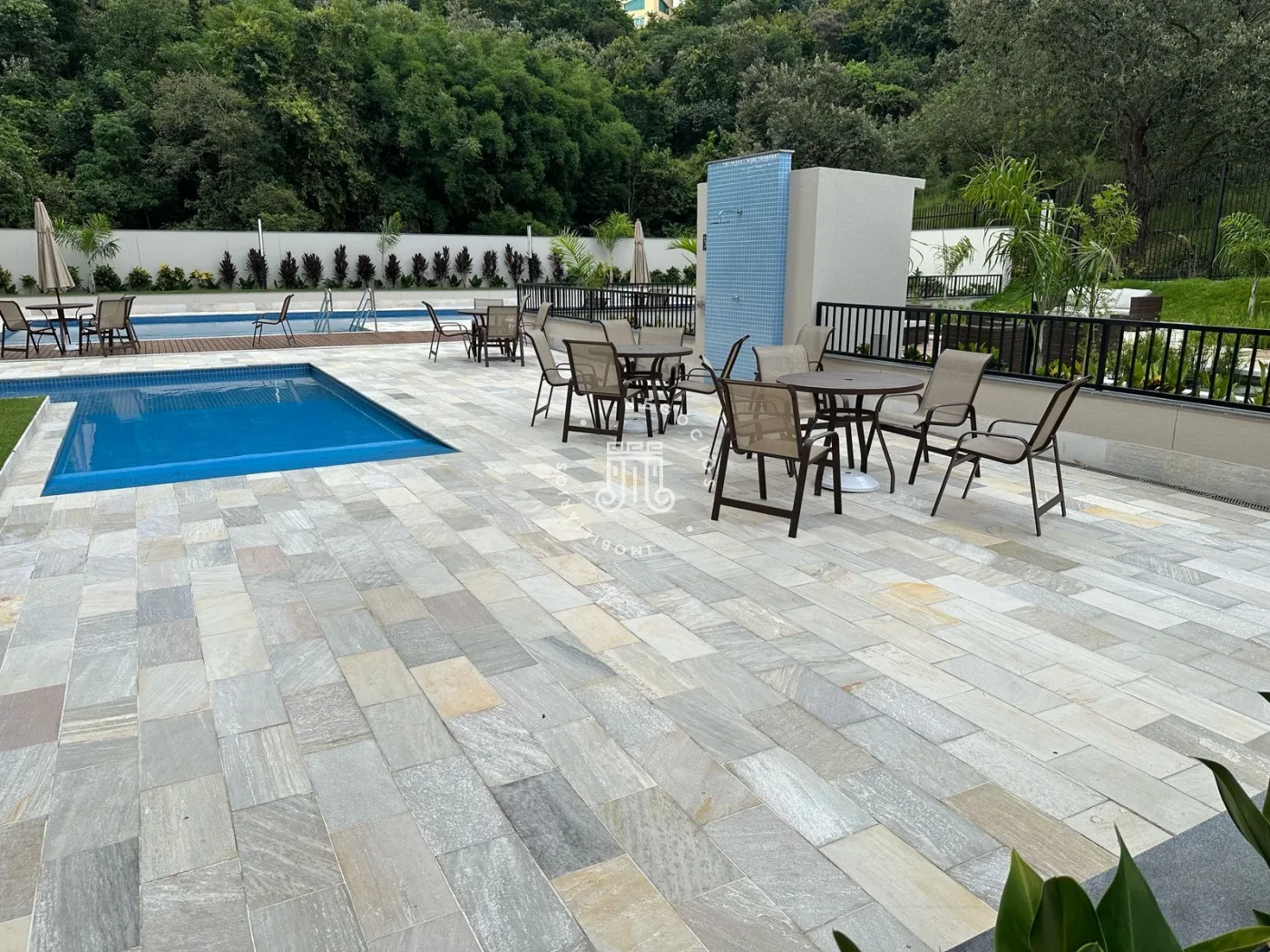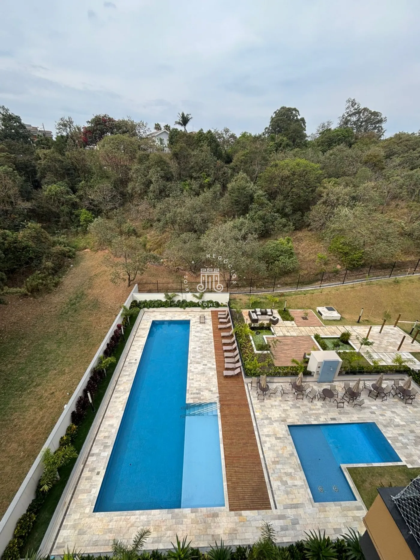 Apartamento à venda no condomínio Odeon Residencial, Jundiaí. Ele possui 2 dormitórios sendo 1 suíte, 1 banheiro, cozinha, sala ampliada, varanda com vista para mata virgem e para as piscinas.