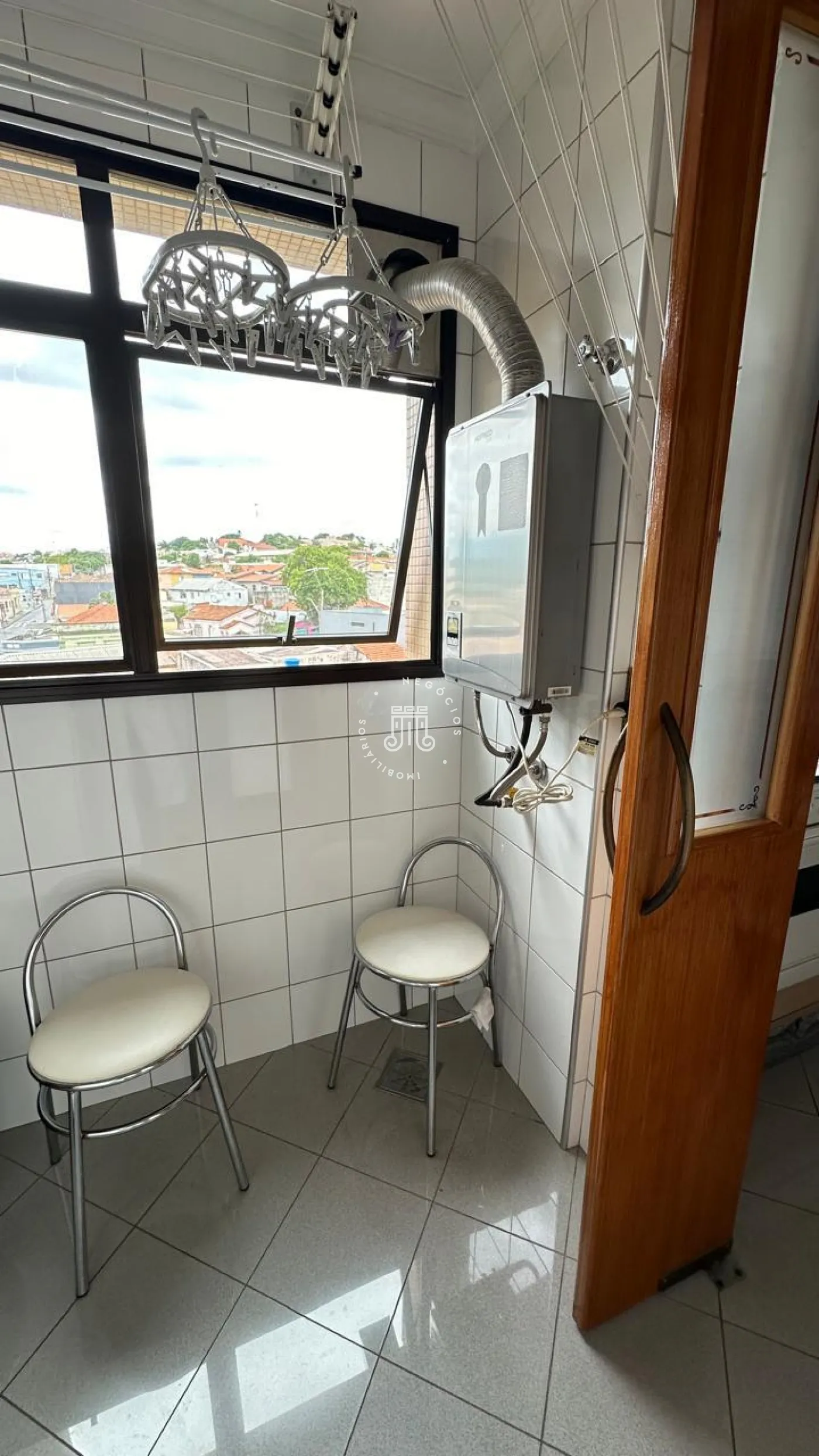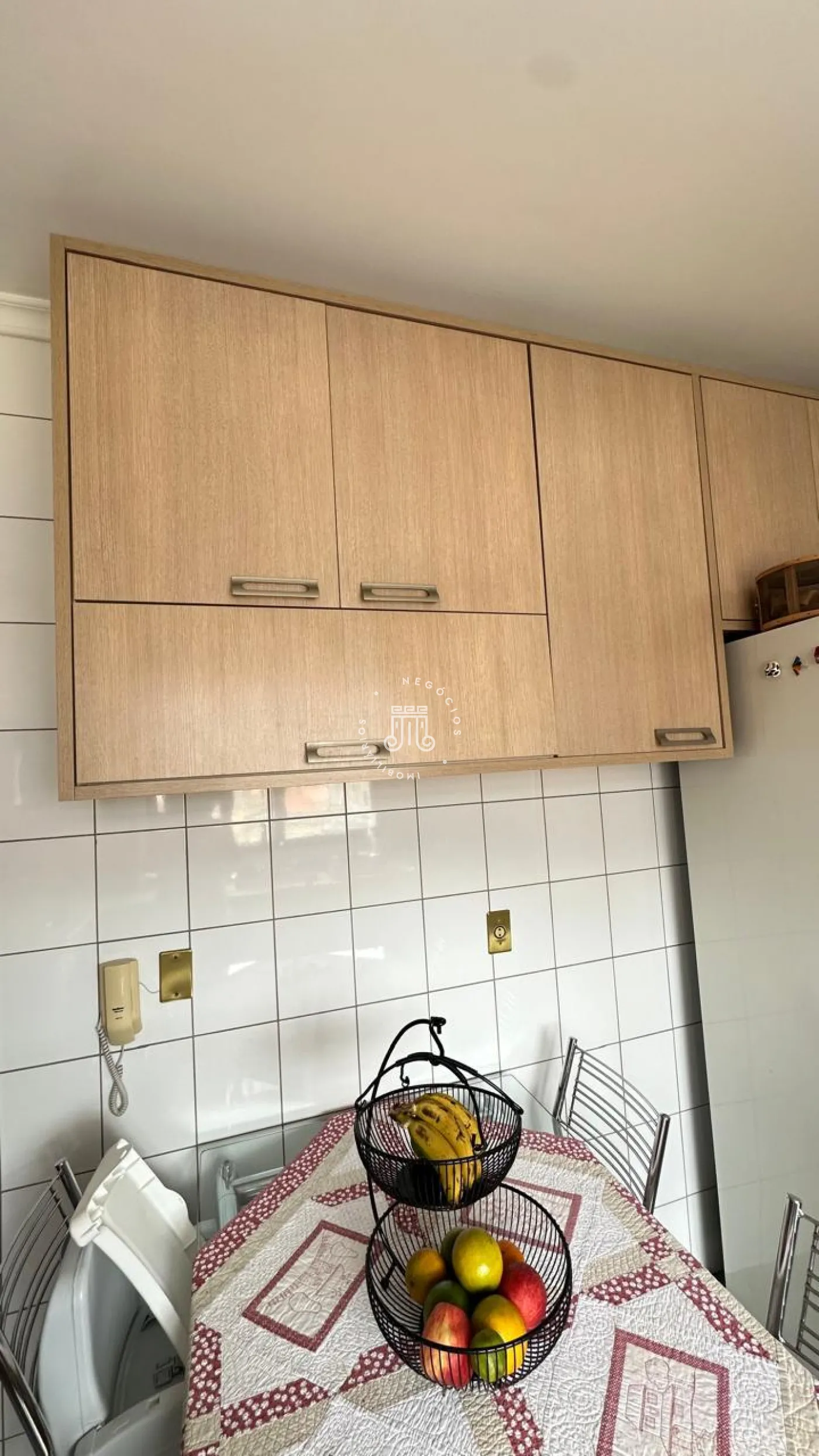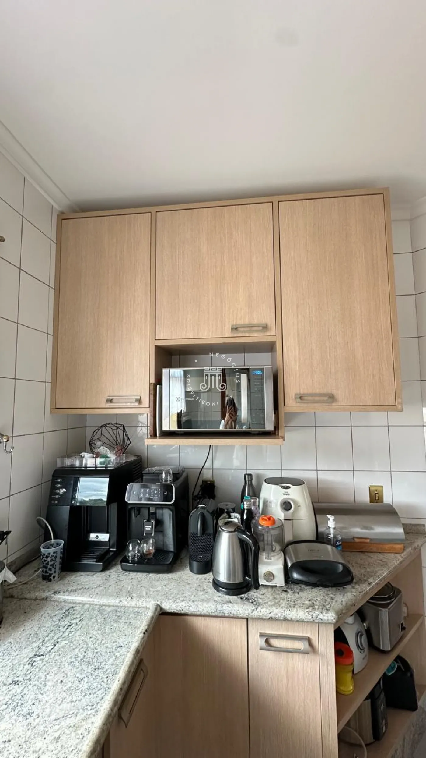 Sala de jantar e sala de estar, cozinha e área de serviço com armários planejados, piso frio no apartamento inteiro.