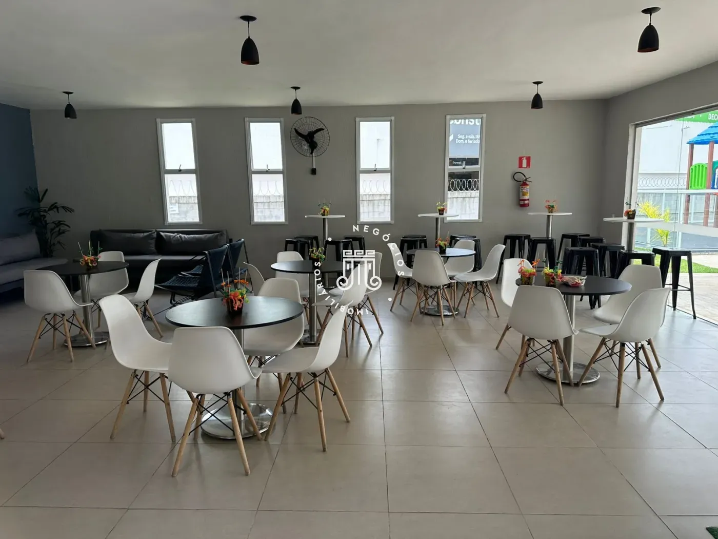 O condomínio oferece portaria 24 horas, elevador, academia, piscina, quadra esportiva, salão de festas, playground, salão de jogos e brinquedoteca.