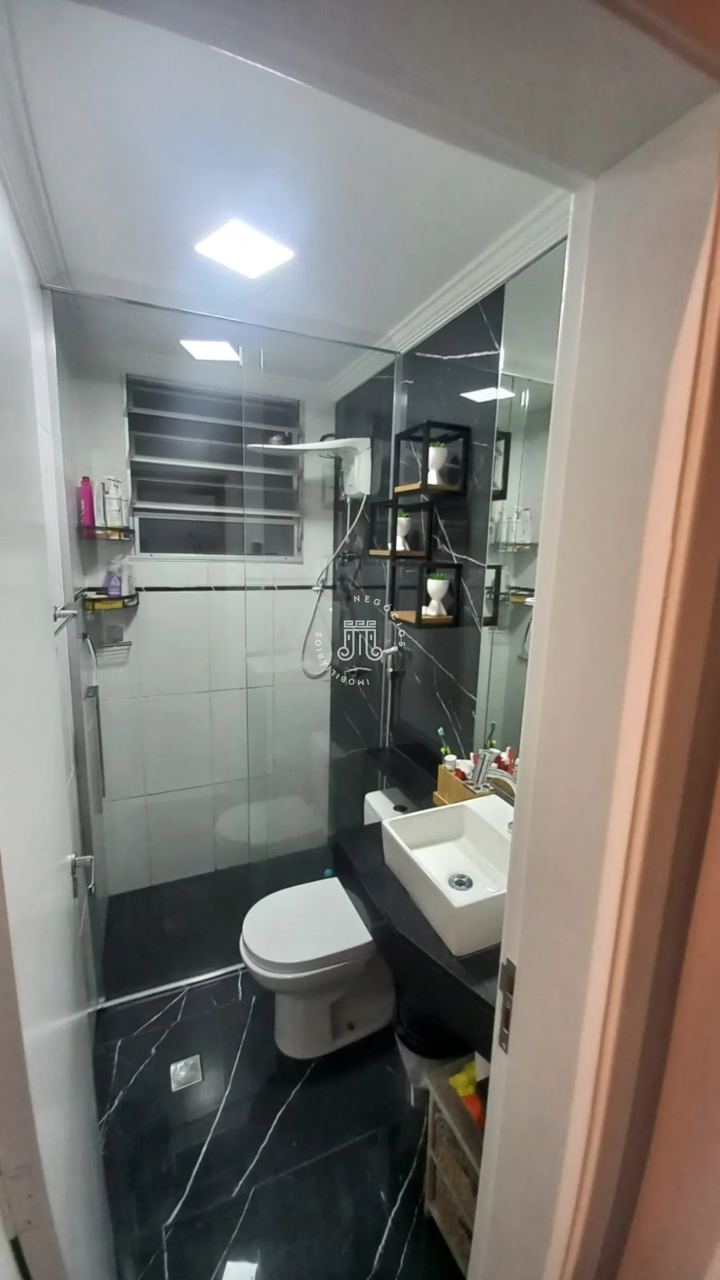 Apartamento térreo recém-reformado com 50m² de área útil, distribuídos em 2 dormitórios, sala de estar integrada à sala de jantar, cozinha estilo americana com armários planejados e bancada em granito, integrada à área de serviço. O banheiro possui armário planejado, bancada em mármore e box em blindex. A unidade conta ainda com 1 vaga de garagem coberta.