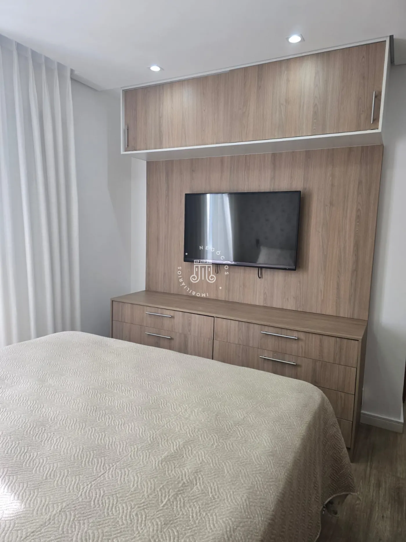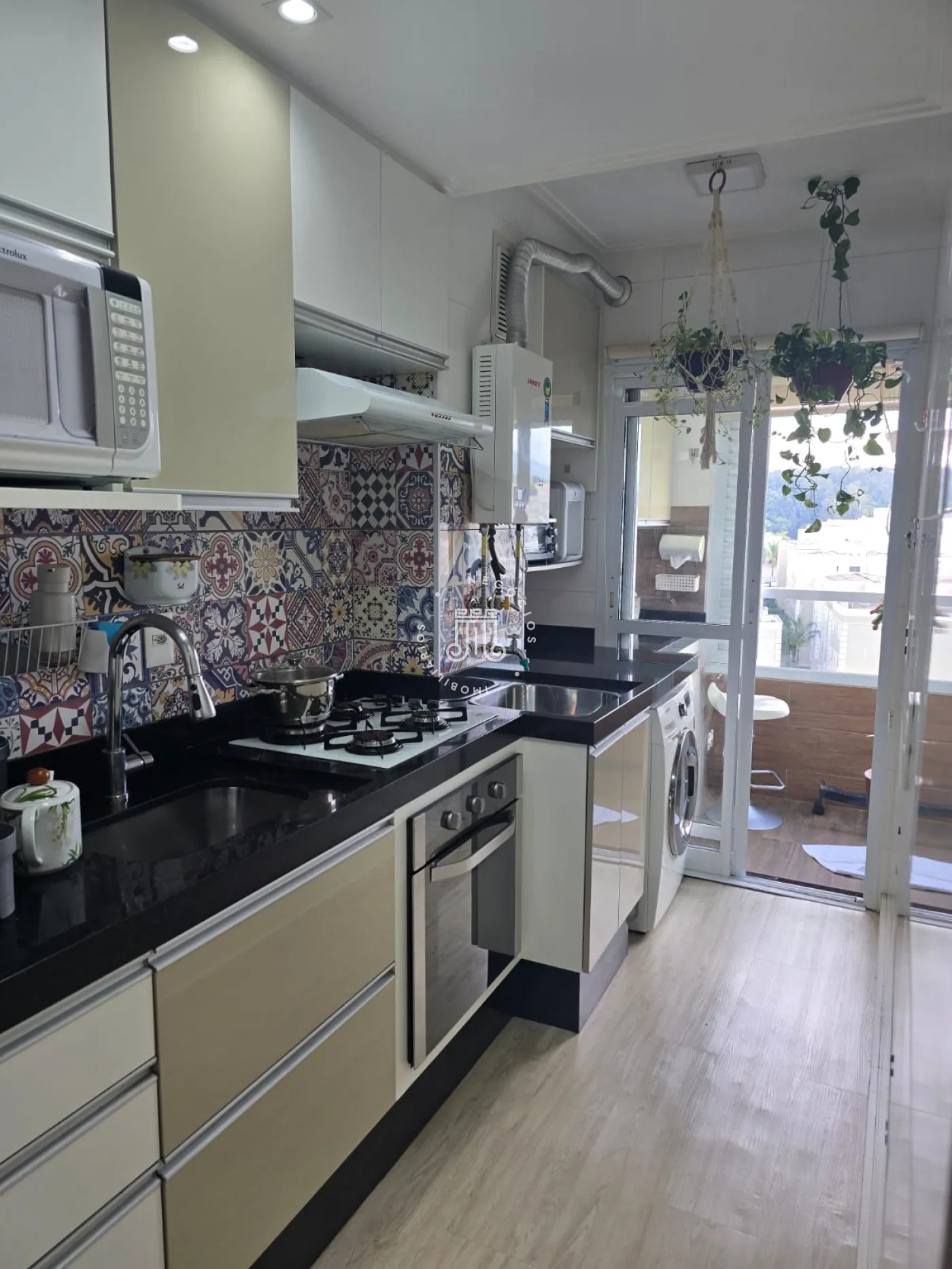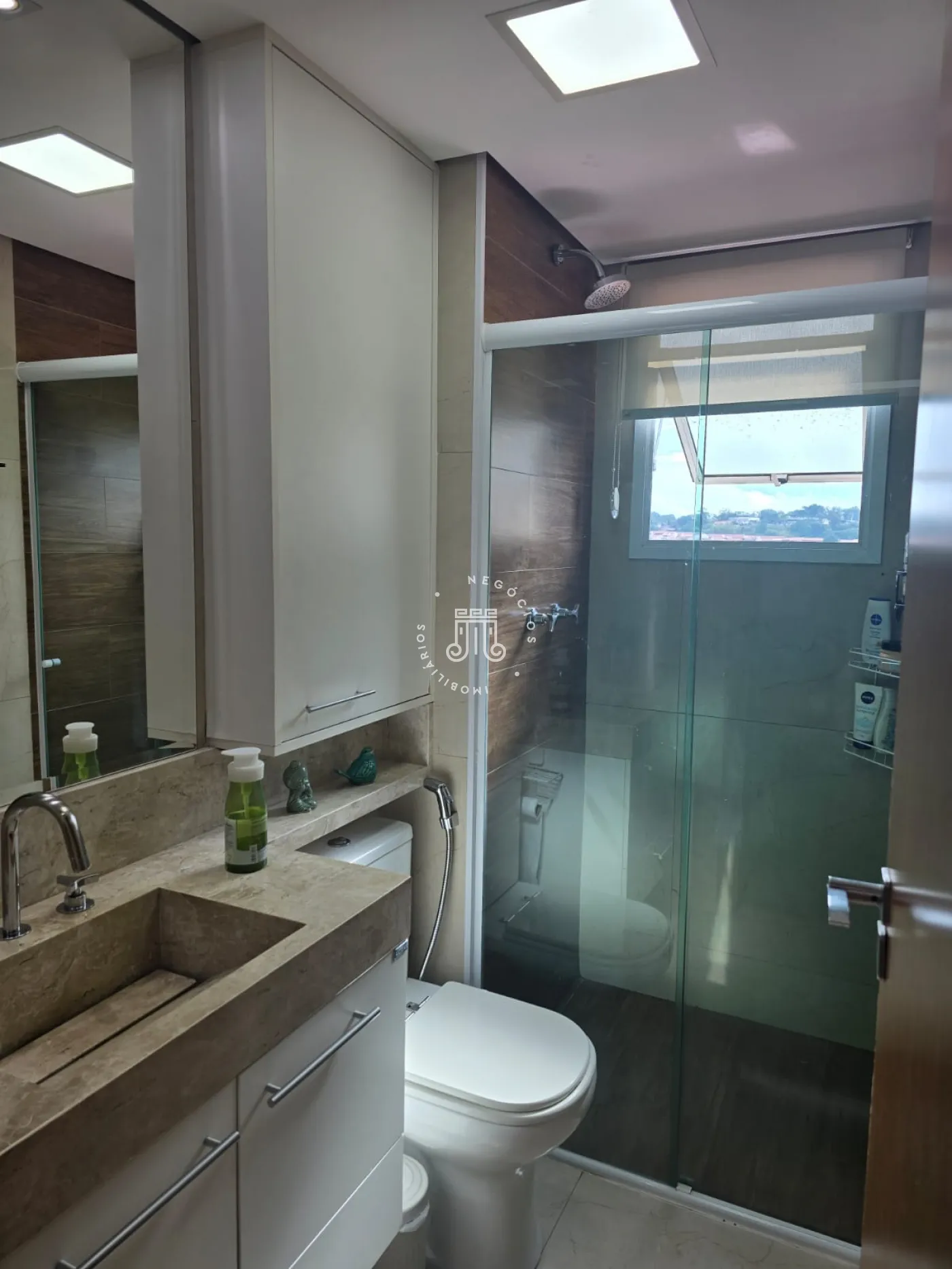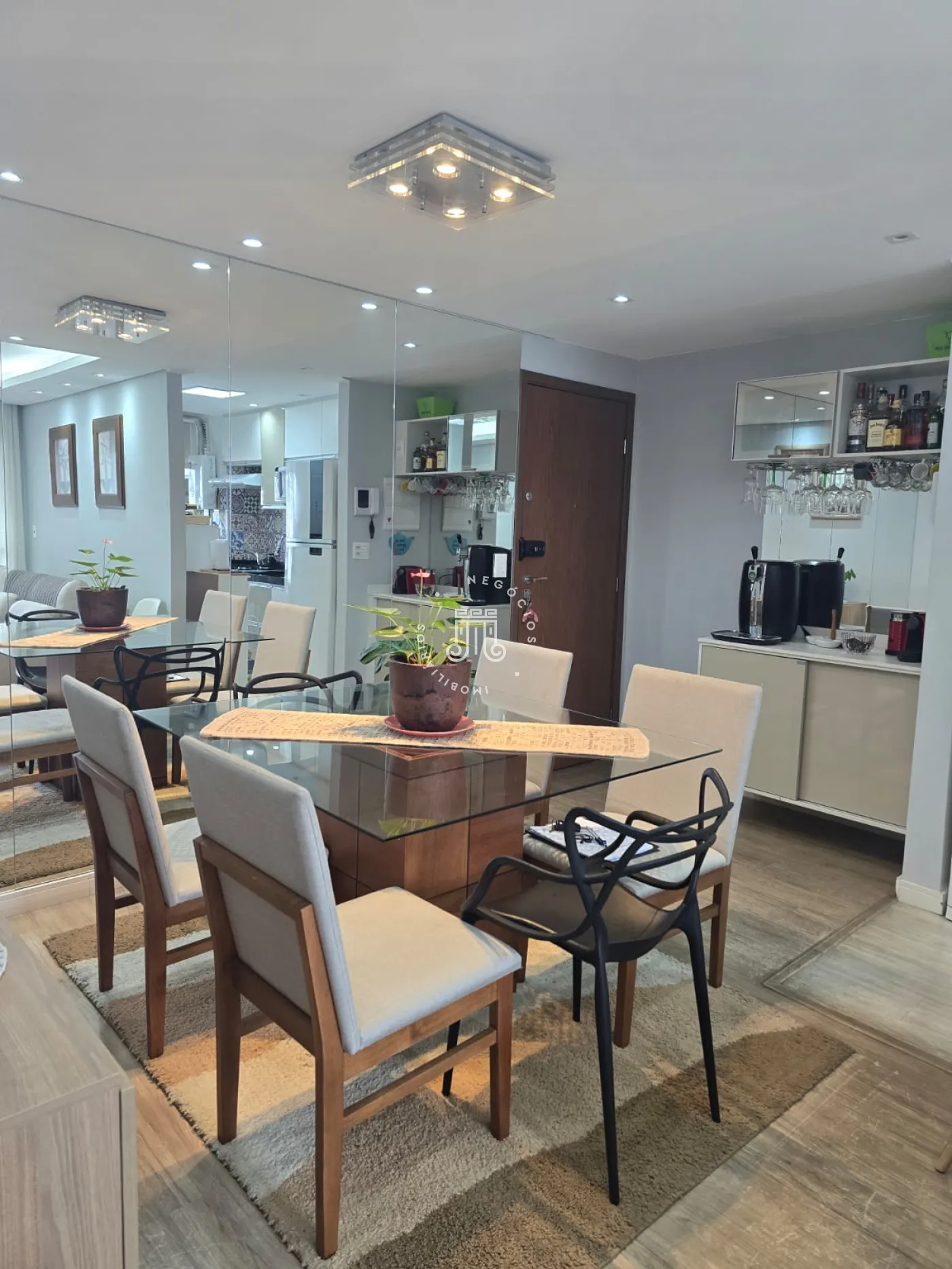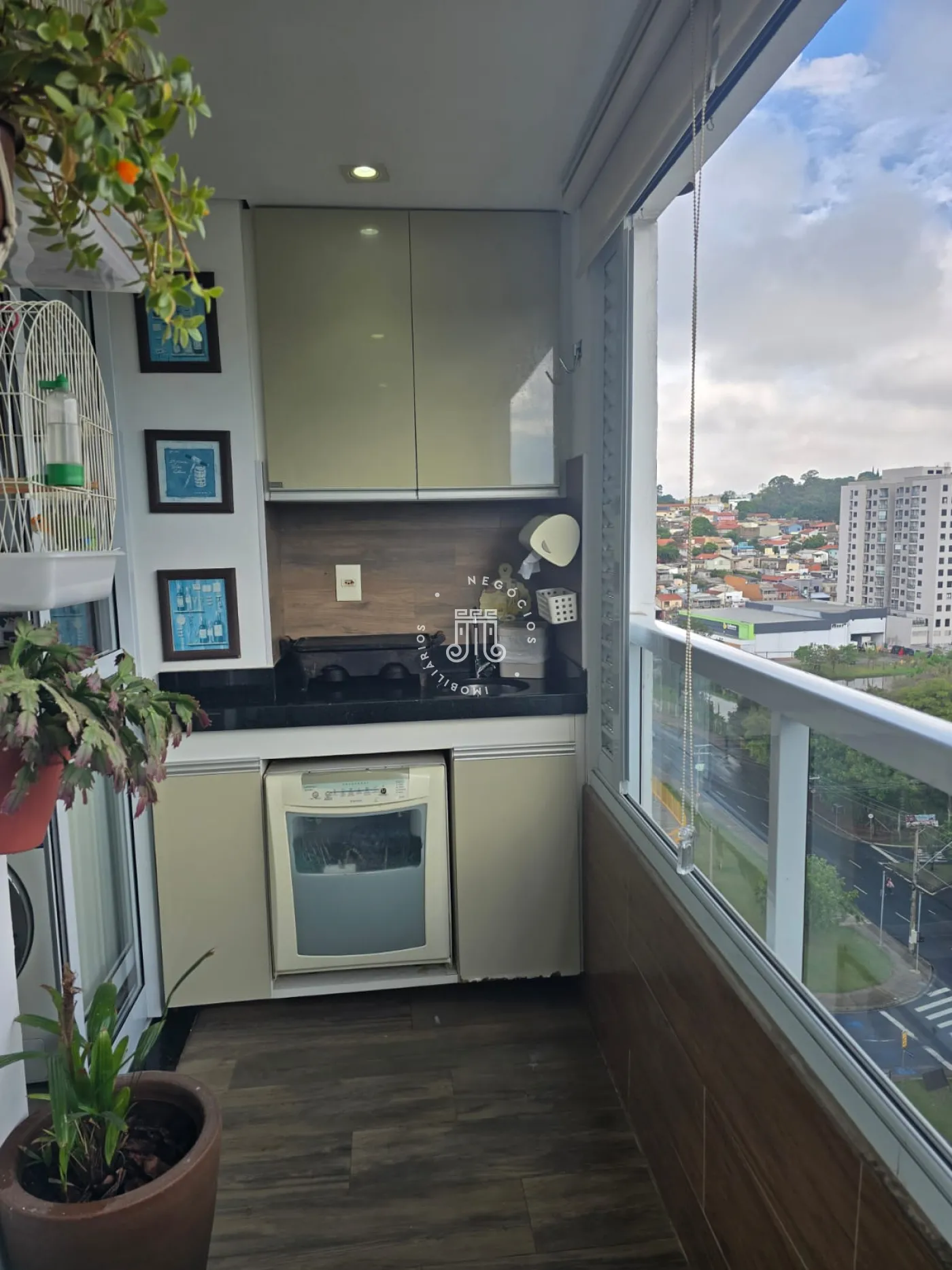 Com 2 dormitórios suíte com box de vidro, 1 banheiro com lavabo, corredor com armário, sala para 2 ambientes e varanda envidraçada com sol da tarde e vista a avenida, andar alto, cozinha planejada, área de serviço, 1 vaga de garagem coberta.