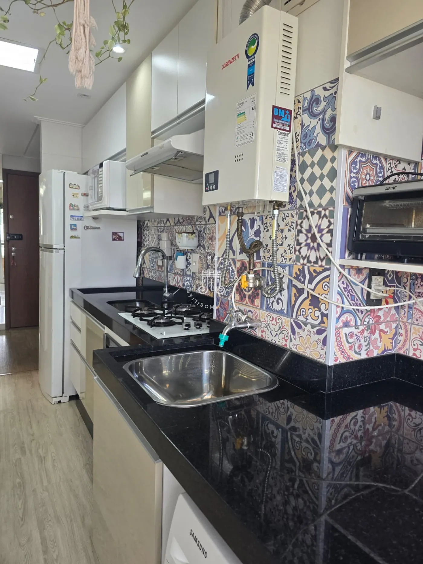 condomínio com piscina, sauna, academia salão de festas, churrasqueira, área kids e salão de jogos.