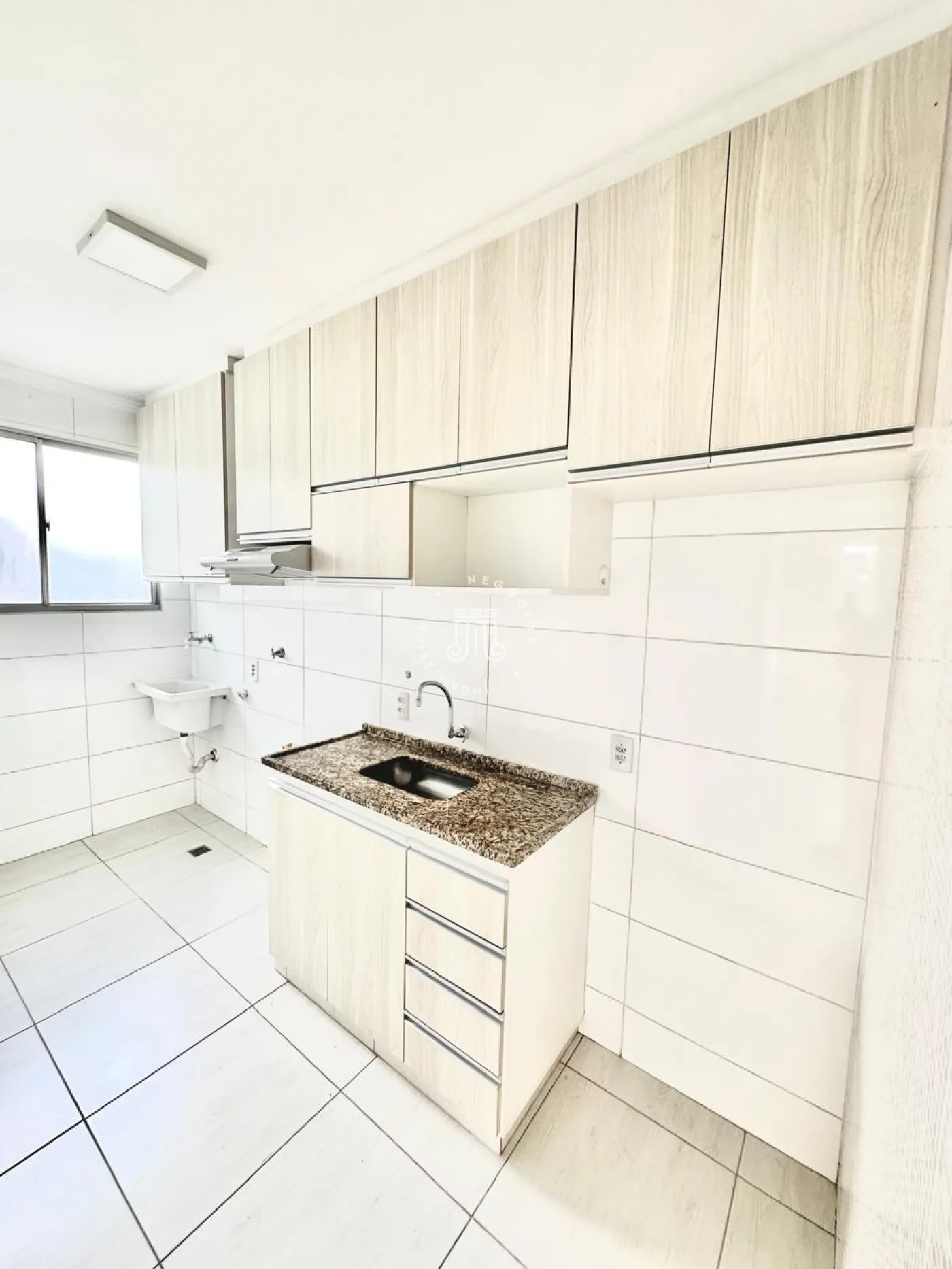 O imóvel possui área de 51m², distribuída em dois dormitórios, um banheiro, cozinha com armários planejados, sala de estar e sala de jantar. Conta ainda com uma vaga de garagem coberta.