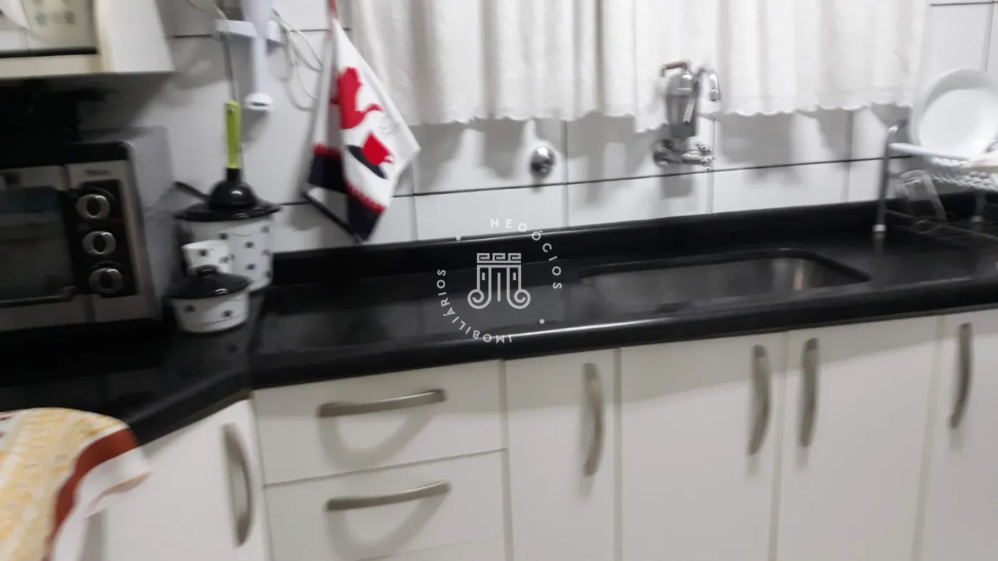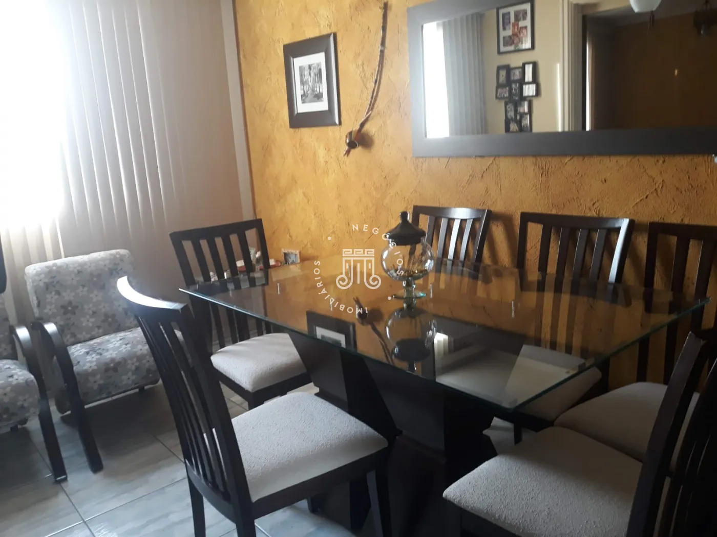 Excelente apartamento com 2 dormitórios, sala com um espelho grande dando amplitude no ambiente, cozinha com armários, área de serviço e 1 banheiro.