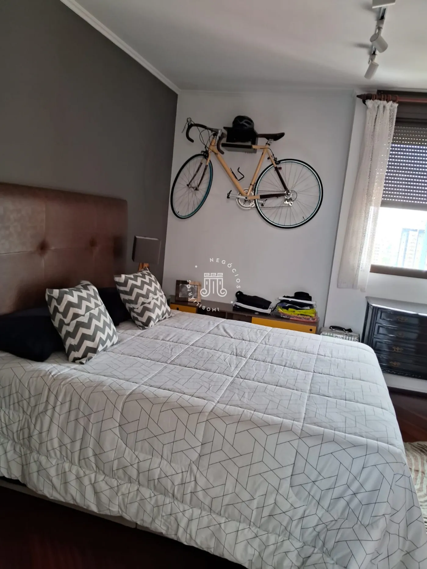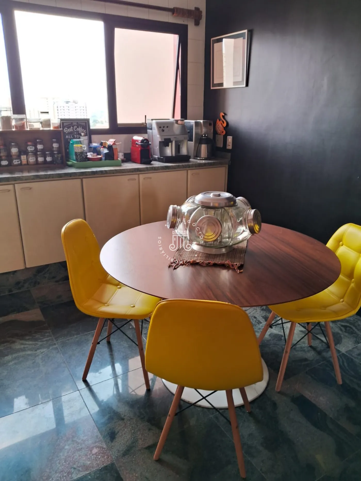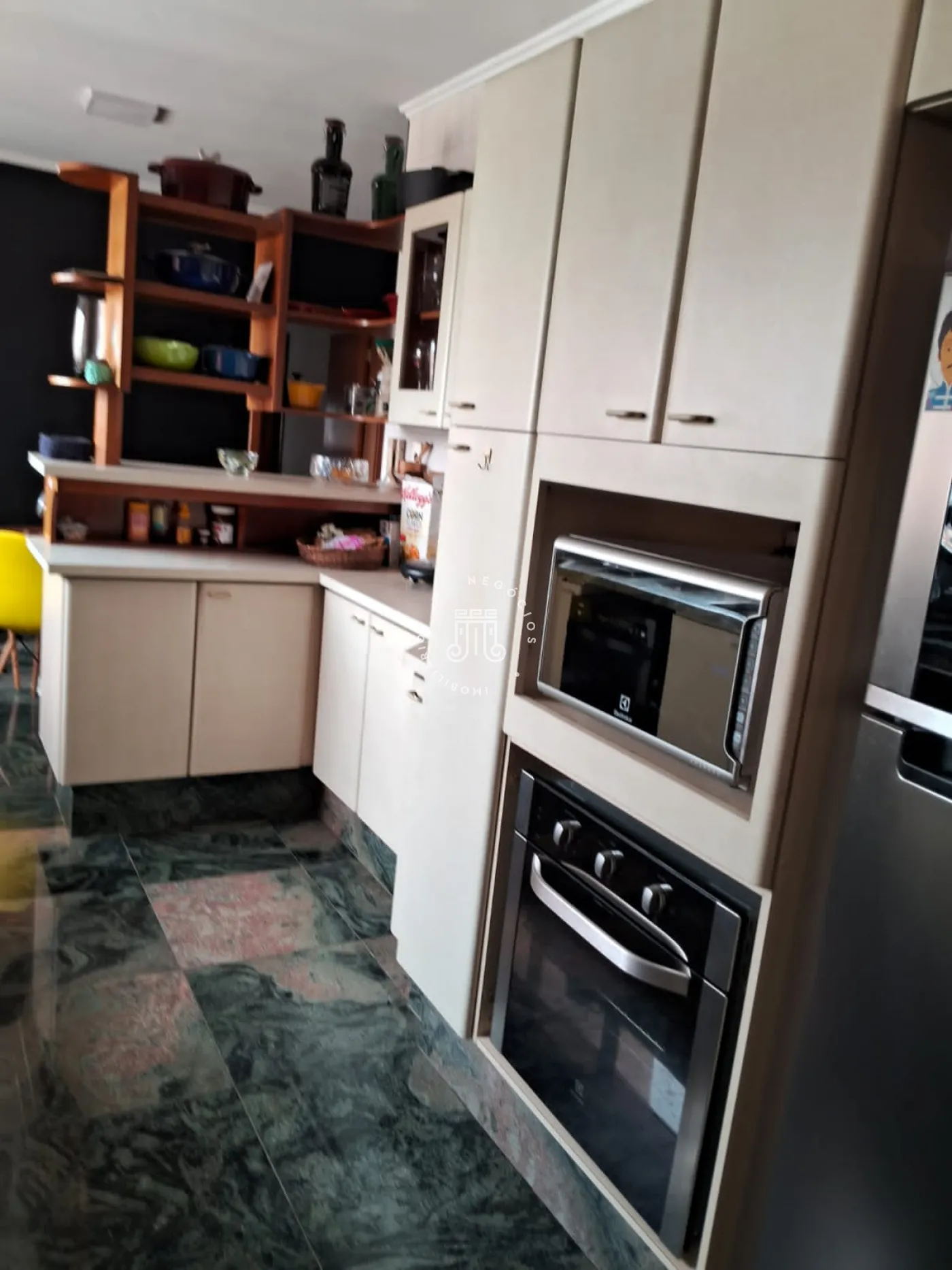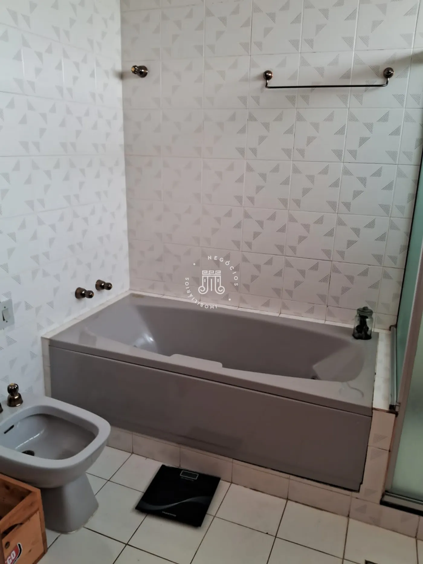O apartamento possui três quartos com armários, sendo uma suíte com closet e banheira, além de banheiro social. A sala é distribuída em três ambientes, com piso de assoalho e sacada. O imóvel conta ainda com lavabo, escritório, copa, cozinha planejada, área de serviço, despensa e banheiro de serviço. São três vagas de garagem no subsolo. O prédio dispõe de gerador de energia e piscina. O condomínio está localizado em área com acesso a serviços, comércios e opções de transporte.