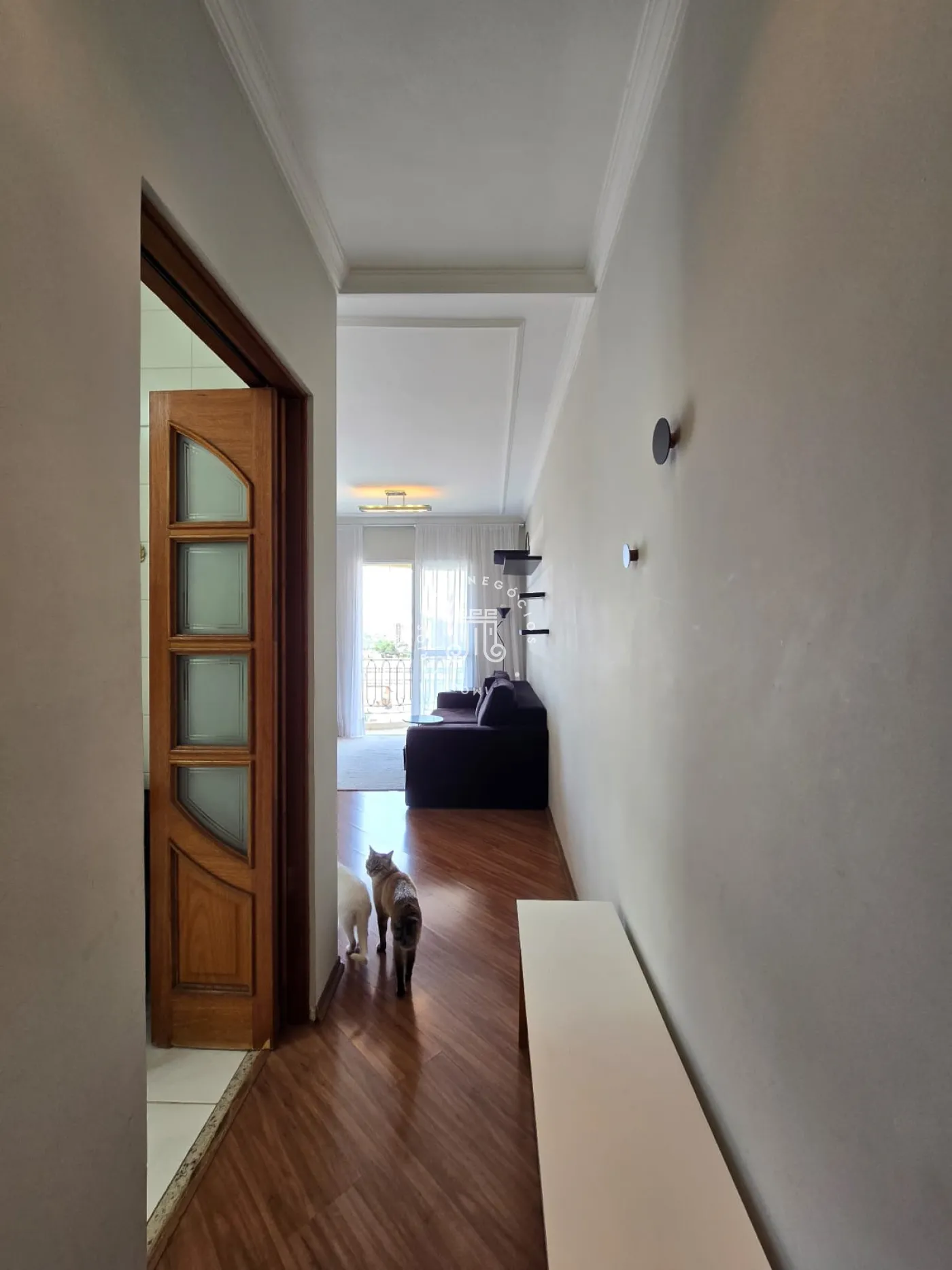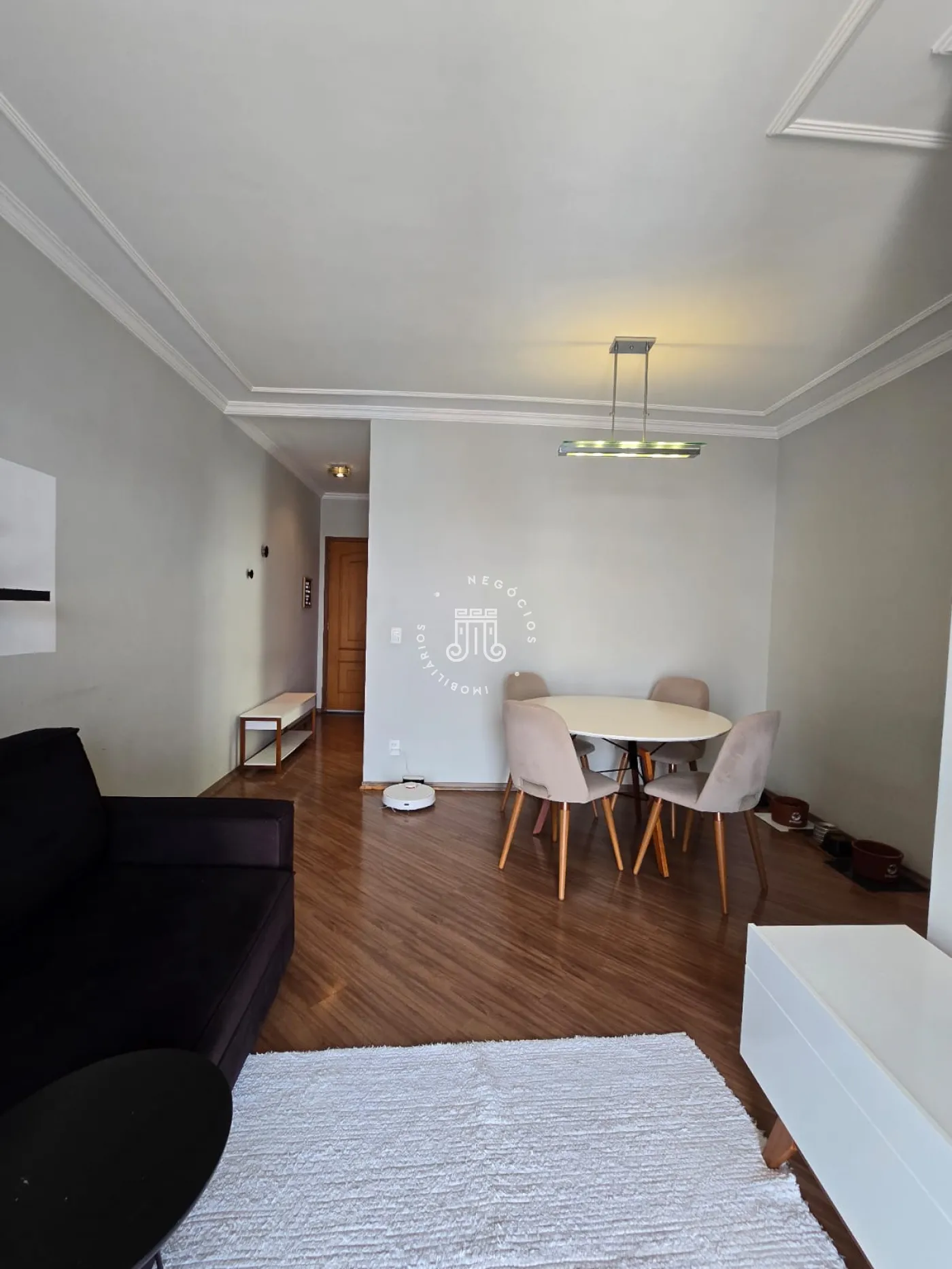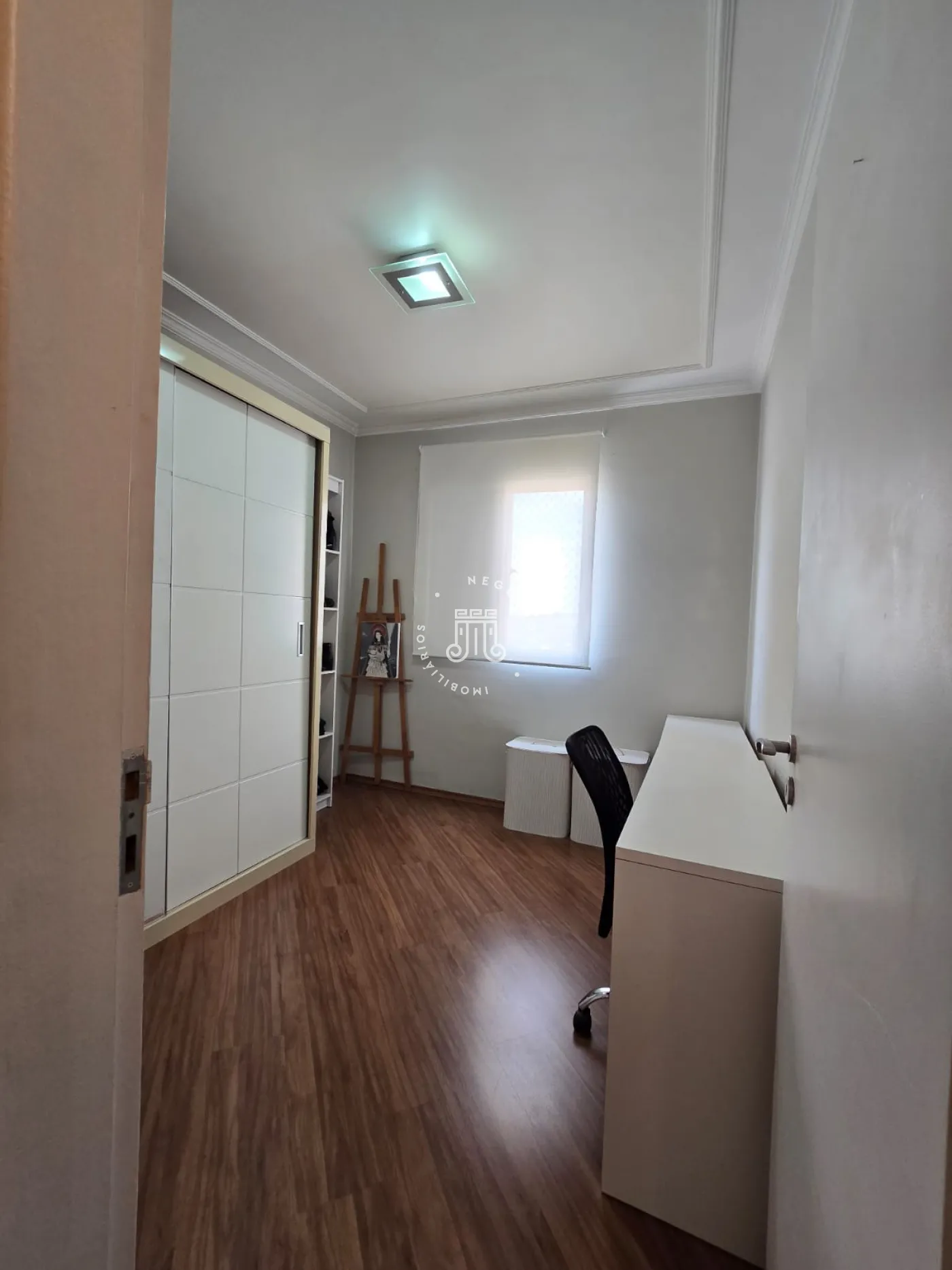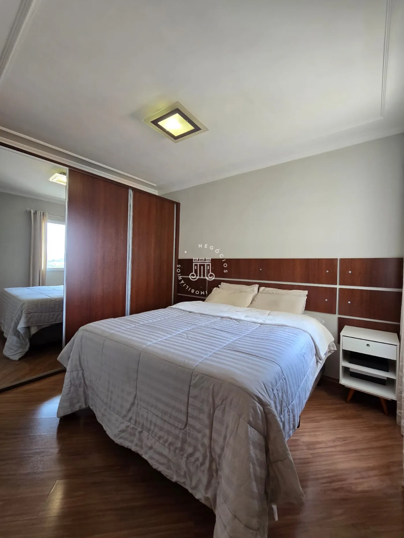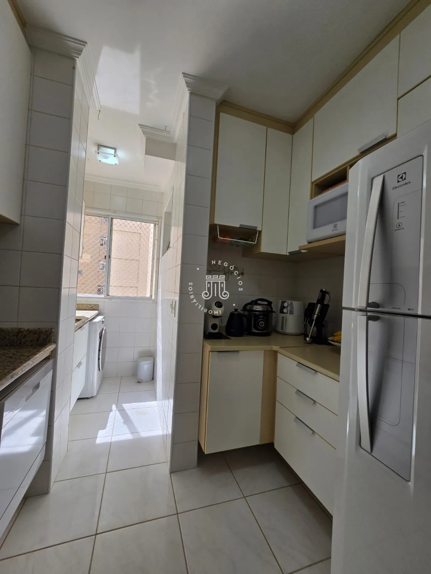 O imóvel tem 74 metros quadrados. Ele contém três dormitórios, sendo um deles uma suíte com planejados, um banheiro social, cozinha com armários, lavanderia, varanda, sala para dois ambientes e uma vaga de garagem coberta.