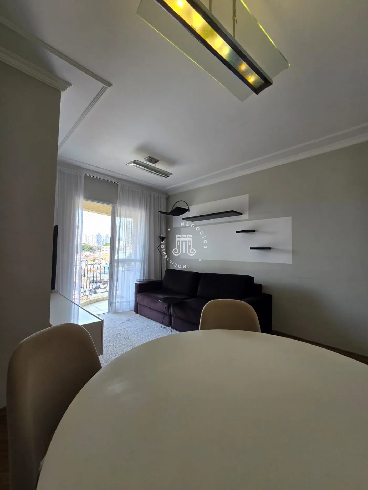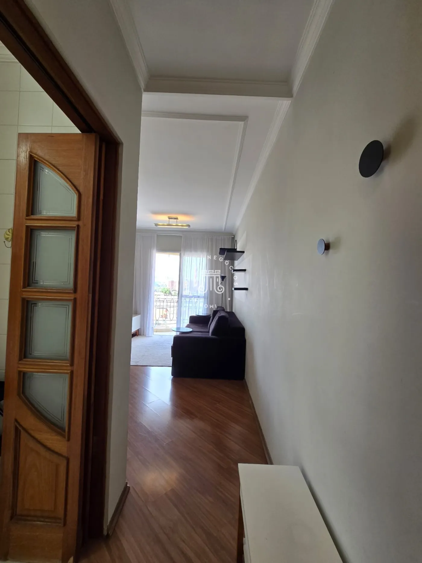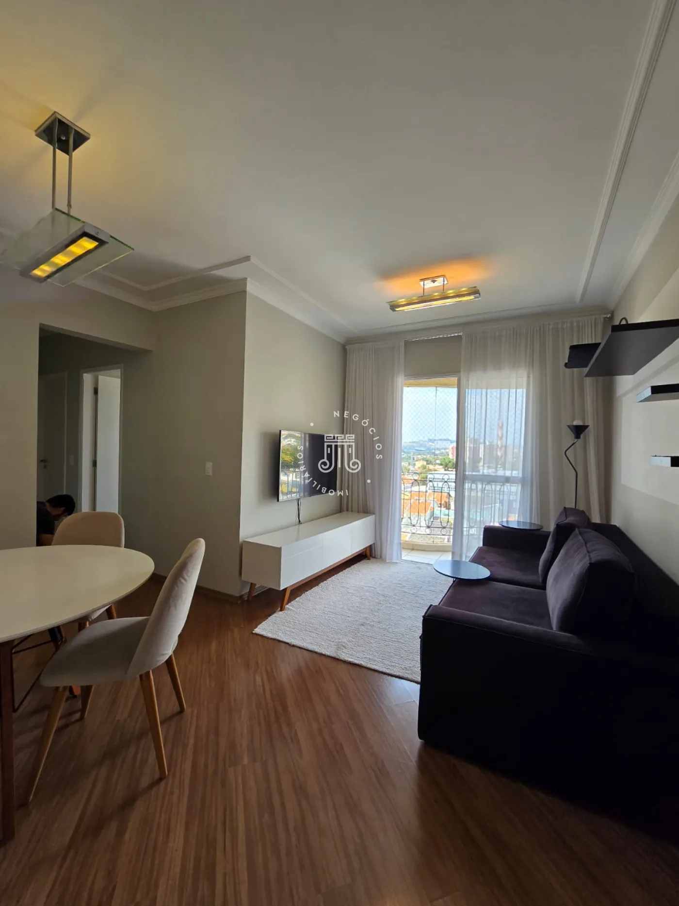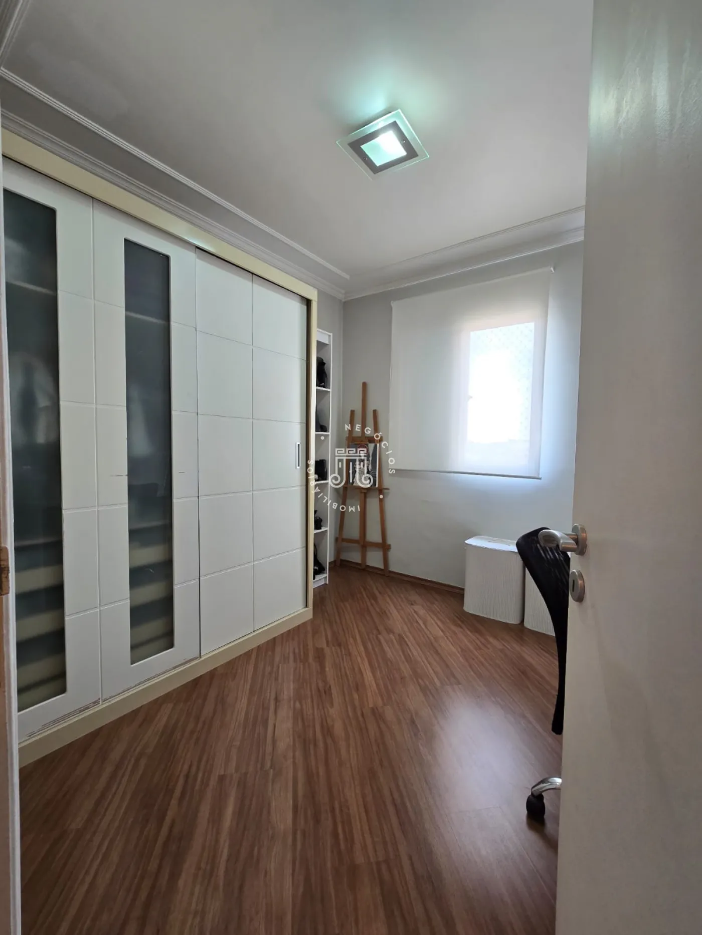O imóvel tem 74 metros quadrados. Ele contém três dormitórios, sendo um deles uma suíte com planejados, um banheiro social, cozinha com armários, lavanderia, varanda, sala para dois ambientes e uma vaga de garagem coberta.