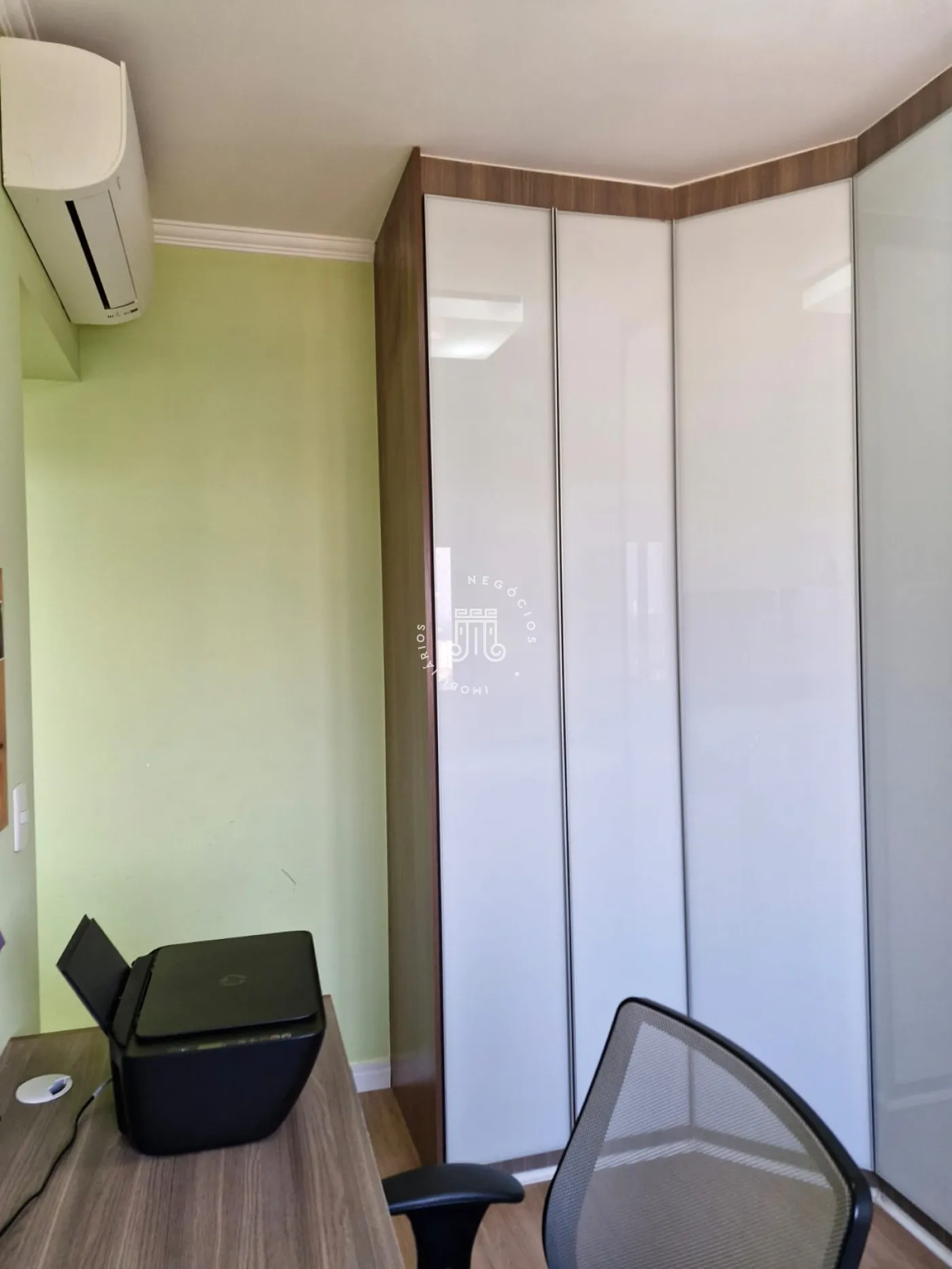 Apartamento à venda em torre única, com 127 m², 3 suítes com armários planejados e ar-condicionado inverter, sala de estar e jantar integradas também climatizadas. Ampla sacada com fechamento em vidro, persianas, churrasqueira e pia com armários. Cozinha com passa-pratos, armários planejados, cooktop, forno embutido a gás, depurador e torre para micro-ondas. Conta ainda com lavabo, área de serviço com armários, piso laminado, papel de parede, sol da manhã e 2 vagas de garagem.