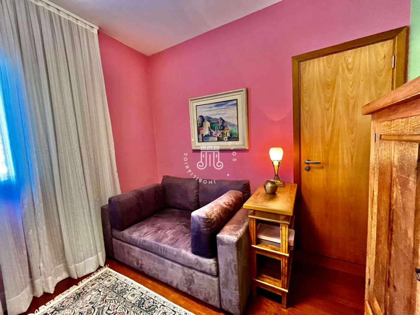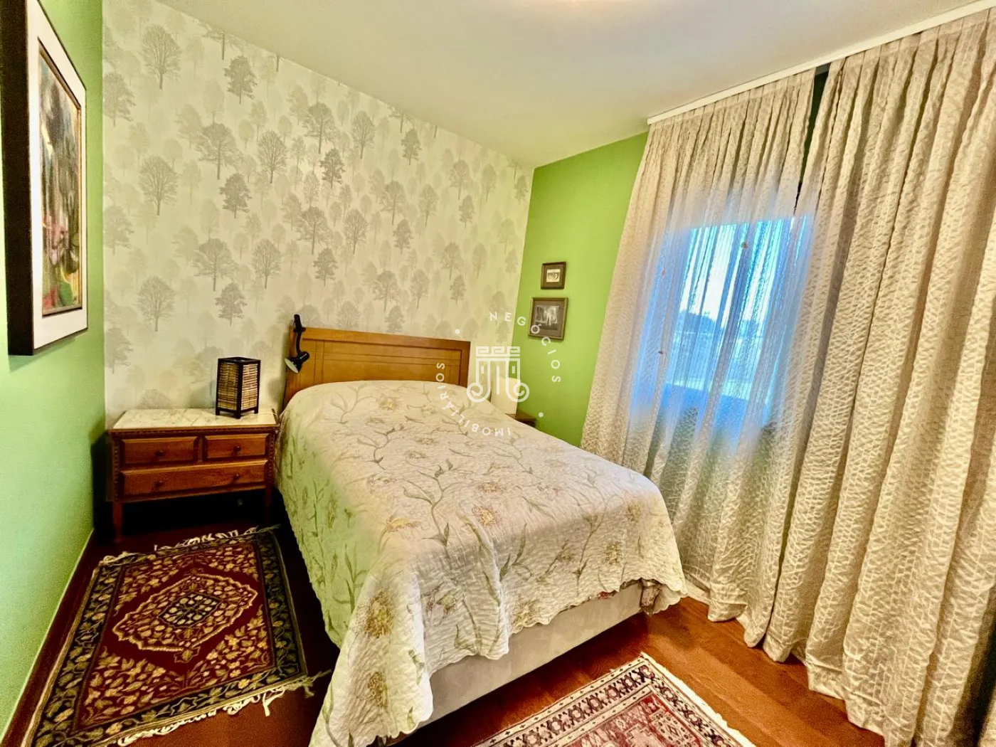 Os ambientes da sala, cozinha, quartos e área de serviço são bem definidos, o que favorece a circulação e a ventilação. A varanda envidraçada recebe sol pela manhã e oferece vista para a Serra do Japi. O piso é de madeira maciça e pode ser restaurado ou clareado conforme a preferência do morador.