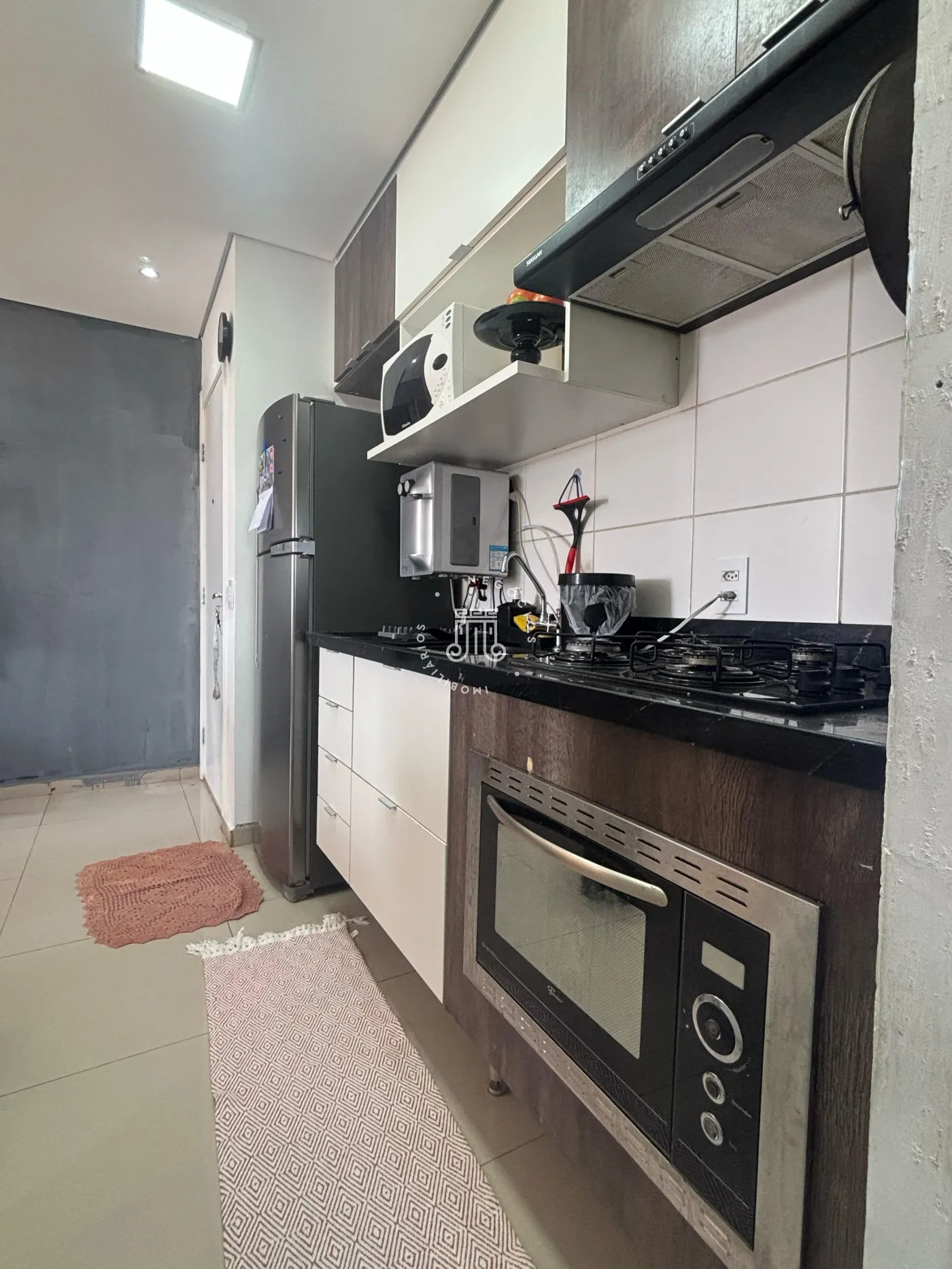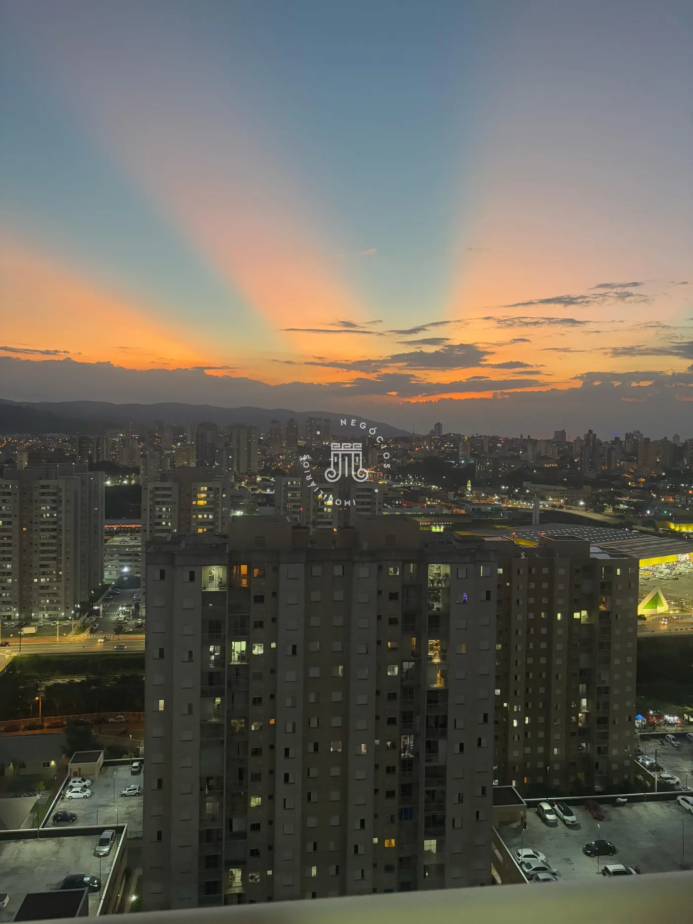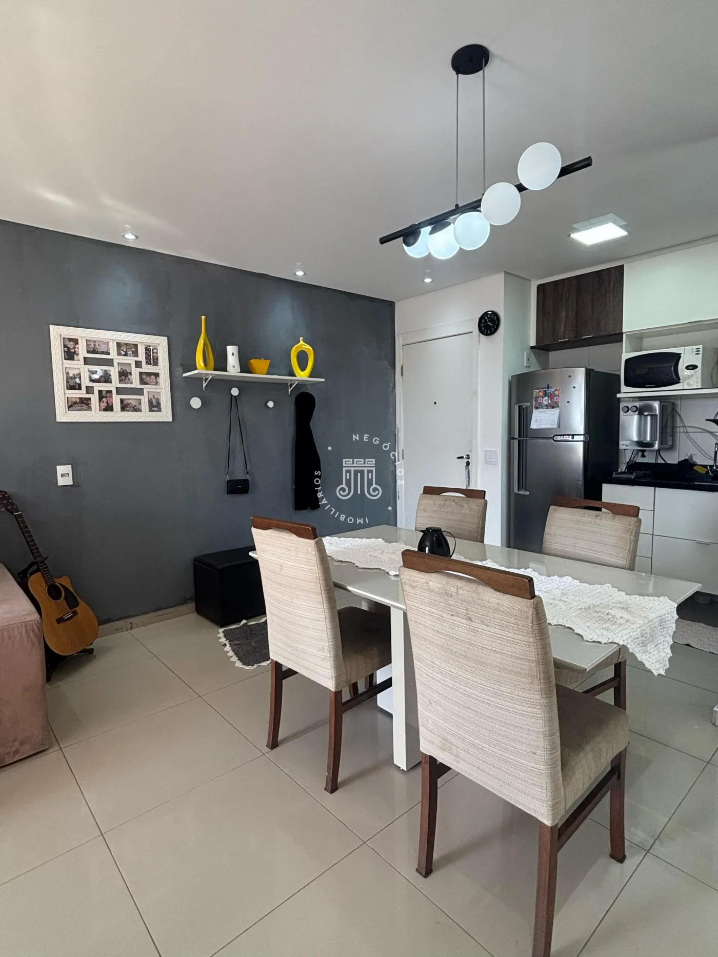 Apartamento com 3 quartos, sendo uma suíte, cozinha com armários, lavanderia, banheiro social, sala de estar com sacada com ótima vista para o por do sol em andar alto. Duas vagas de garagem.
