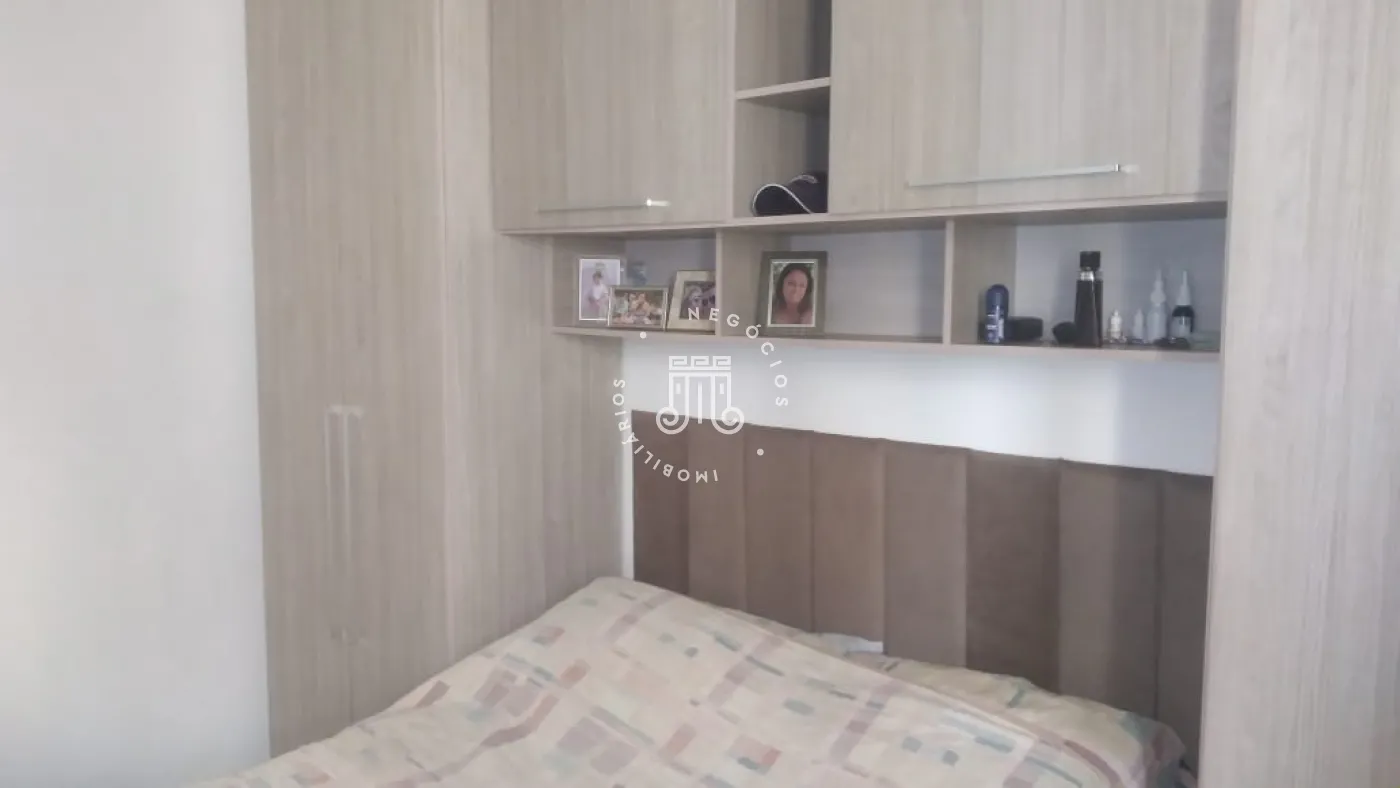 Com 2 quartos, sendo 1 com armários planejados.