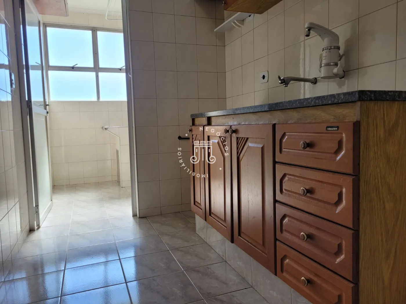 Apartamento no último andar, com vista livre para a cidade e a rodovia. Composto por dois dormitórios, um banheiro com armário, cozinha com armário, sala, sacada e área de serviço. Piso frio em todos os cômodos. Ainda conta com uma garagem coberta. Os dormitórios são virados para o sol da manhã e a tarde o sol bate na lavanderia.