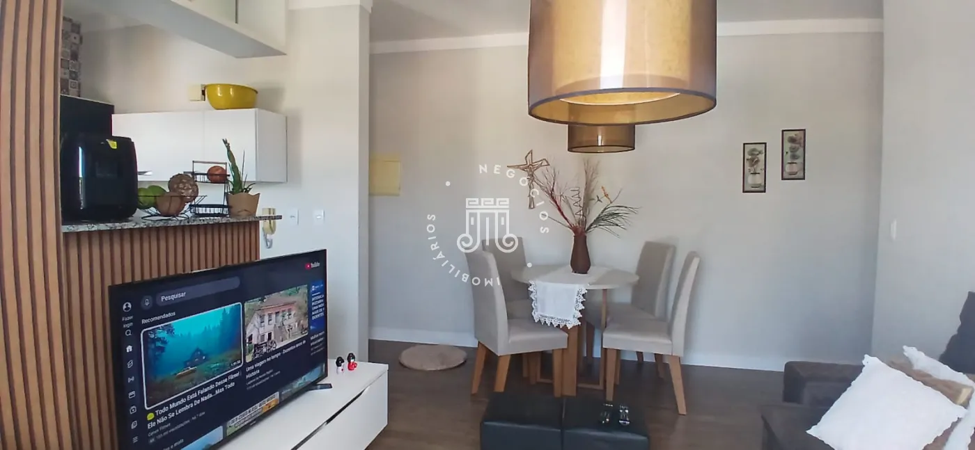 Apartamento bem distribuído, com 2 dormitórios, sendo um deles equipado com guarda-roupa planejado e dois criados-mudos, oferecendo praticidade e organização. A sala de TV é integrada e aconchegante, com acesso à varanda, proporcionando um ambiente agradável para o dia a dia. A copa/cozinha conta com armários planejados, assim como o banheiro e a área de serviço, garantindo funcionalidade em todos os espaços. O imóvel dispõe ainda de 1 vaga de garagem coberta.