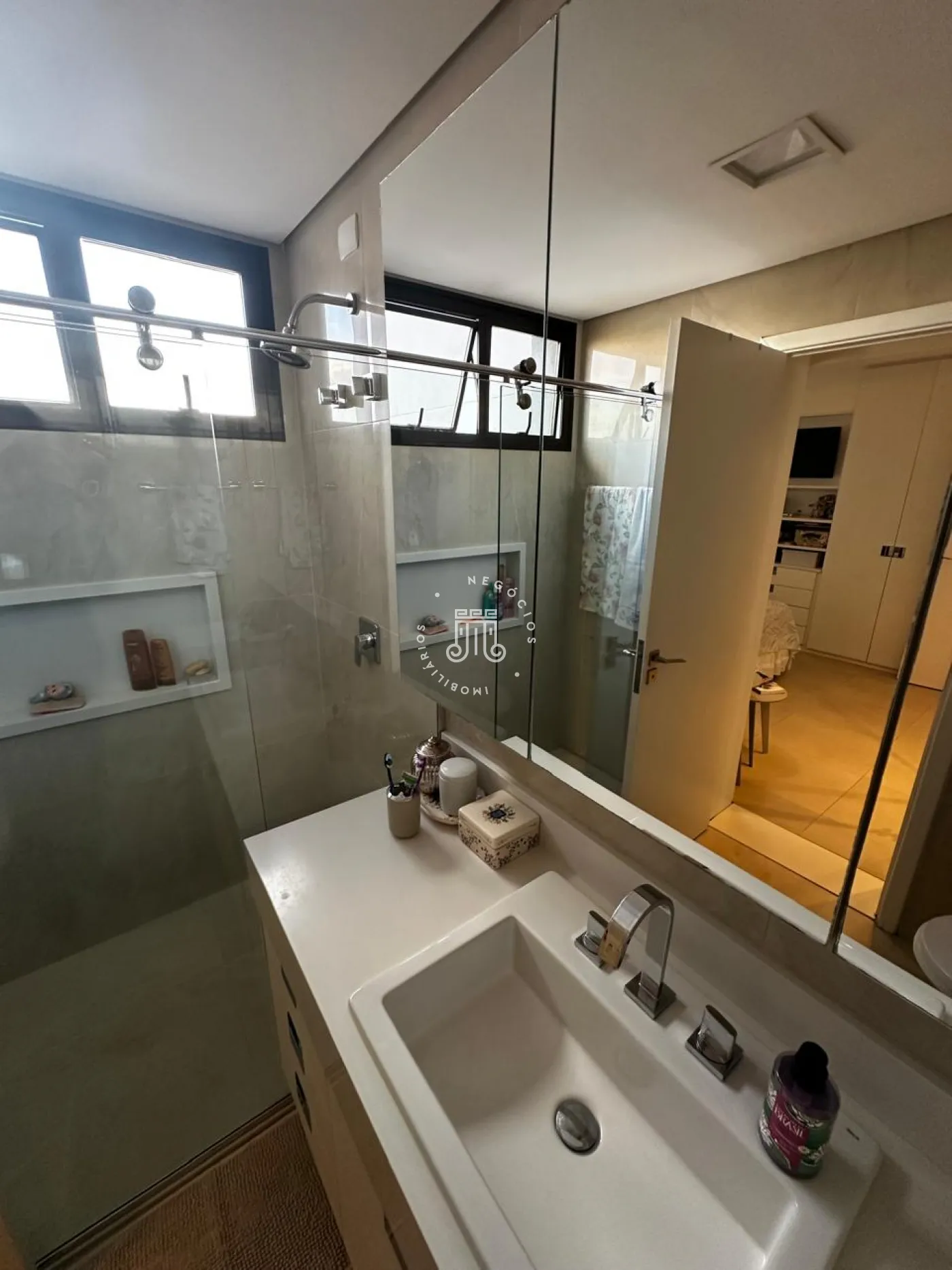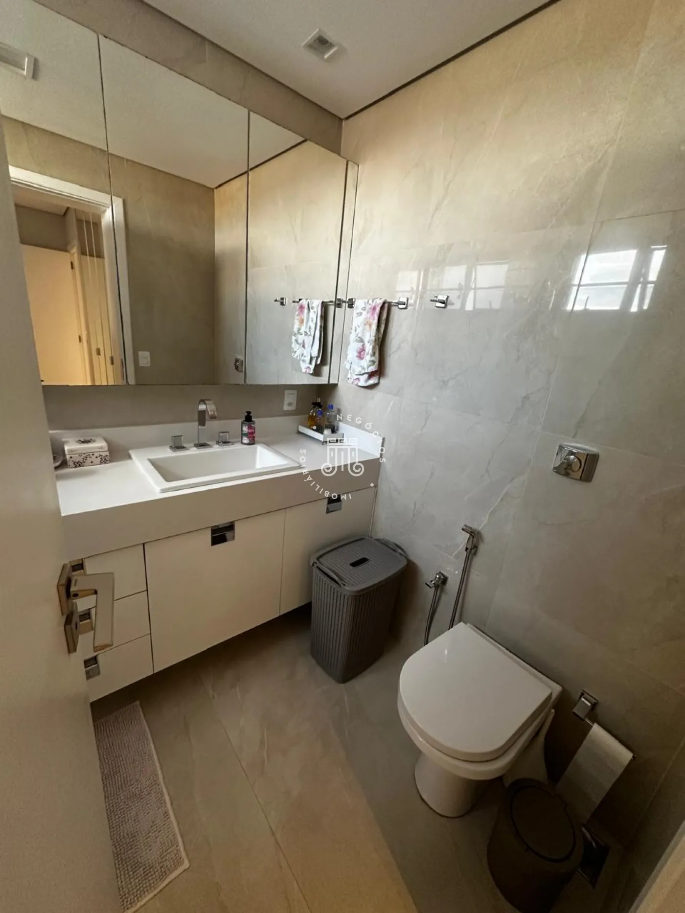 A copa e a cozinha são integradas e também possuem armários planejados, proporcionando funcionalidade e charme ao ambiente. Área de serviço independente e lavabo complementam o conforto e a praticidade do apartamento.