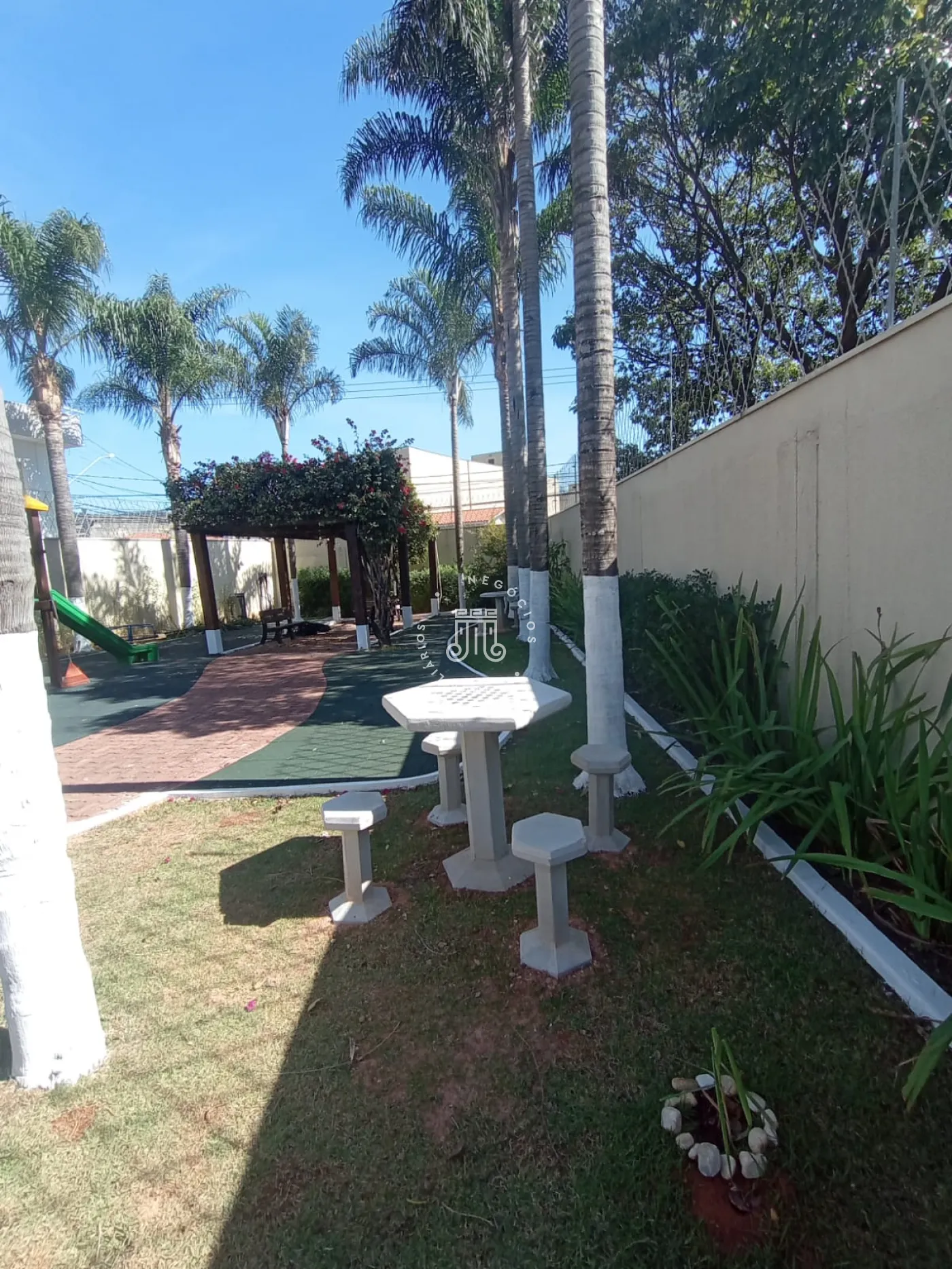 Condomínio com portaria 24h, Playground, quadra poliesportiva, churrasqueira e salão de festas.