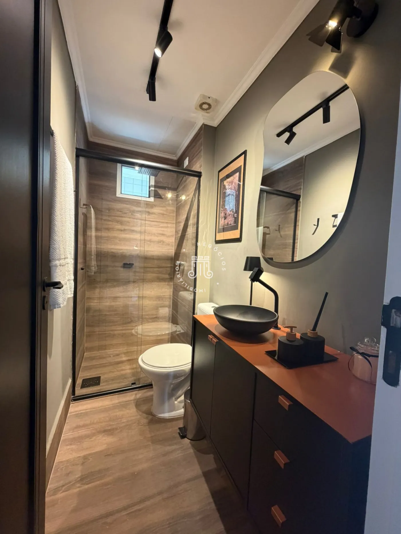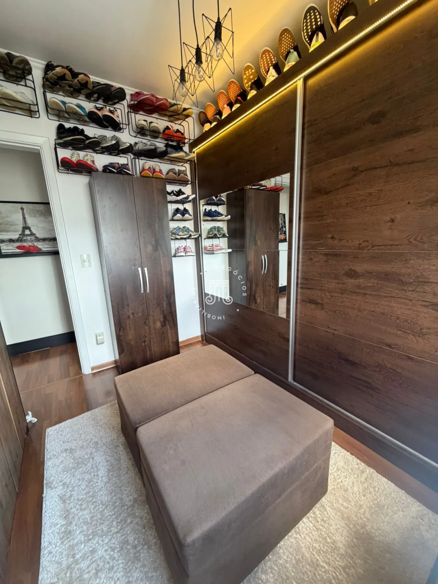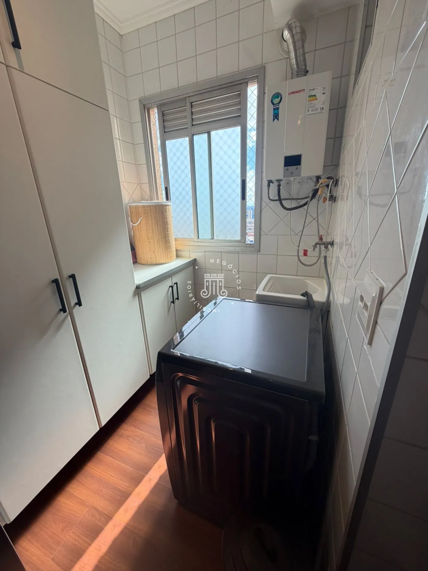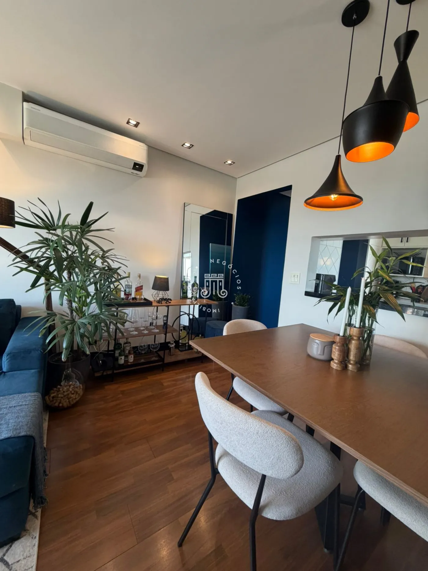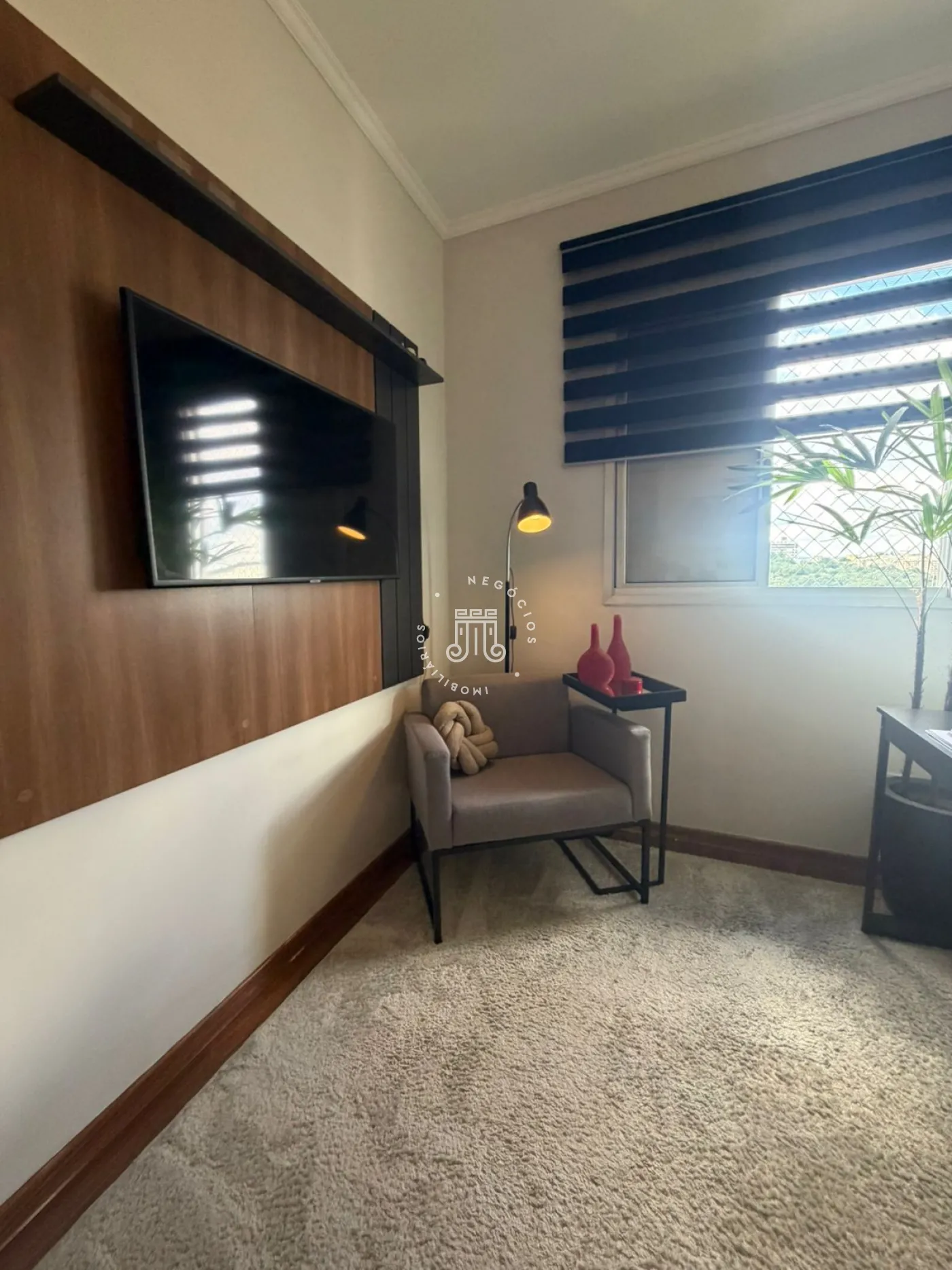 O imóvel possui 3 quartos, sendo 1 suíte, sala, cozinha integrada à área de serviço, 2 banheiros e closet. Conta com armários na cozinha, área de serviço, banheiros e closet, além de ar-condicionado na sala e na suíte. Possui 1 vaga de garagem coberta. Unidade em andar alto, com incidência de sol no período da manhã.