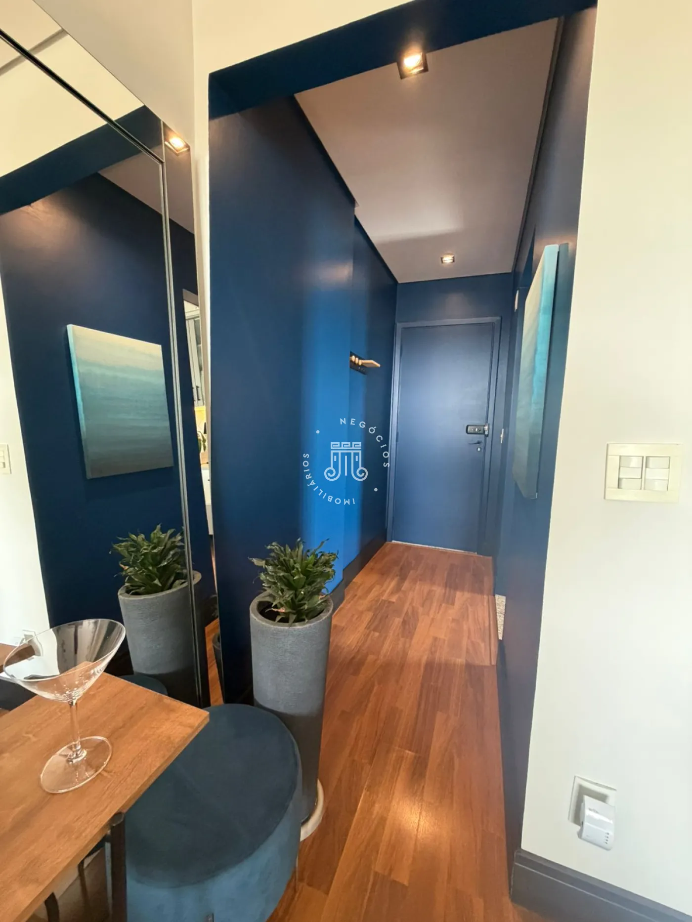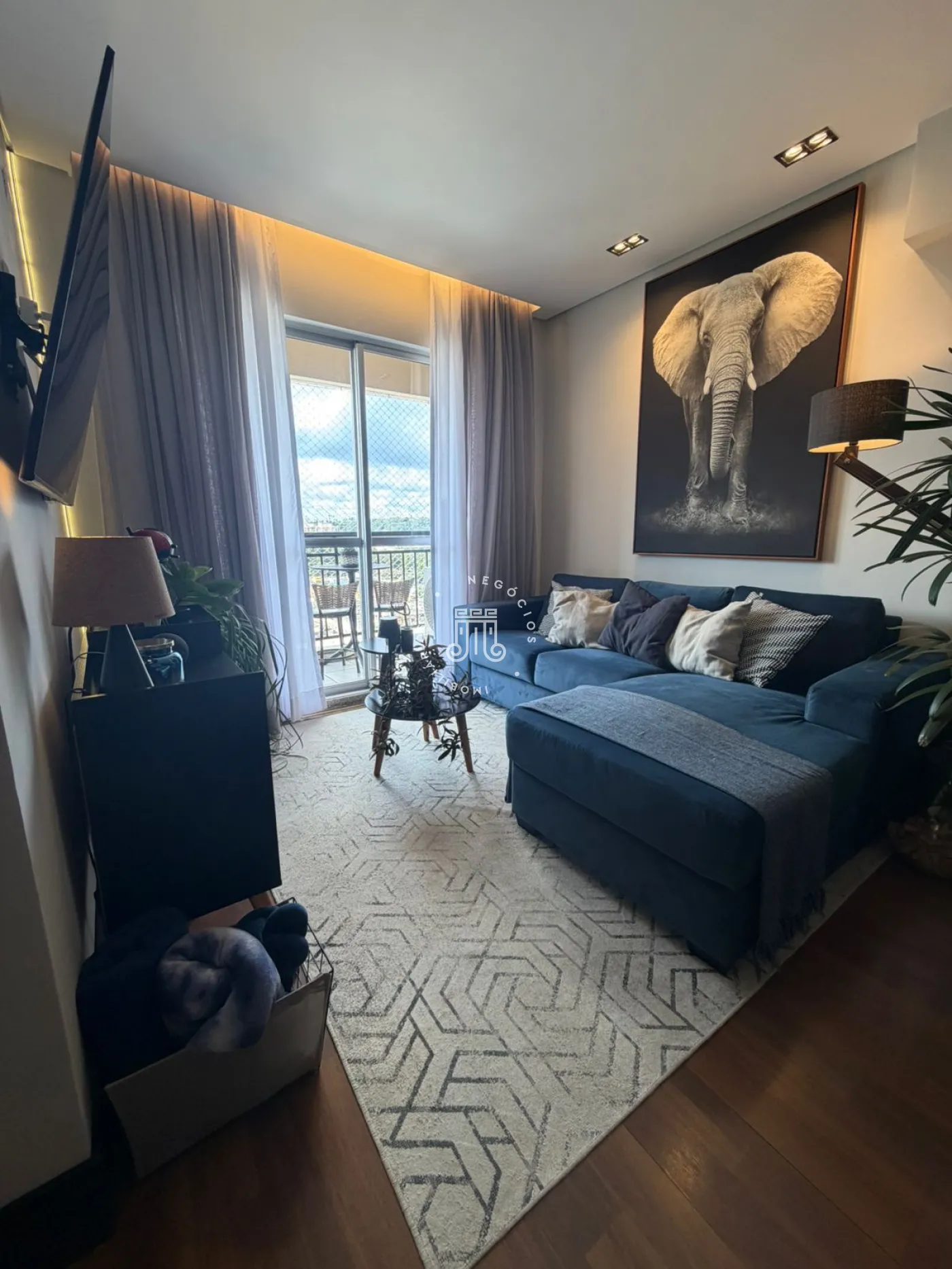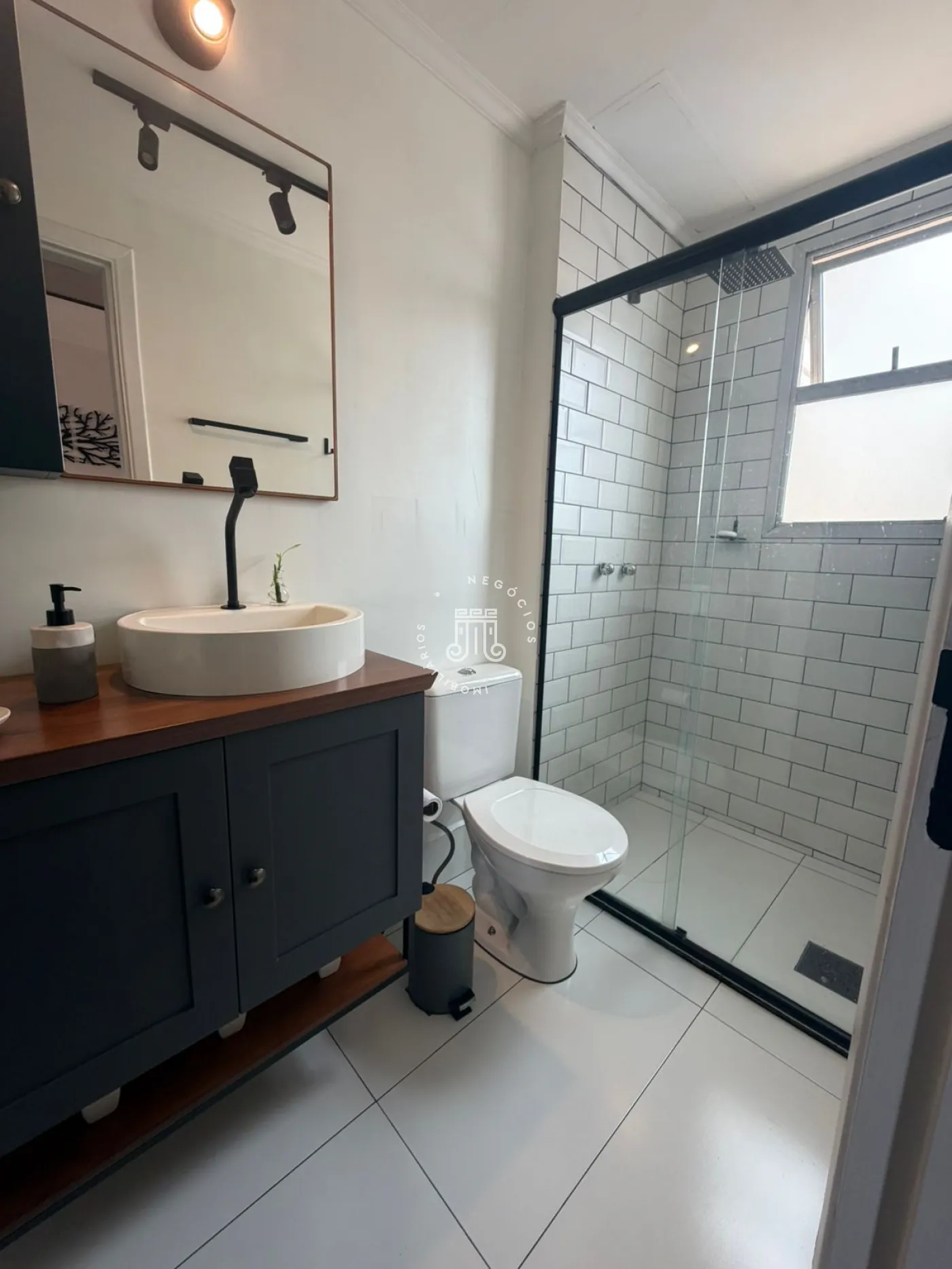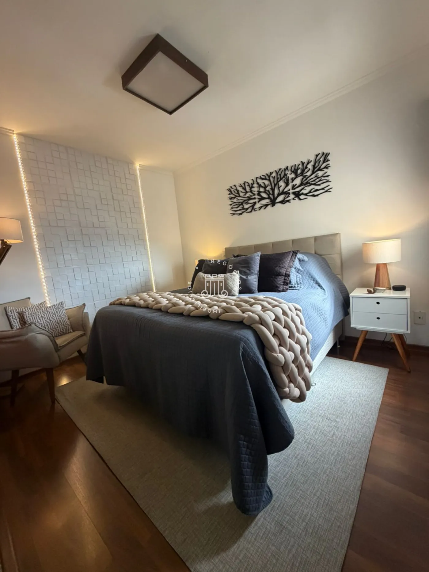 O imóvel possui 3 quartos, sendo 1 suíte, sala, cozinha integrada à área de serviço, 2 banheiros e closet. Conta com armários na cozinha, área de serviço, banheiros e closet, além de ar-condicionado na sala e na suíte. Possui 1 vaga de garagem coberta. Unidade em andar alto, com incidência de sol no período da manhã.