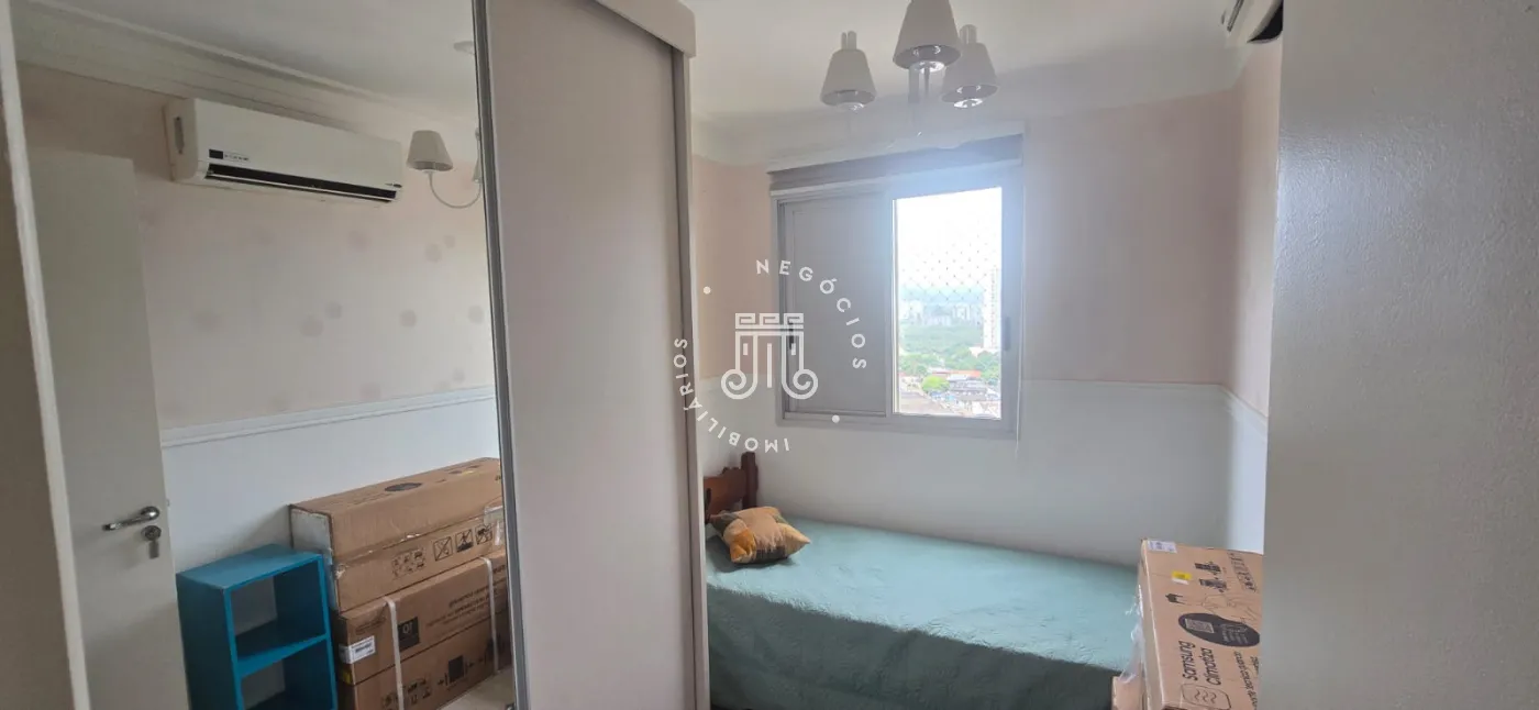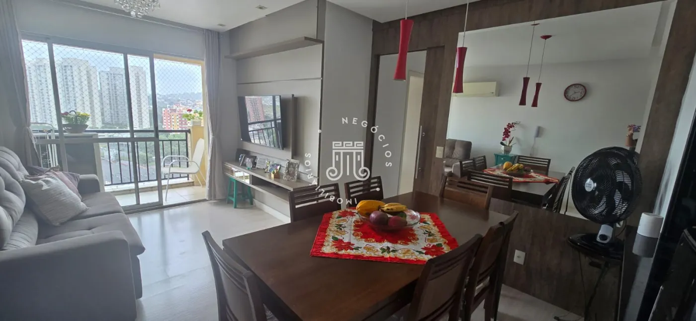Apartamento para venda com 3 dormitórios sendo uma suíte e mais um banheiro completo. Todos os quartos possui armários planejados. Possui sala de jantar e sala de estar com varanda. Cozinha toda planeja, aberta para a sala de jantar (estilo americano), além de área de serviço com armários embutidos. Os 3 dormitórios e as salas de estar e jantar estão equipados com ar condicionado.