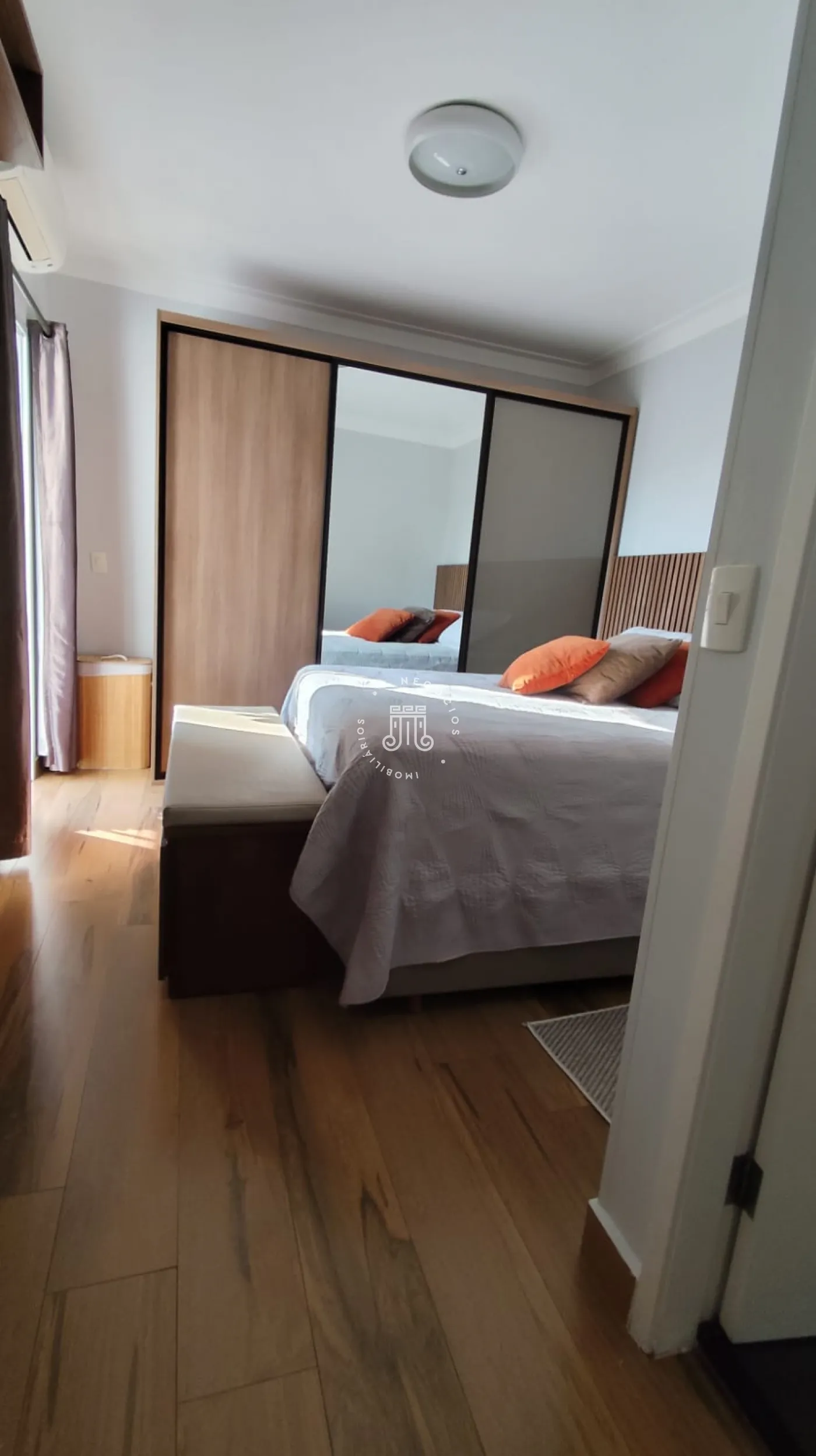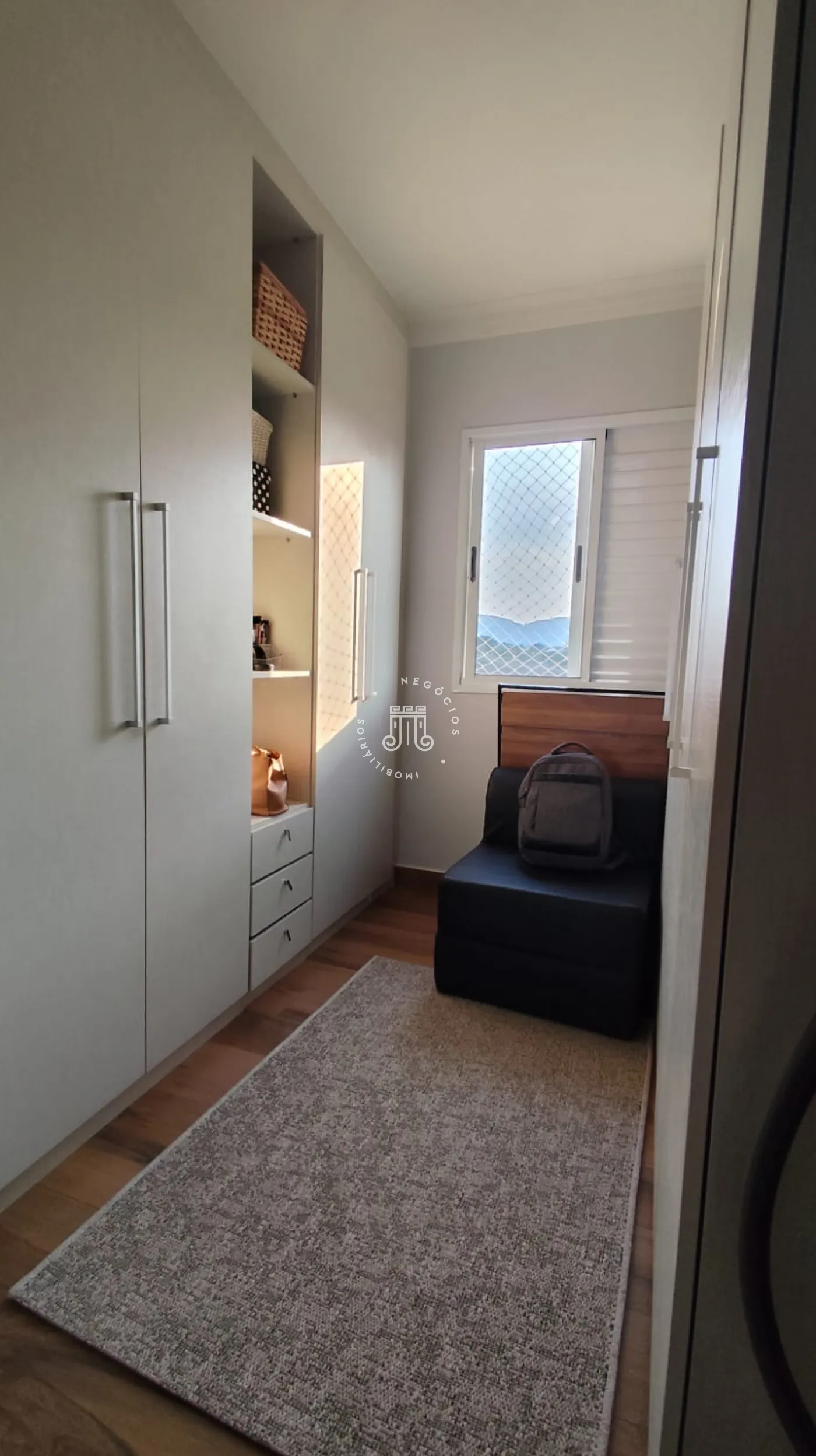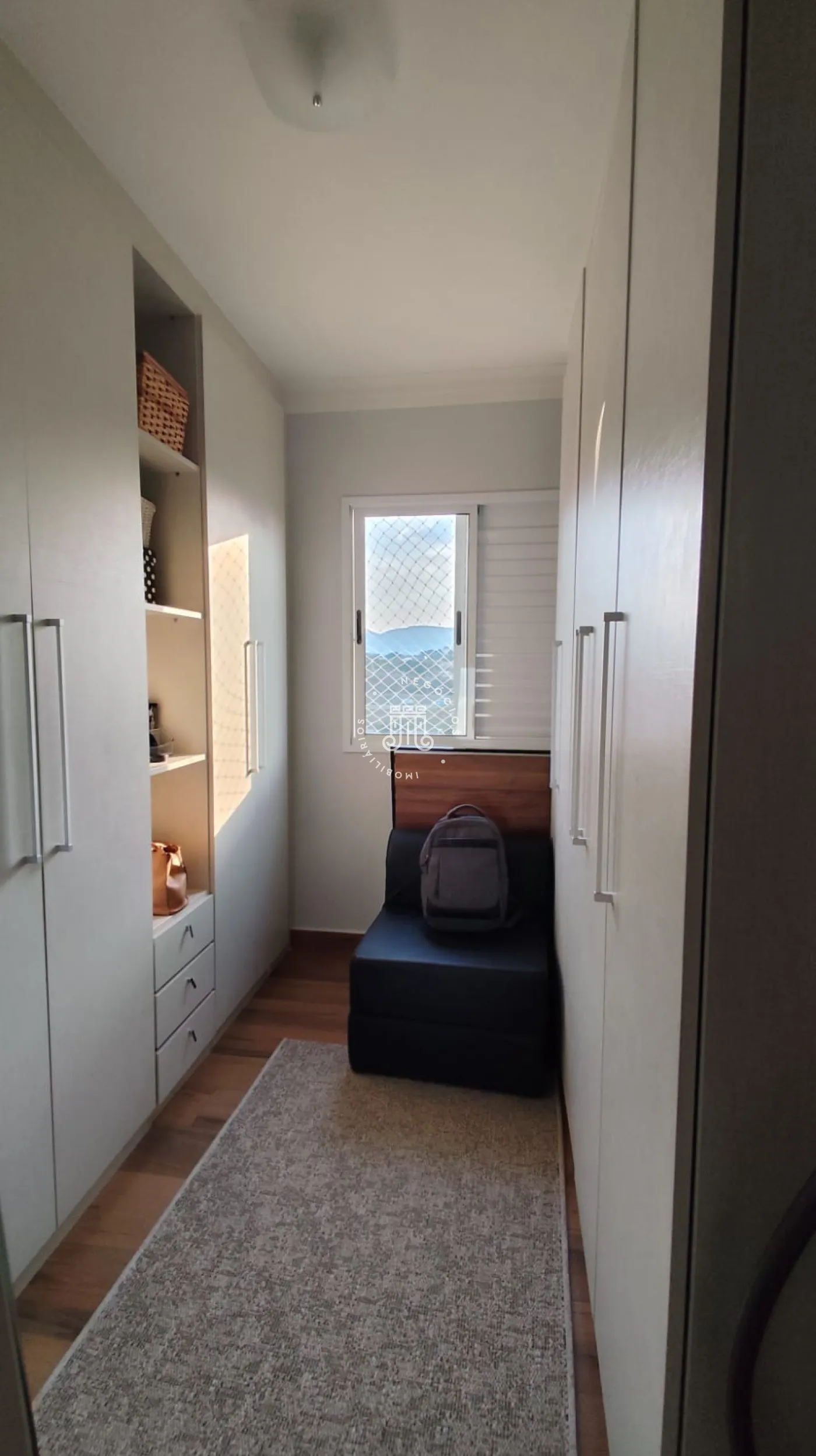 Apartamento com 83m² vista livre para serra do Japi, sacada envidraçada, contem 3 quartos sendo 1 suíte com painel para TV, ar condicionado inverter, sacadinha, 1 quarto transformado em closet repleto de armários, 3° quarto com armários planejados e bancada para estudo, banheiro social, sala 2 ambientes com cozinha americana, armários, cooktop, forno embutido, depurador, área de serviço com porta, piso porcelanato, 2 vagas.