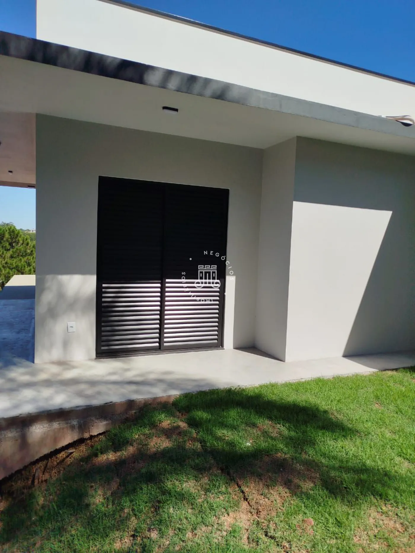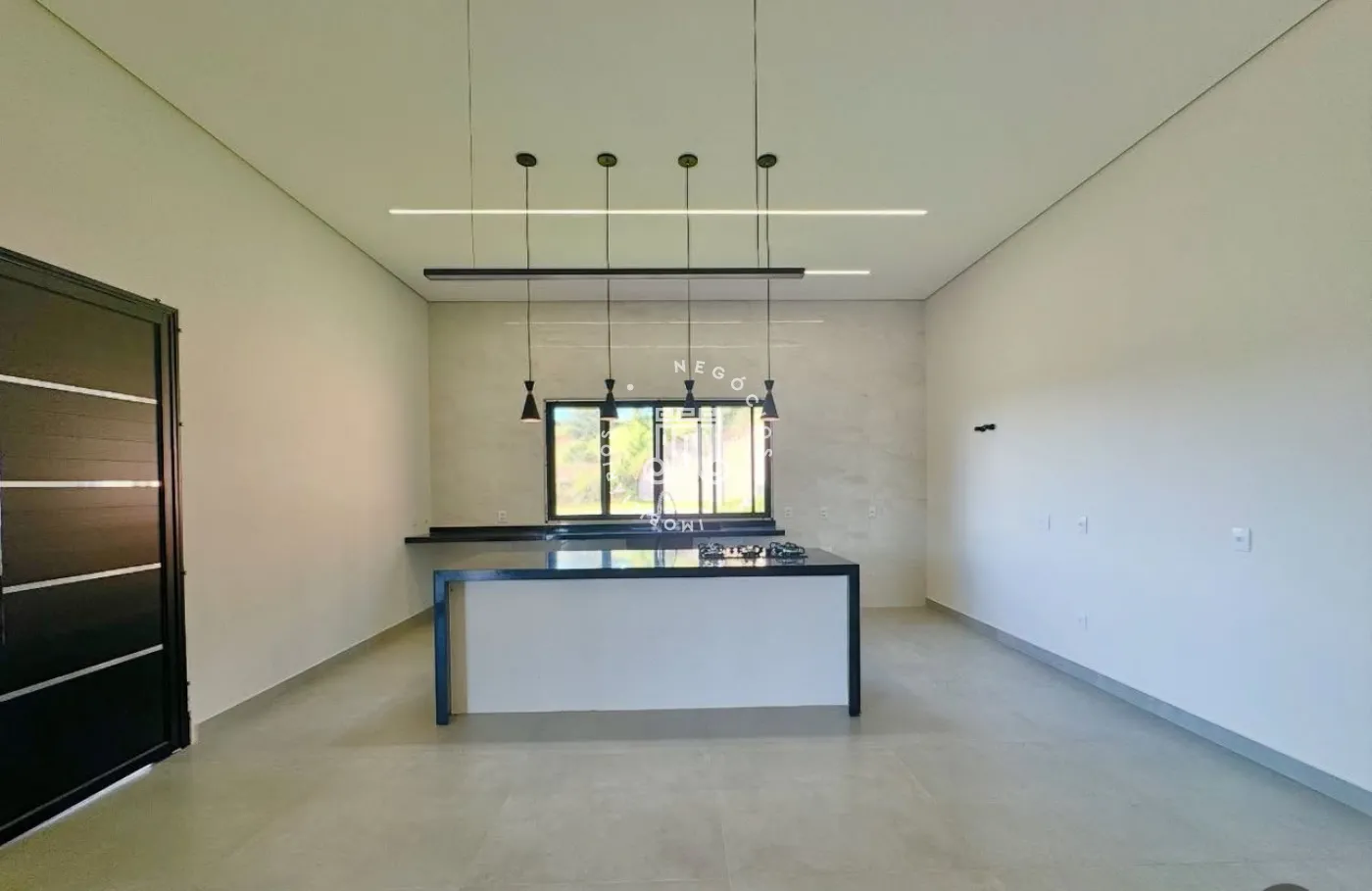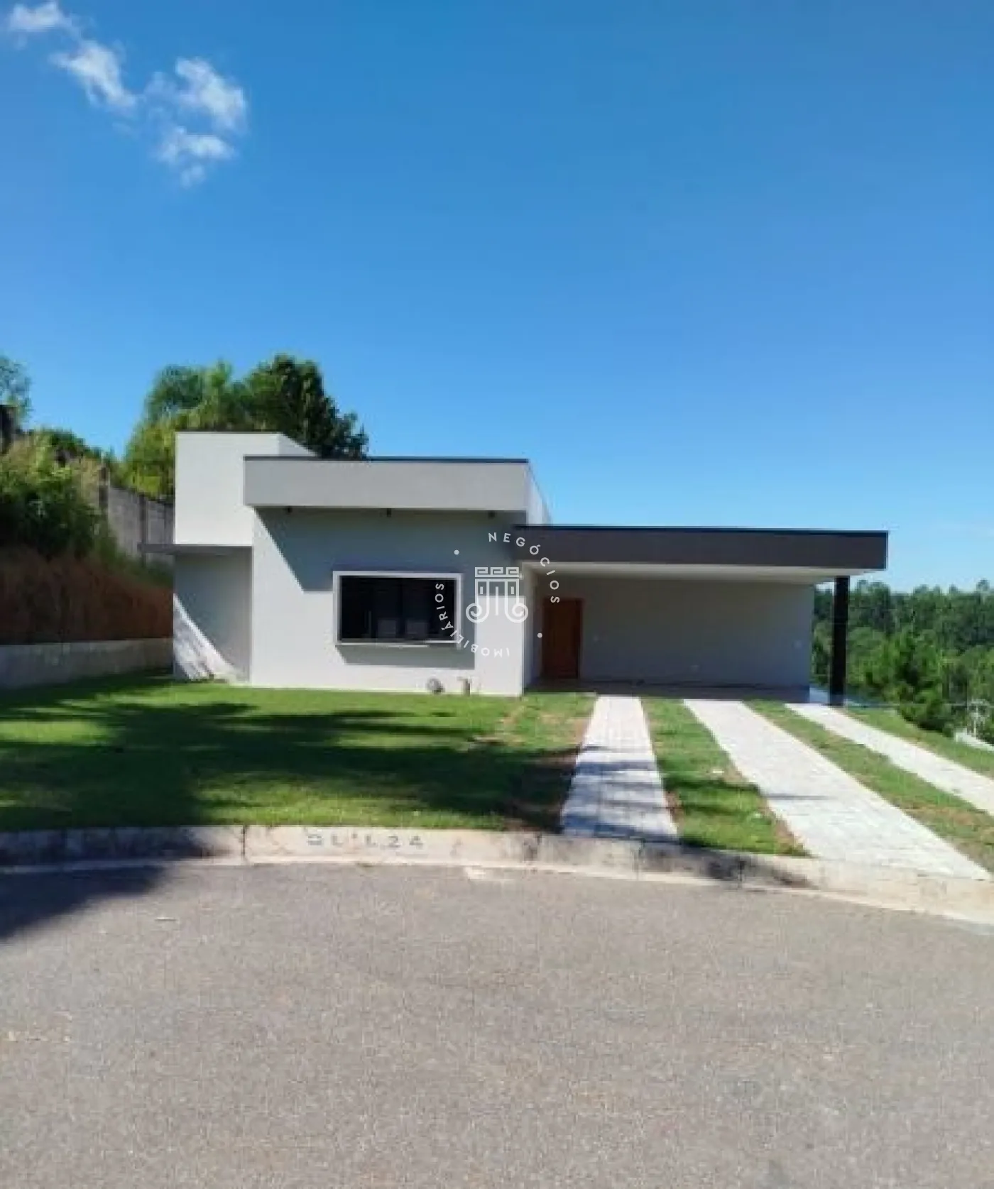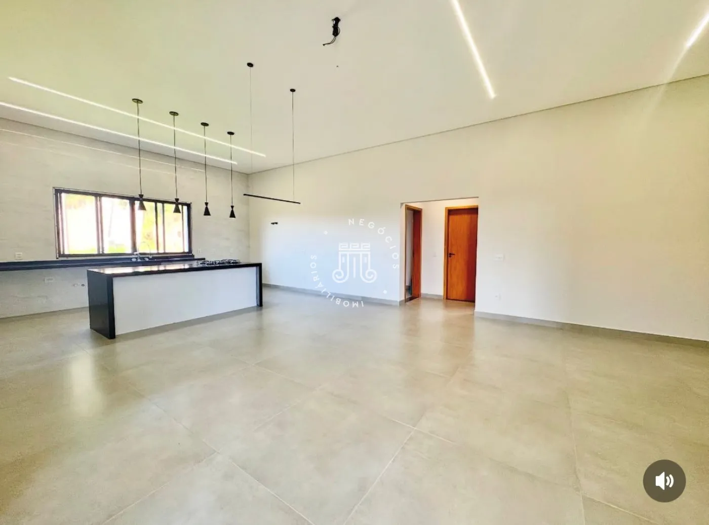Casa à venda em condomínio, térrea, nunca habitada, com 298 m² de construção e terreno de 1140 m² plano, Composta por 3 quartos, sendo 2 Suítes, banheiro social, escritório privativo, ampla sala para 2 ambientes, lavabo, cozinha americana com ilha e cooktop, área de serviço, espaço gourmet, piscina e 8 vagas de garagem sendo 2 cobertas.