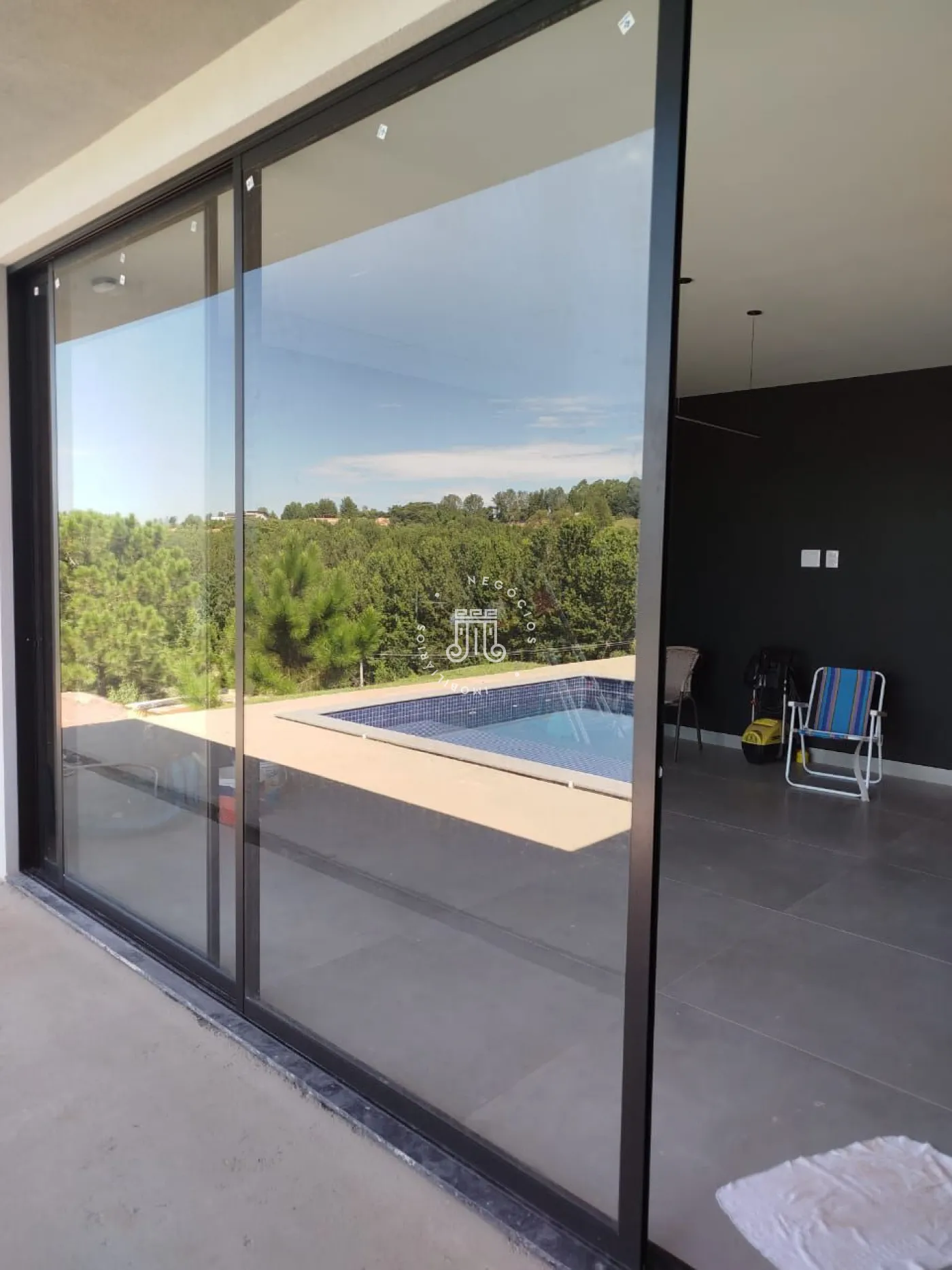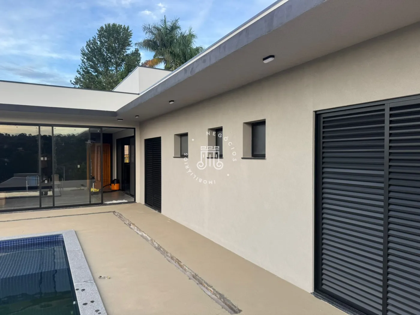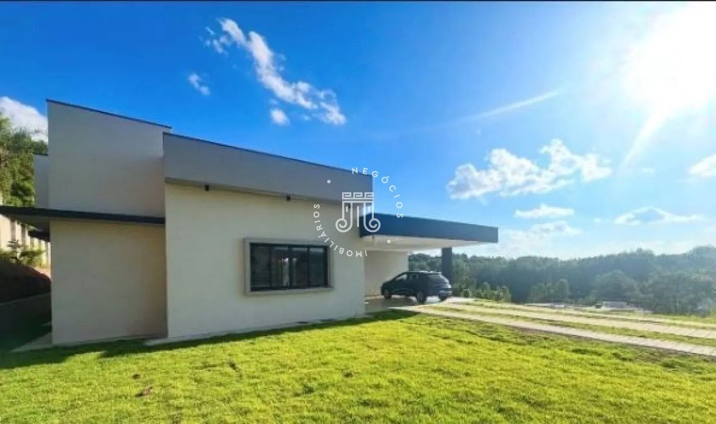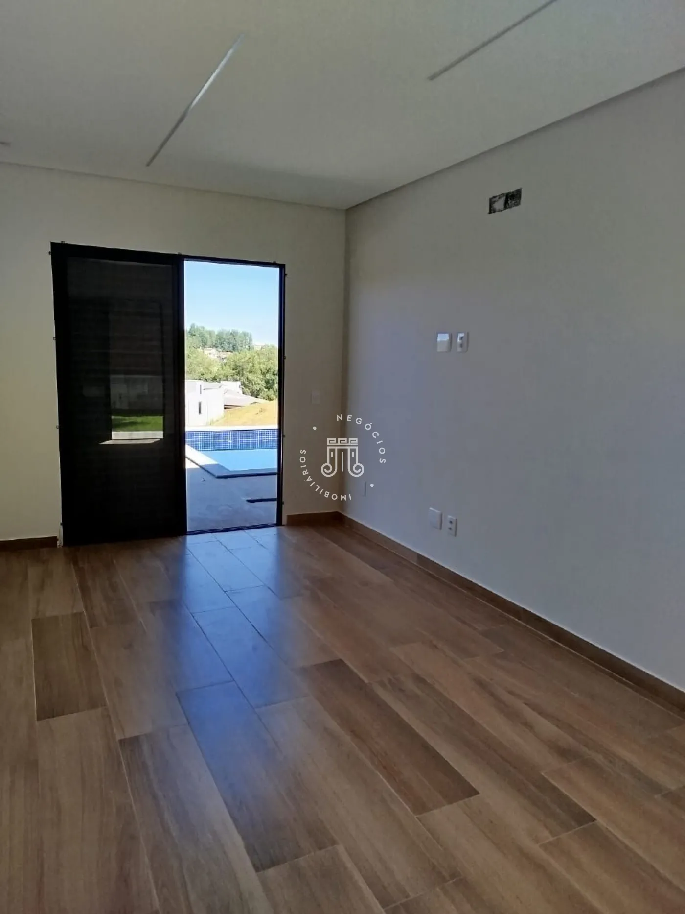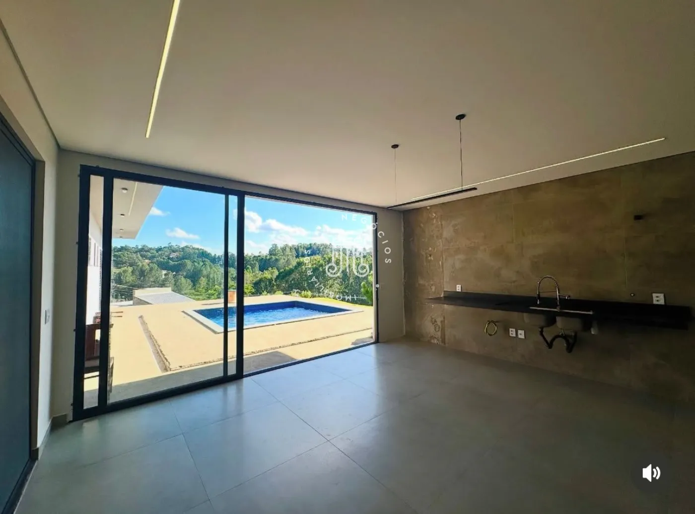 Casa à venda em condomínio, térrea, nunca habitada, com 298 m² de construção e terreno de 1140 m² plano, Composta por 3 quartos, sendo 2 Suítes, banheiro social, escritório privativo, ampla sala para 2 ambientes, lavabo, cozinha americana com ilha e cooktop, área de serviço, espaço gourmet, piscina e 8 vagas de garagem sendo 2 cobertas.