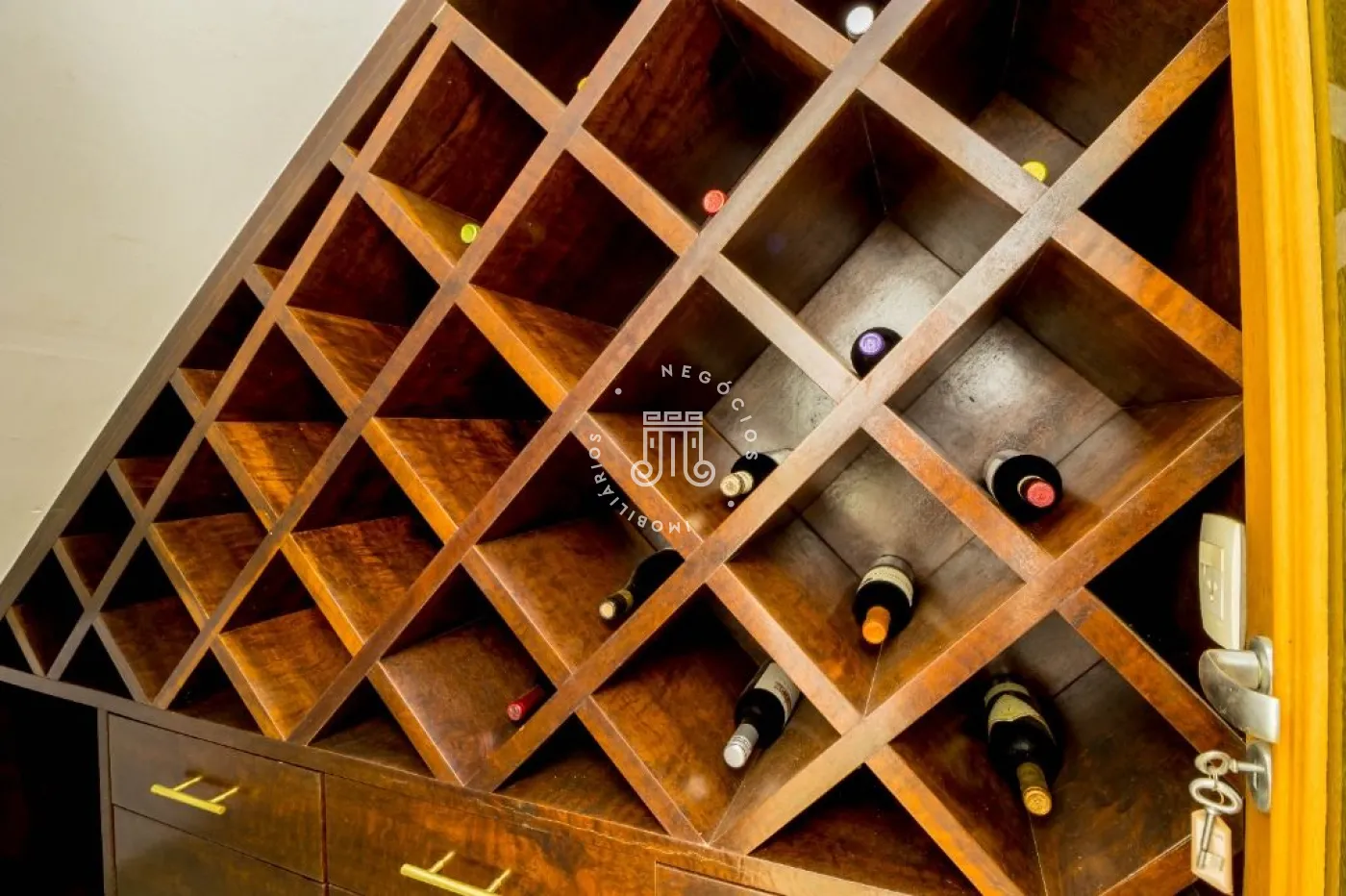 - Adega Exclusiva: Para os apreciadores de vinhos, uma adega meticulosamente projetada oferece o ambiente perfeito para armazenar e desfrutar de suas coleções mais refinadas. Um espaço onde os momentos de celebração se tornam ainda mais memoráveis.