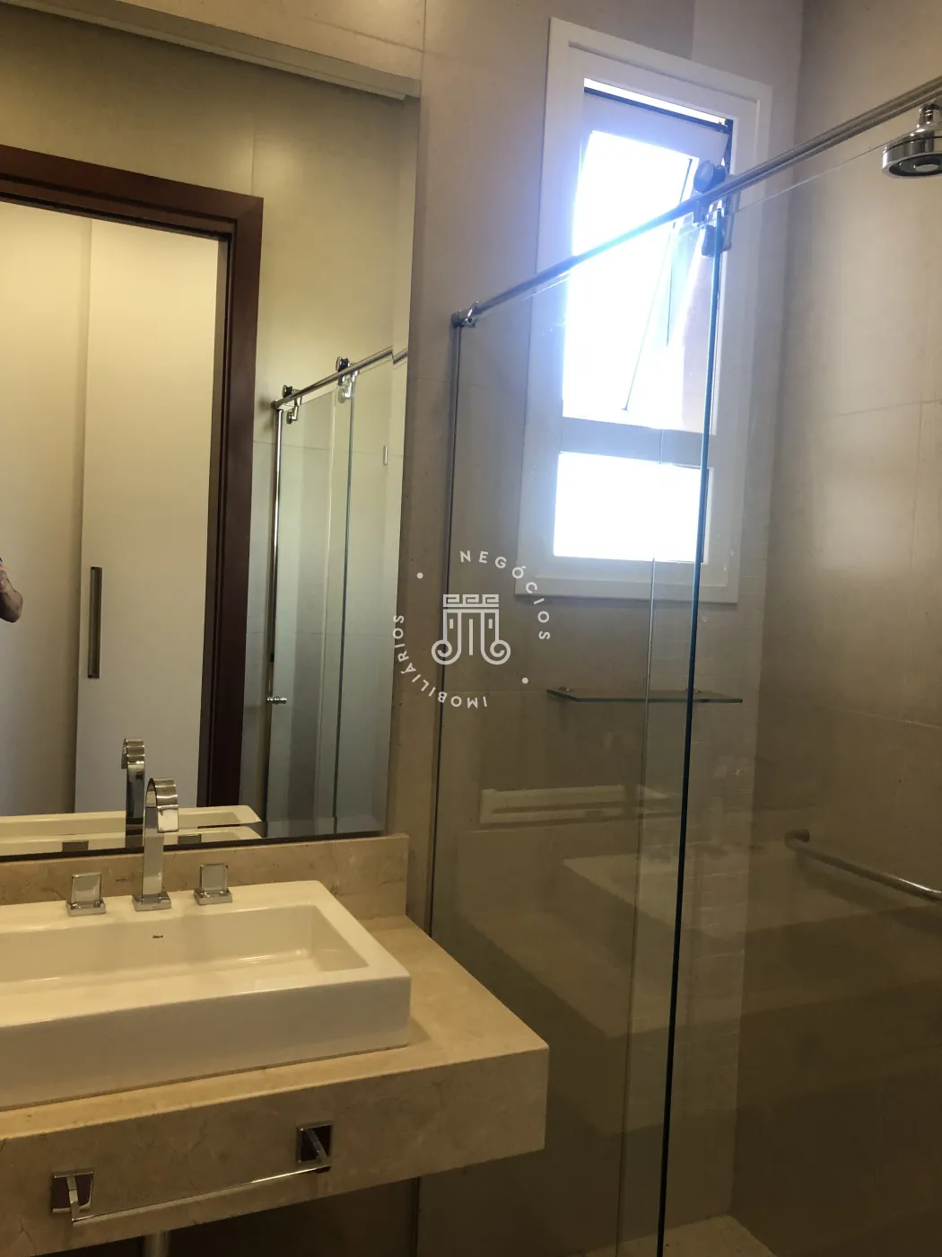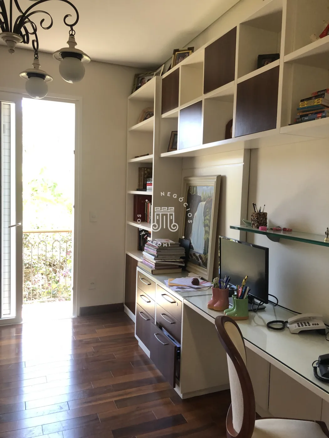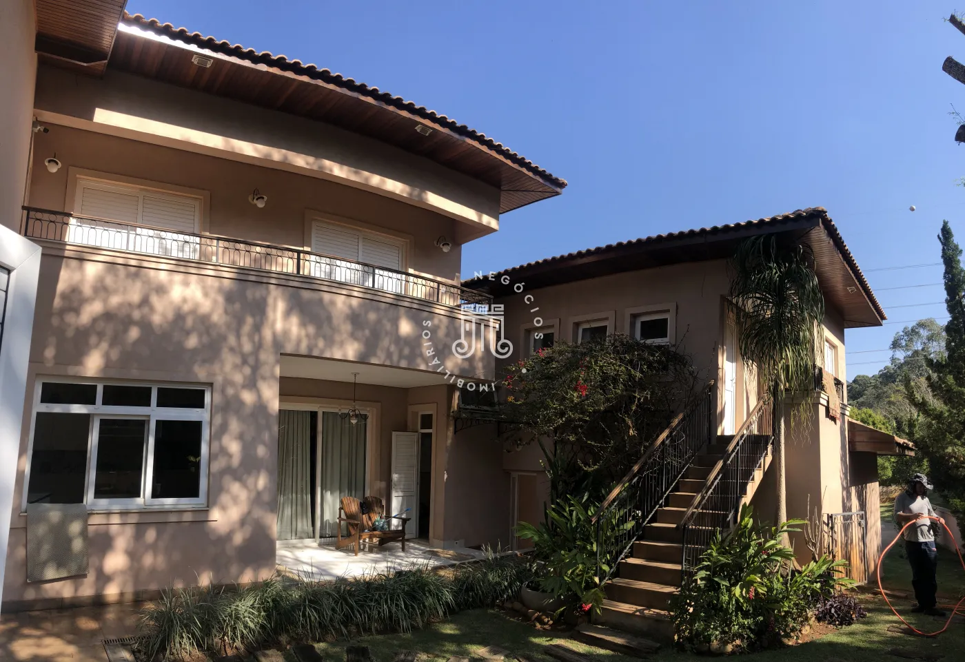 Sobrado com 608 m² de área construída em terreno plano de 1.108 m², localizado em esquina com vista permanente para a Serra do Japi. O projeto é assinado pelo arquiteto Carlos Porfírio e foi desenvolvido para integrar os ambientes do térreo e aproveitar a iluminação natural. A casa está posicionada em frente a uma praça e a uma área de preservação ambiental. No pavimento superior, há cinco suítes, sendo uma delas a suíte master, equipada com lareira. Uma das suítes foi adaptada para escritório. O andar conta ainda com sala de TV ou home cinema e duas varandas com vista para a serra. No pavimento térreo, a residência possui duas suítes, uma delas com possibilidade de uso como escritório, brinquedoteca ou acomodação para hóspedes. Há também uma suíte de serviço com entrada independente. O living comporta dois ambientes com lareira e é integrado à cozinha e ao espaço gourmet. A cozinha é conectada aos demais ambientes e equipada com cooktop por indução, recurso também presente no espaço gourmet, que dispõe ainda de churrasqueira a gás. As coifas da cozinha e do gourmet possuem motores externos. Na área externa, a propriedade conta com piscina aquecida, prainha e hidromassagem, além de jardim com pomar e árvores frutíferas. O sistema de irrigação é automatizado. A casa possui automação integrada à Alexa, que controla iluminação, persianas e cortinas elétricas. A infraestrutura de rede é composta por switch central, cabeamento em todos os cômodos e quatro access points, o que garante conectividade em toda a área. Há ainda sistema de som ambiente dividido em cinco zonas independentes, abrangendo os espaços sociais internos e a piscina. Os acabamentos incluem piso de madeira Cumaru no pavimento superior, porcelanato no térreo e quintal, e piso Fulget nas áreas externas. Todos os ambientes possuem armários planejados. O banheiro da suíte master conta com piso aquecido e os banheiros das demais suítes com toalheiros elétricos. Todos os cômodos possuem ar-condicionado quente e frio, e as esquadrias oferecem isolamento acústico. O imóvel dispõe de sistema fotovoltaico com capacidade de 9 kW, aquecimento de água por energia solar com apoio de boiler elétrico e cisterna com capacidade para 20 mil litros, destinada à captação de água da chuva e reuso em irrigação e descargas. A garagem comporta seis veículos, sendo três vagas cobertas. Há infraestrutura para instalação de dois carregadores de carros elétricos. Uma rampa lateral possibilita o acesso de veículos pela entrada de serviços e cozinha. Dois depósitos privativos complementam a garagem, um com acesso interno e outro externo. Alphaville Jundiaí é um loteamento residencial com terrenos a partir de 450 m² e área total de 1.469.904 m². O projeto foi desenvolvido para integrar áreas verdes e infraestrutura de lazer, com sistema de segurança monitorado 24 horas. O empreendimento possui mais de 763 mil m² de áreas verdes e cinco praças temáticas. Entre os equipamentos de lazer estão campo de futebol society, quadras poliesportiva, de tênis e de squash, churrasqueira, playground, piscinas adulta e infantil, solarium, bar de apoio, spa com sauna, vestiários, fitness center, espaço gourmet, salão de festas, terraço bar, lavabos e estacionamento. A segurança é composta por fechamento perimetral com muros e gradis, portaria com monitoramento e planos personalizados. O acesso ao residencial é facilitado pela proximidade com rodovias e centros comerciais, a cerca de dez minutos de distância. Somos uma imobiliária com mais de 40 anos de mercado. Com uma vasta experiência na administração de imóveis para venda ou locação. E contamos com uma ampla opção de imóveis residenciais, comerciais e lançamentos. A equipe Mediterrâneo Imóveis é especializada e recebe treinamento exclusivo para melhor te atender. Ligue e solicite seu atendimento!
