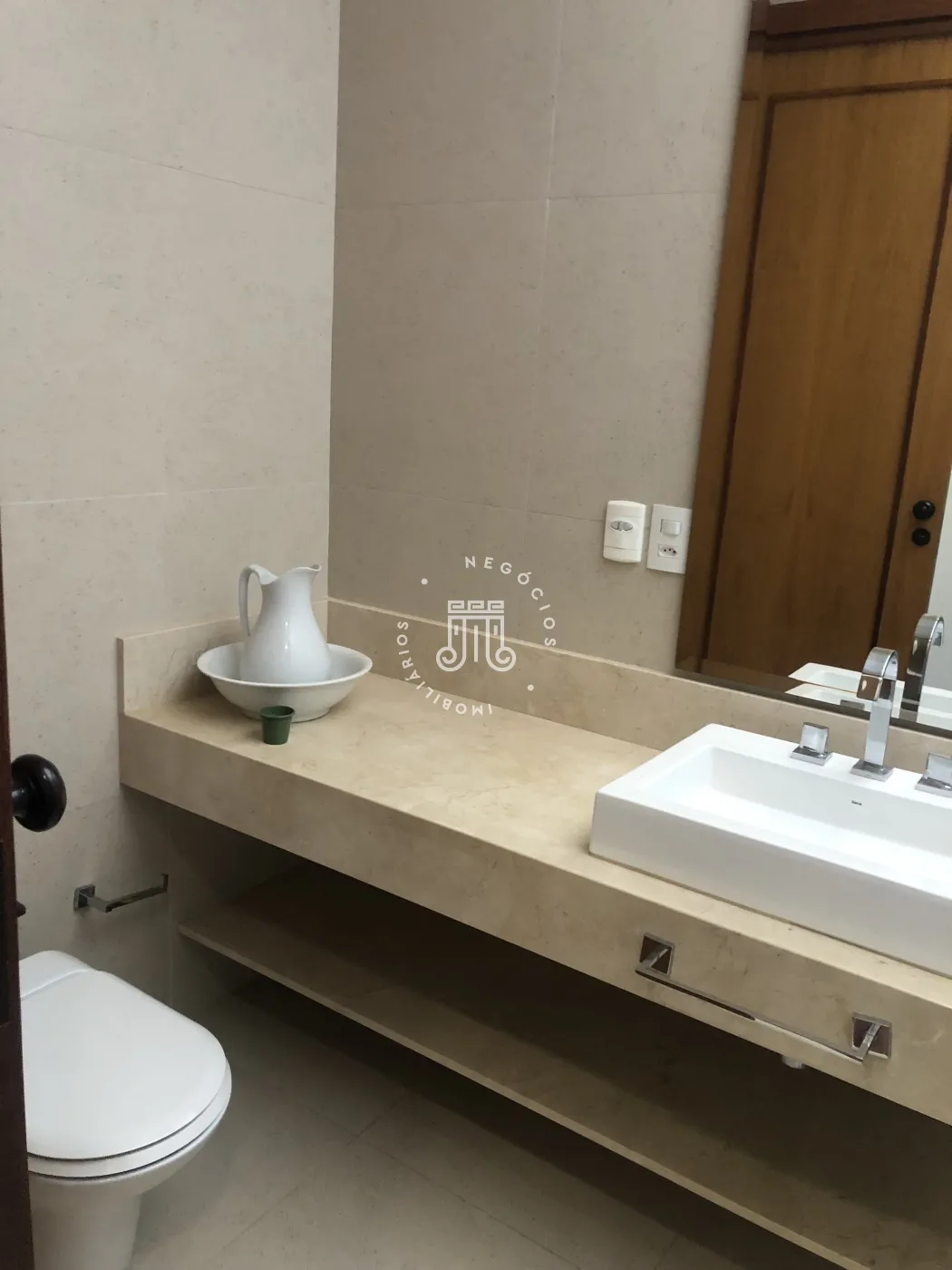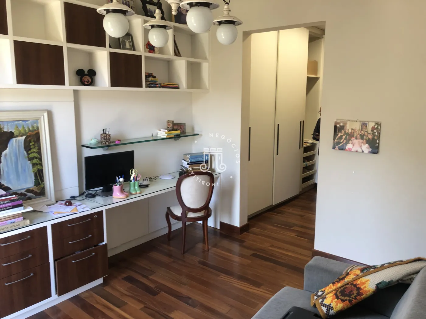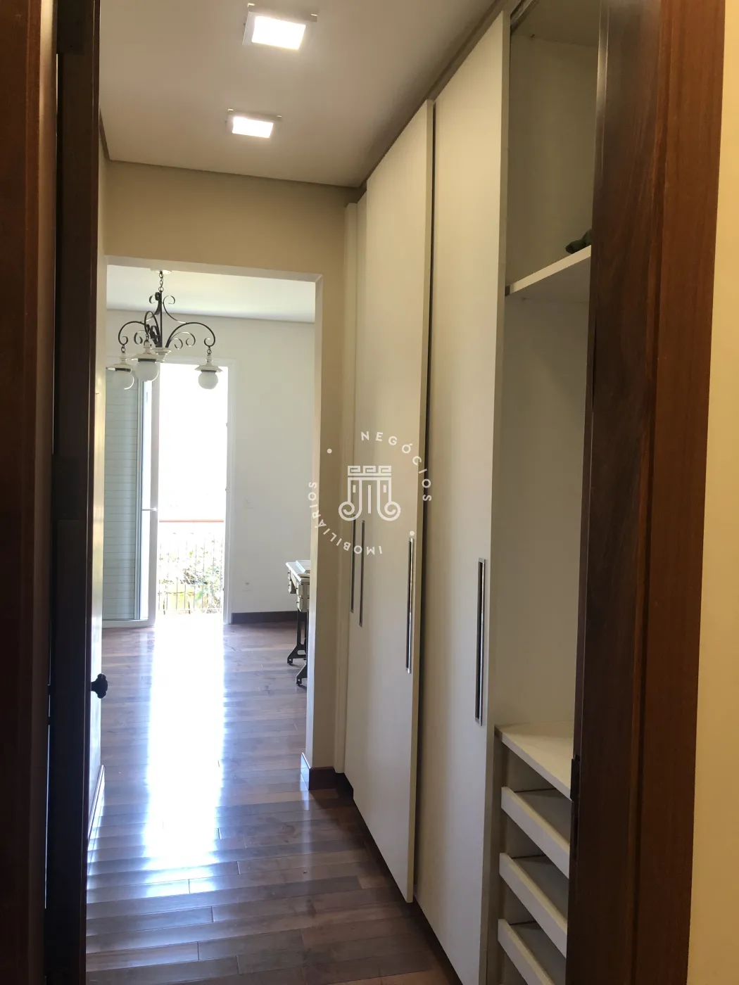 Sobrado com 608 m² de área construída em terreno plano de 1.108 m², localizado em esquina com vista permanente para a Serra do Japi. O projeto é assinado pelo arquiteto Carlos Porfírio e foi desenvolvido para integrar os ambientes do térreo e aproveitar a iluminação natural. A casa está posicionada em frente a uma praça e a uma área de preservação ambiental. No pavimento superior, há cinco suítes, sendo uma delas a suíte master, equipada com lareira. Uma das suítes foi adaptada para escritório. O andar conta ainda com sala de TV ou home cinema e duas varandas com vista para a serra. No pavimento térreo, a residência possui duas suítes, uma delas com possibilidade de uso como escritório, brinquedoteca ou acomodação para hóspedes. Há também uma suíte de serviço com entrada independente. O living comporta dois ambientes com lareira e é integrado à cozinha e ao espaço gourmet. A cozinha é conectada aos demais ambientes e equipada com cooktop por indução, recurso também presente no espaço gourmet, que dispõe ainda de churrasqueira a gás. As coifas da cozinha e do gourmet possuem motores externos. Na área externa, a propriedade conta com piscina aquecida, prainha e hidromassagem, além de jardim com pomar e árvores frutíferas. O sistema de irrigação é automatizado. A casa possui automação integrada à Alexa, que controla iluminação, persianas e cortinas elétricas. A infraestrutura de rede é composta por switch central, cabeamento em todos os cômodos e quatro access points, o que garante conectividade em toda a área. Há ainda sistema de som ambiente dividido em cinco zonas independentes, abrangendo os espaços sociais internos e a piscina. Os acabamentos incluem piso de madeira Cumaru no pavimento superior, porcelanato no térreo e quintal, e piso Fulget nas áreas externas. Todos os ambientes possuem armários planejados. O banheiro da suíte master conta com piso aquecido e os banheiros das demais suítes com toalheiros elétricos. Todos os cômodos possuem ar-condicionado quente e frio, e as esquadrias oferecem isolamento acústico. O imóvel dispõe de sistema fotovoltaico com capacidade de 9 kW, aquecimento de água por energia solar com apoio de boiler elétrico e cisterna com capacidade para 20 mil litros, destinada à captação de água da chuva e reuso em irrigação e descargas. A garagem comporta seis veículos, sendo três vagas cobertas. Há infraestrutura para instalação de dois carregadores de carros elétricos. Uma rampa lateral possibilita o acesso de veículos pela entrada de serviços e cozinha. Dois depósitos privativos complementam a garagem, um com acesso interno e outro externo. Alphaville Jundiaí é um loteamento residencial com terrenos a partir de 450 m² e área total de 1.469.904 m². O projeto foi desenvolvido para integrar áreas verdes e infraestrutura de lazer, com sistema de segurança monitorado 24 horas. O empreendimento possui mais de 763 mil m² de áreas verdes e cinco praças temáticas. Entre os equipamentos de lazer estão campo de futebol society, quadras poliesportiva, de tênis e de squash, churrasqueira, playground, piscinas adulta e infantil, solarium, bar de apoio, spa com sauna, vestiários, fitness center, espaço gourmet, salão de festas, terraço bar, lavabos e estacionamento. A segurança é composta por fechamento perimetral com muros e gradis, portaria com monitoramento e planos personalizados. O acesso ao residencial é facilitado pela proximidade com rodovias e centros comerciais, a cerca de dez minutos de distância. Somos uma imobiliária com mais de 40 anos de mercado. Com uma vasta experiência na administração de imóveis para venda ou locação. E contamos com uma ampla opção de imóveis residenciais, comerciais e lançamentos. A equipe Mediterrâneo Imóveis é especializada e recebe treinamento exclusivo para melhor te atender. Ligue e solicite seu atendimento!
