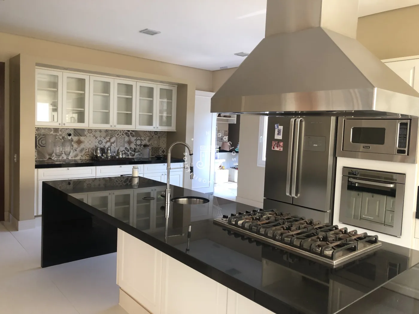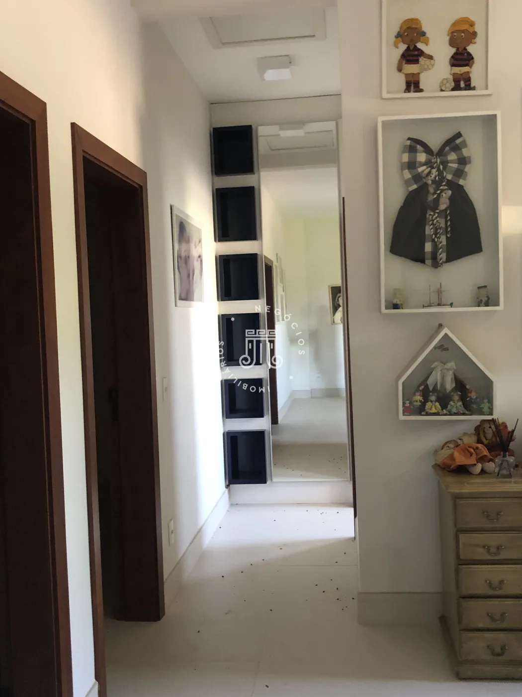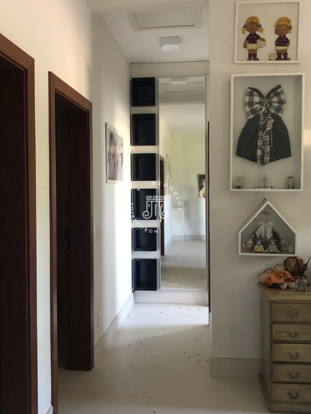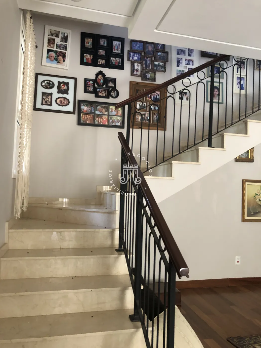 Excelente casa no Condomínio Quinta da Palmeiras em Jundiaí-SP. Com terreno de 1.100 m² e área construída de 700 m² localizada na parte alta do condomínio, porém aterrada, ficando a casa em terreno plano. Composta com: 04 suítes, sendo 03 com closet e 01 Suíte máster com banheira Jacuzzi, pia dupla e 02 chuveiros de teto, Todas as suítes contam com varanda em porta balcão e persianas automáticas, 01 quarto do pânico, Brinquedoteca podendo ser biblioteca, pé direito duplo na sala de estar com esquadrias de alumínio em vidros (abertura em todas as portas), mezanino em forma ondulada, sala de TV com assoalho de madeira, sala de jantar, Living, Lareira a gás, cozinha com gourmet e pia dupla, escritório, 03 banheiros com 02 chuveiros cada, lavabo, área de serviços, banheiro de serviços, despensa, escada helicoidal com degraus vazados, jardim de inverno com aquário (podendo instalar elevador) e garagem para 4 carros com depósito. *Casa com ambientes integrados, cozinha, sala de jantar, living, home theater, gourmet, piscina, salão de festa e sauna. Área de lazer com: piscina de 4x8 + 3x2 de Spa com hidromassagem, led, cascata e aquecimento solar, ducha, salão de jogos e festa ou podendo ser academia com 60 m², depósito de materiais com 40 m², paisagismo, espaço com pomar e floreiras na fachada da casa. Além disso, o imóvel está equipado com pisos frios e revestimentos de toda casa com a marca Portinari e Portobello, iluminação toda em led, inclusive com vários ambientes com fita led, pressurizador de água, aquecimento solar com 02 boilers, sistema de gás encanado e dutos prontos, toda tubulação de água fria/quente em tubos a aquatherm tigre, pergolados internos e externos cobertos com vidro, toda área úmida impermeabilizada, pintura em textura granfino plus com tinta Suvinil, todos os banheiros internos com aquecimento solar e torneiras monocomando, chuveiro de teto, sistema de aspiração central, todos os dormitórios e sala de tv preparados para ar condicionado, esquadrias de alumínio linha gold preto, piso superior + sala de tv com assoalho de madeira cumaru, 7 camadas de verniz , média de 200 mts. (Não tem manutenção este assoalho), telhas com revestimento acústico, térmico tipo sanduíche, vigas confeccionadas em concreto tipo caixaria (convencional), não possui canaleta, malha de aço em todo o piso inferior da casa, área de lazer e salão de jogos sob o piso para evitar trincas, calhas em rufos em alumínio, muro em pedra bruta com 120 mts e largura de 1,5 mt em sua base e área aterrada, sistema de drenagem com dutos de 12 e impermeabilização no muro de divisa e massa corrida em toda parte interna e massa acrílica nas áreas úmidas e cozinha.