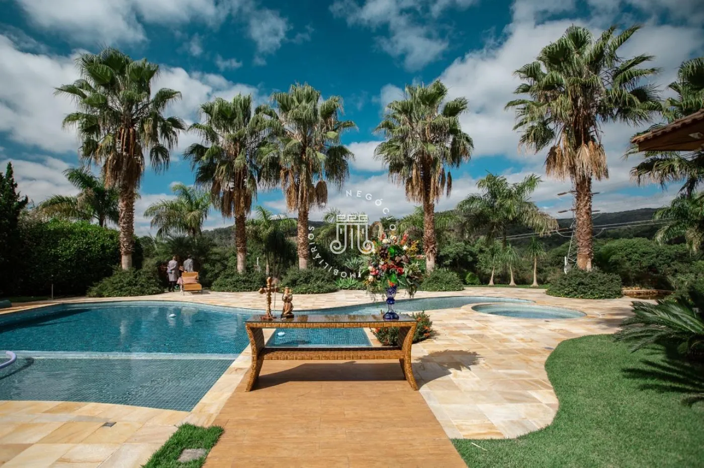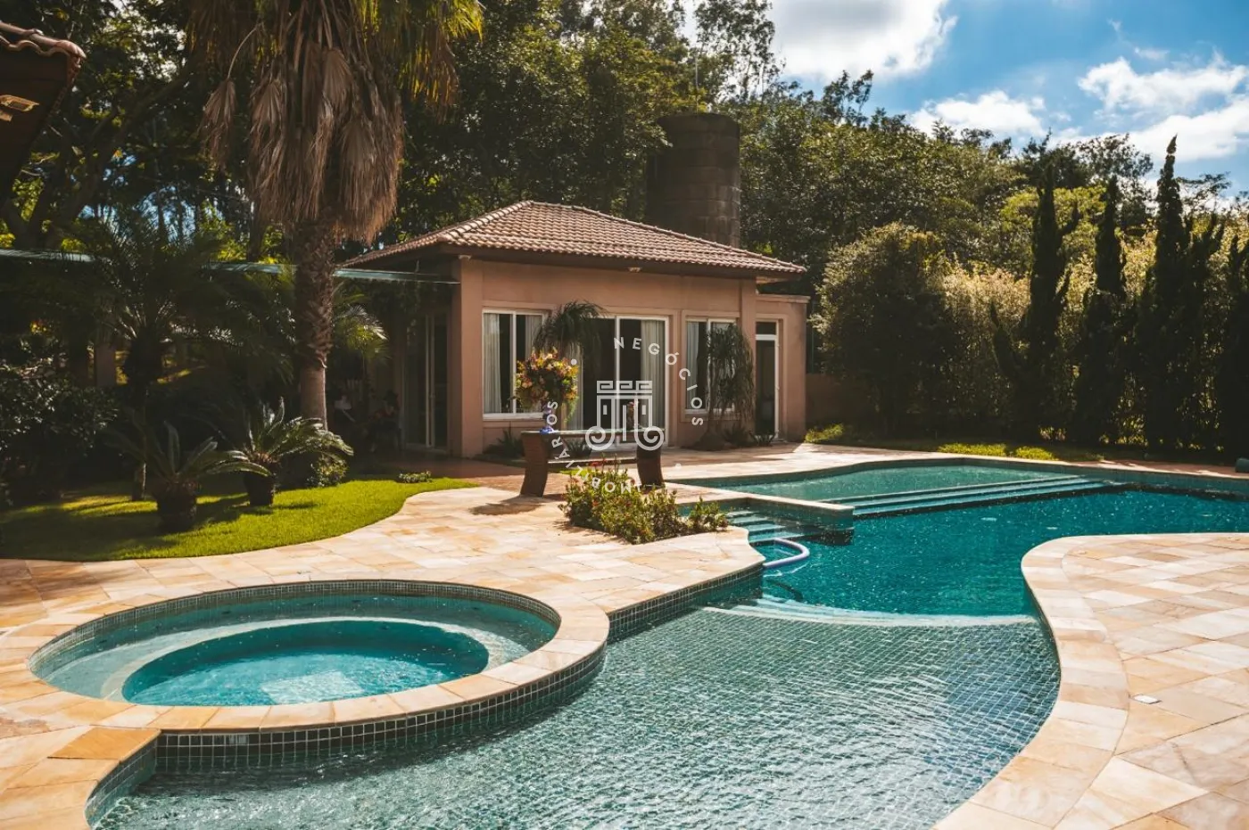 Casa de novela! Alto padrão com 800m² de área construída composta por suíte master com closet e banheiro com pia dupla, 03 suítes com armário planejado, sala TV, parte superior com banheiro e 02 quartos com planejados e uma sala/hall, sótão, sala de jantar, adega climatizada, sala de visitas, cozinha gourmet com despensa e armários, churrasqueira, varanda, pergolado, salão de jogos, piscina, casa anexa para caseiro ou convidados, garagem para 8 veículos, ar condicionado, pomar com árvores frutíferas.