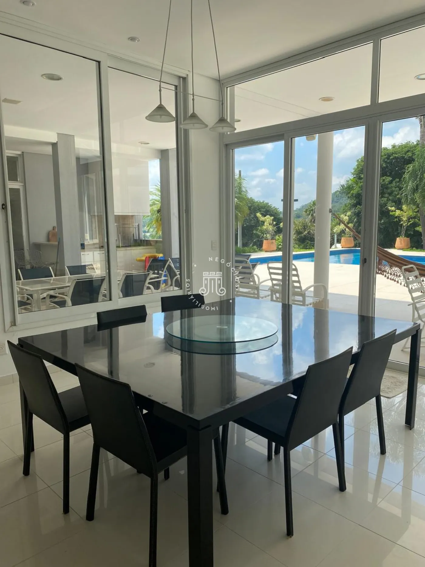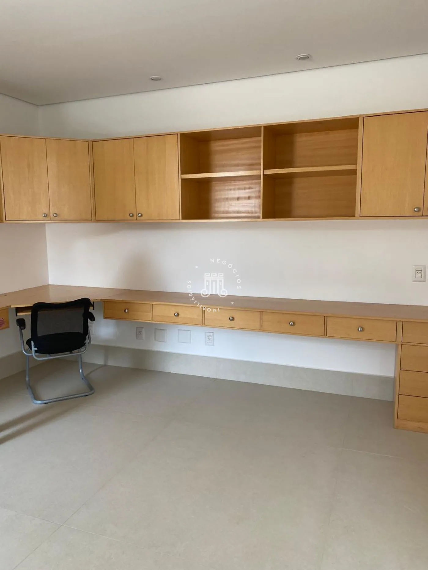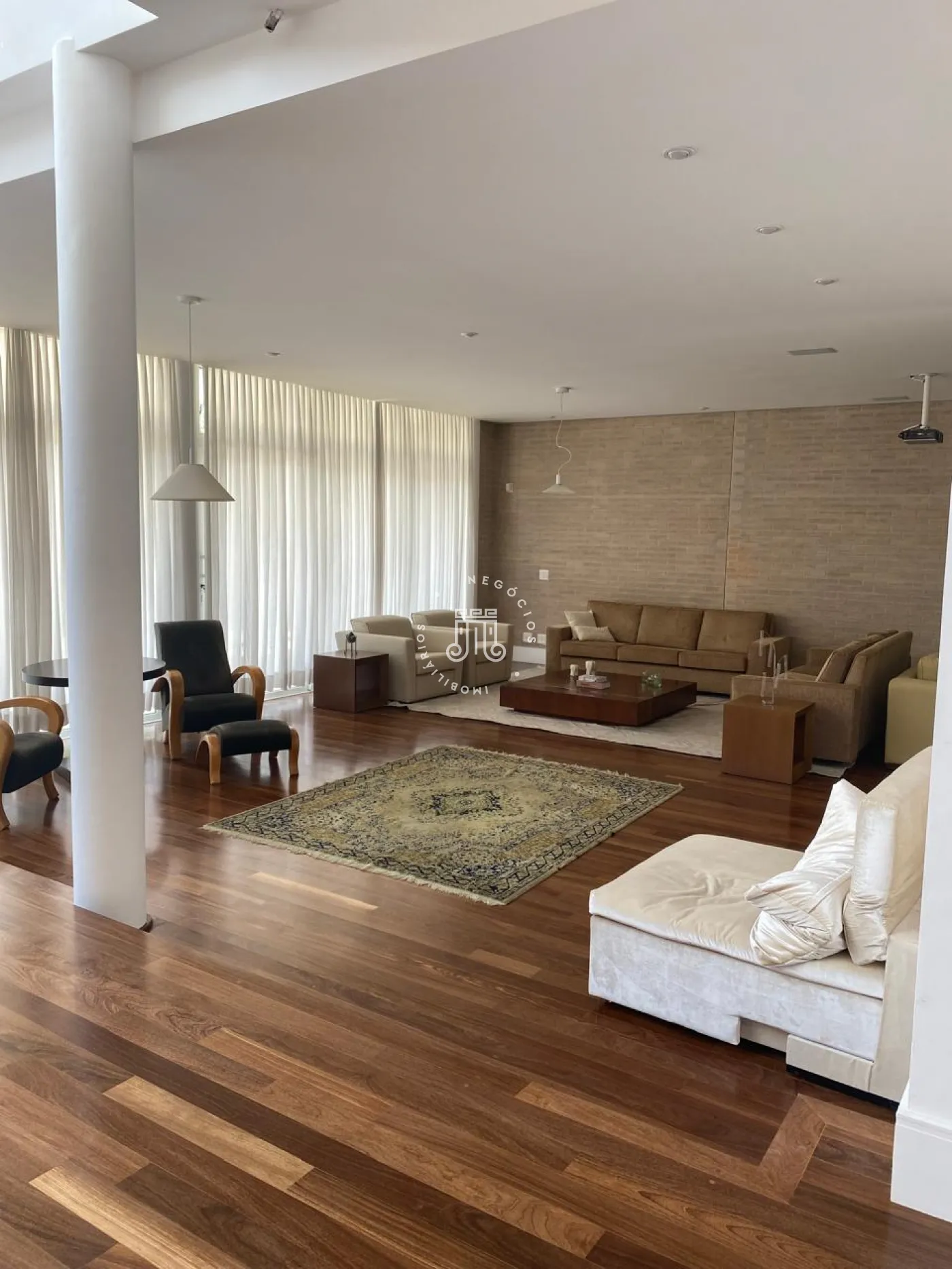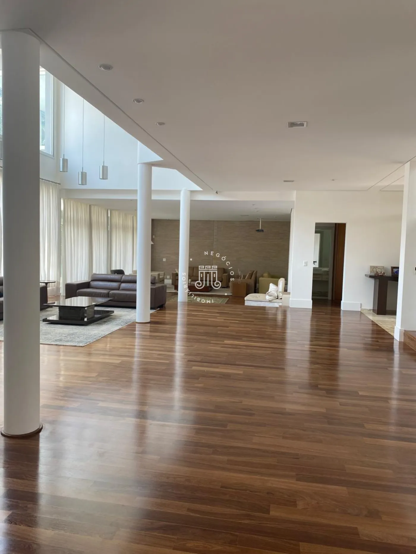O imóvel conta com elevador panorâmico com acesso direto à suíte máster, cozinha e área da piscina. Há dois escritórios, sala íntima, spa e duas piscinas, sendo uma interna com aquecimento e capacidade para 20 mil litros, e uma externa com 88 mil litros, interligada ao espaço gourmet com churrasqueira. A propriedade também dispõe de quadra de tênis com medidas oficiais.