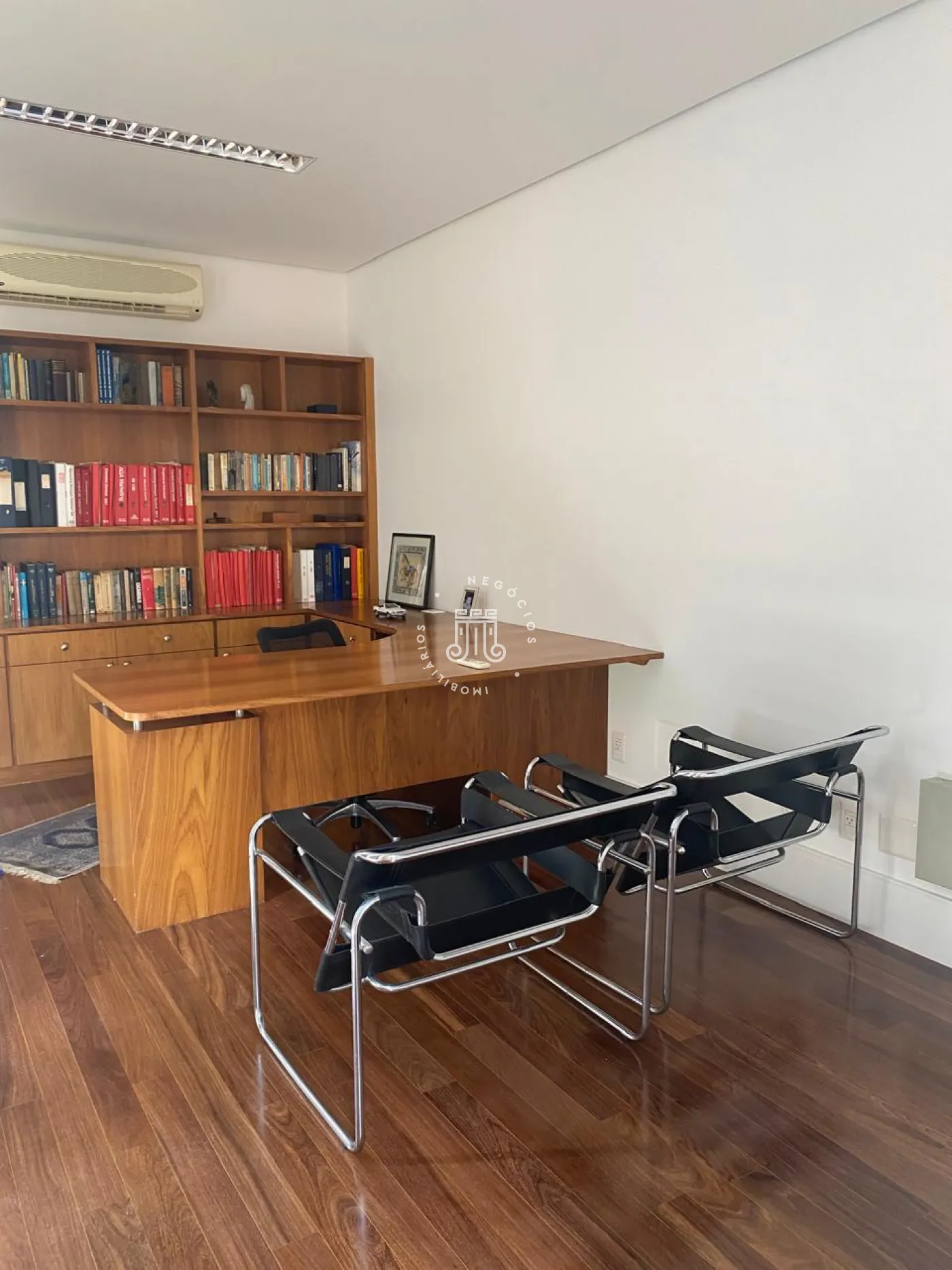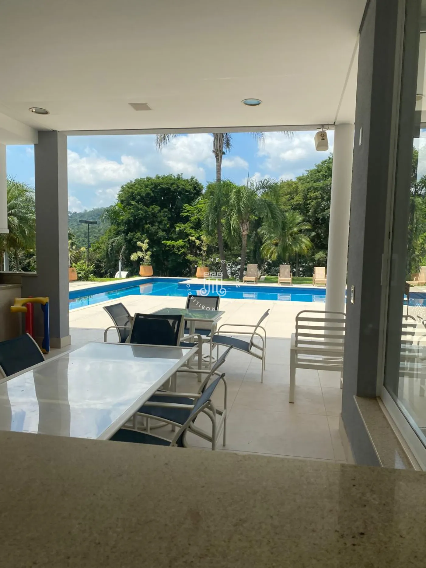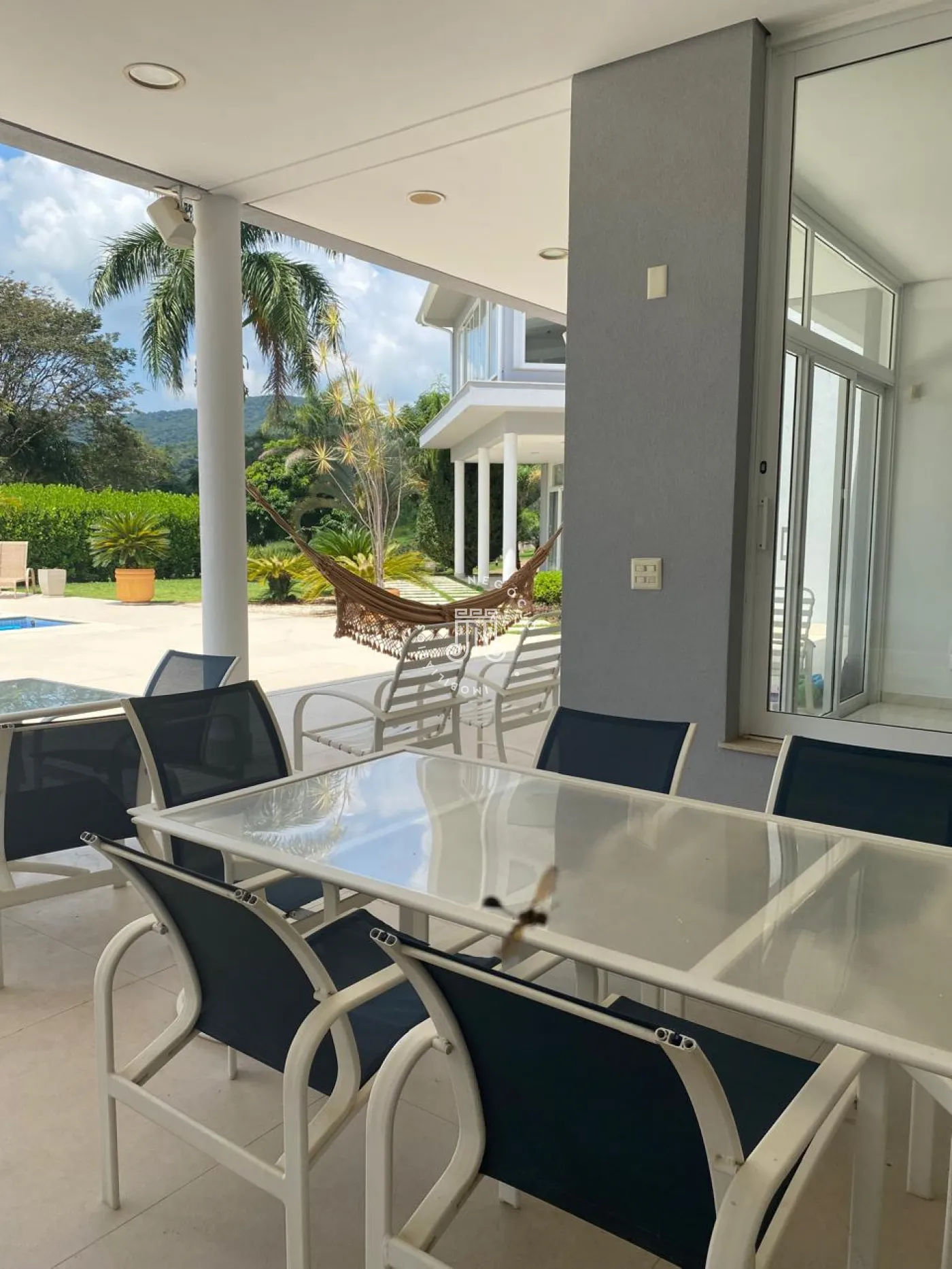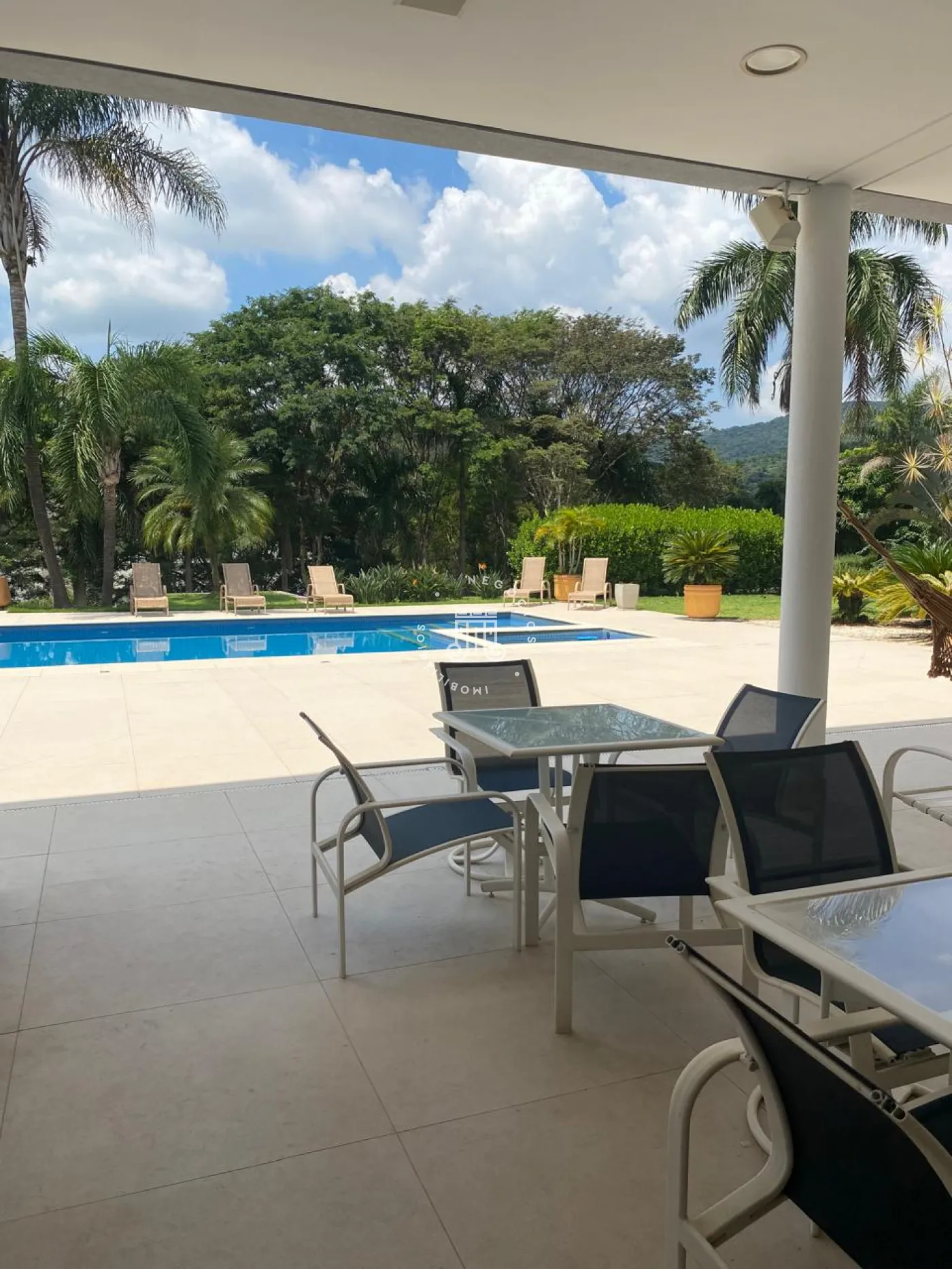 O imóvel conta com elevador panorâmico com acesso direto à suíte máster, cozinha e área da piscina. Há dois escritórios, sala íntima, spa e duas piscinas, sendo uma interna com aquecimento e capacidade para 20 mil litros, e uma externa com 88 mil litros, interligada ao espaço gourmet com churrasqueira. A propriedade também dispõe de quadra de tênis com medidas oficiais.