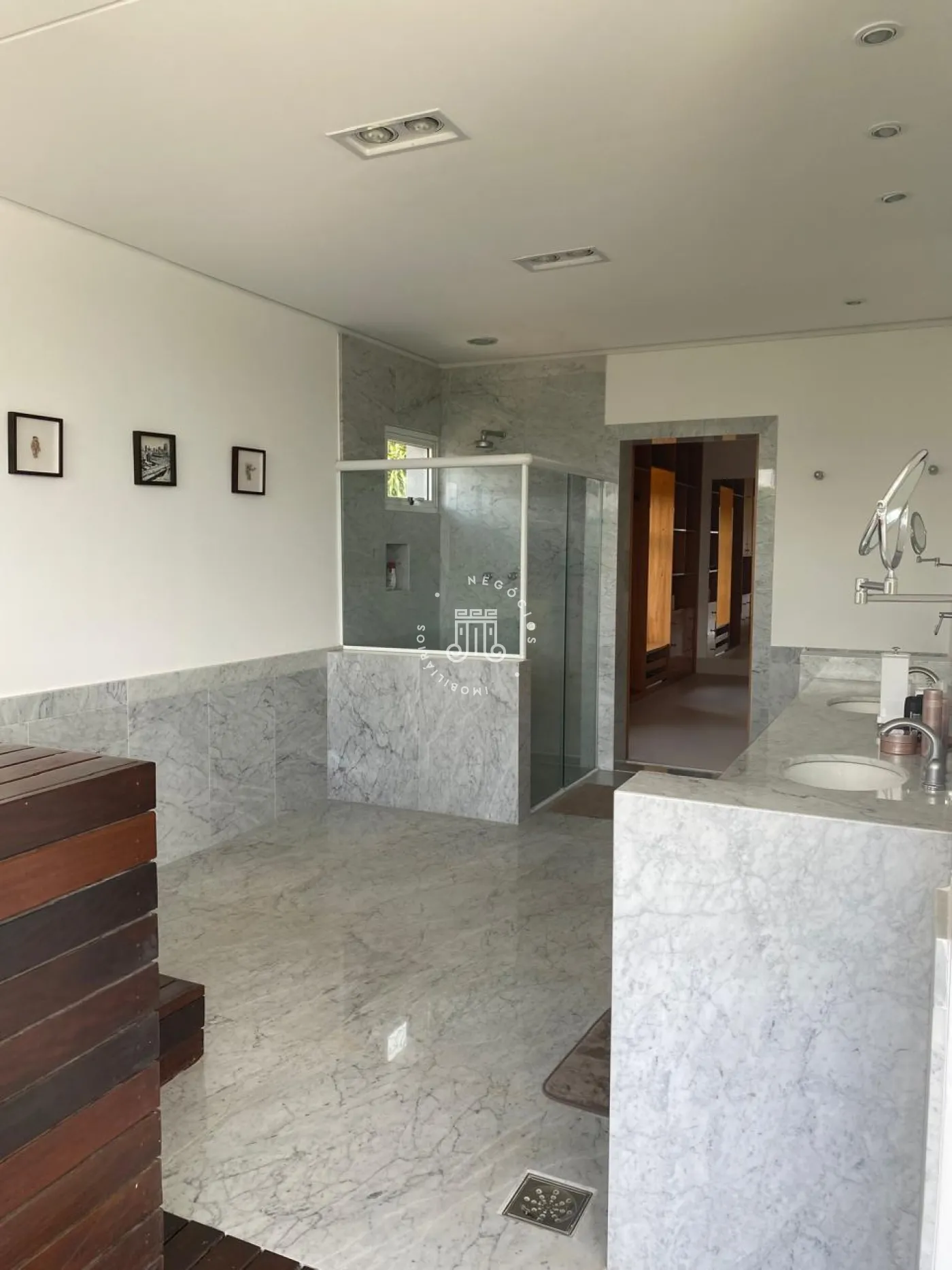 Localizada no condomínio Malota, na cidade de Jundiaí/SP, esta residência foi projetada para oferecer ampla funcionalidade e infraestrutura completa. O imóvel é composto por cinco suítes, incluindo uma suíte máster com closet duplo, pia dupla, banheira com hidromassagem, ar-condicionado, espelhos no teto e sistema de aquecimento no piso do banheiro.