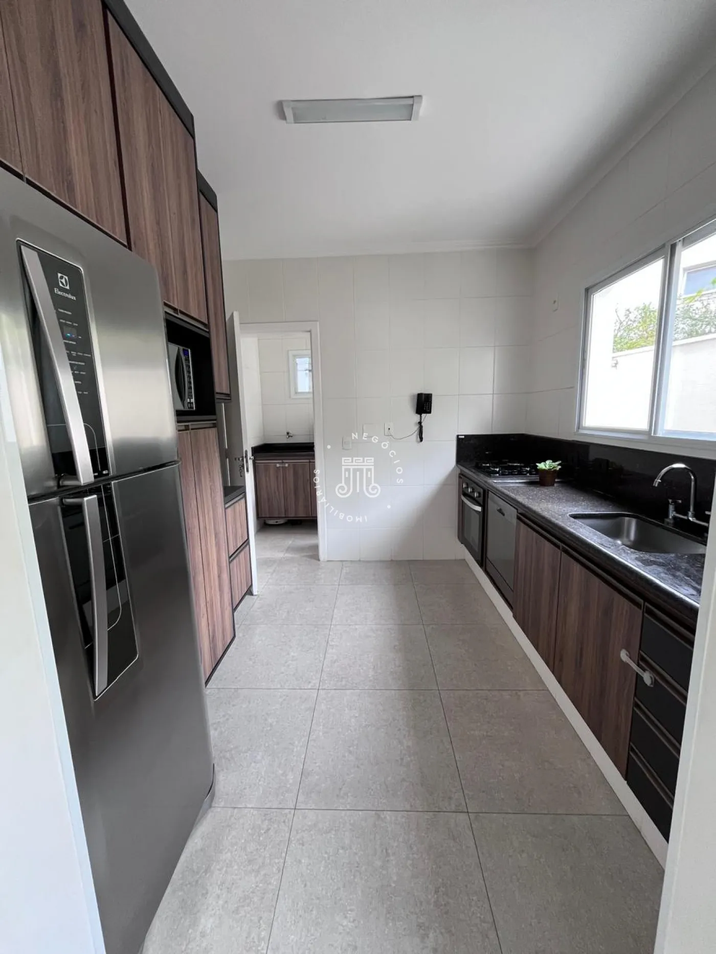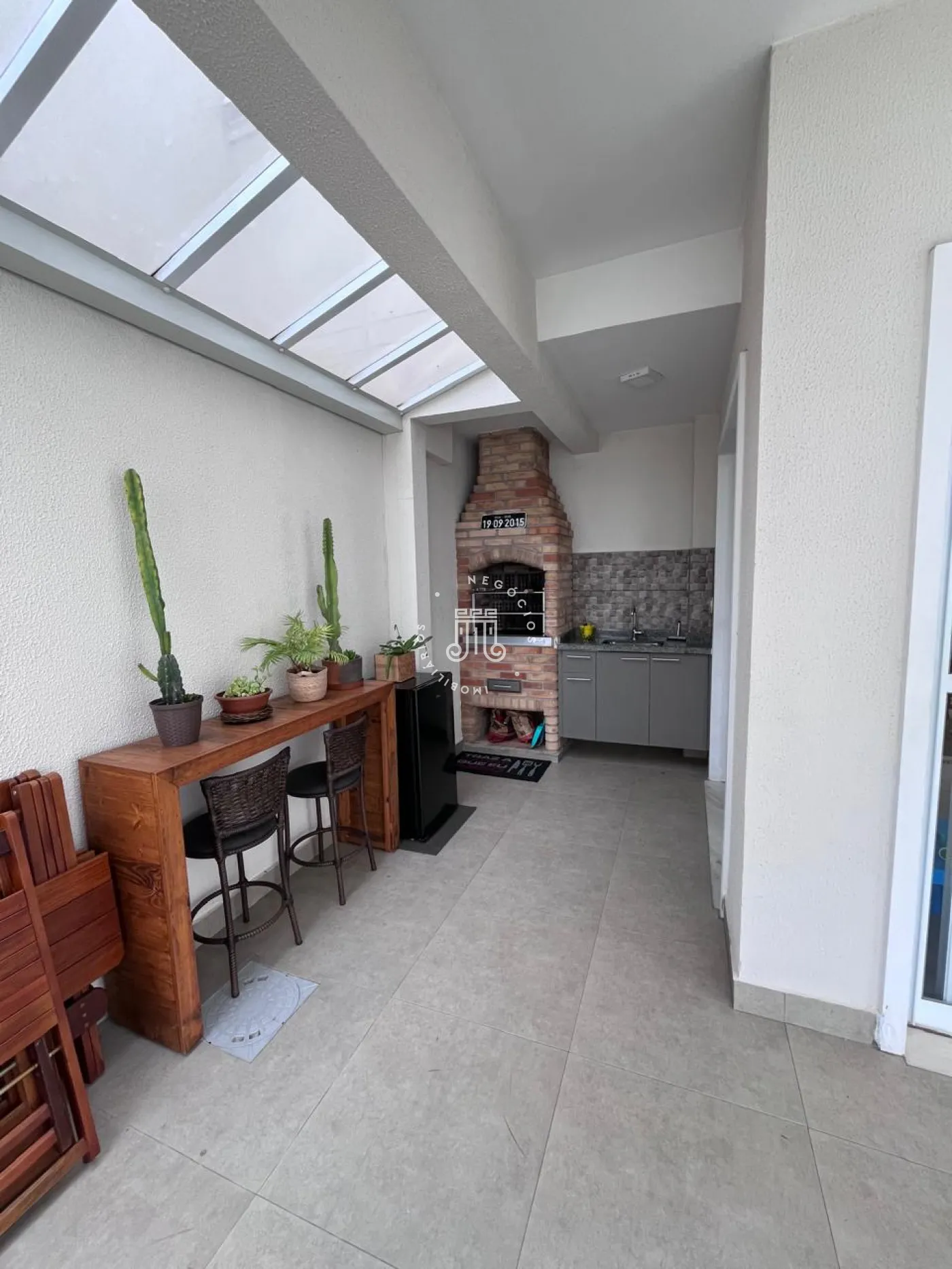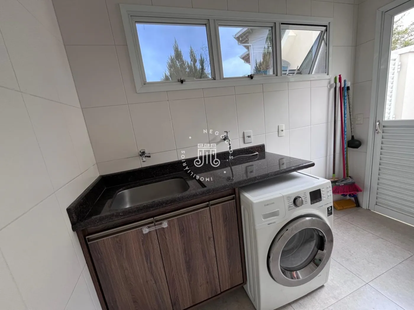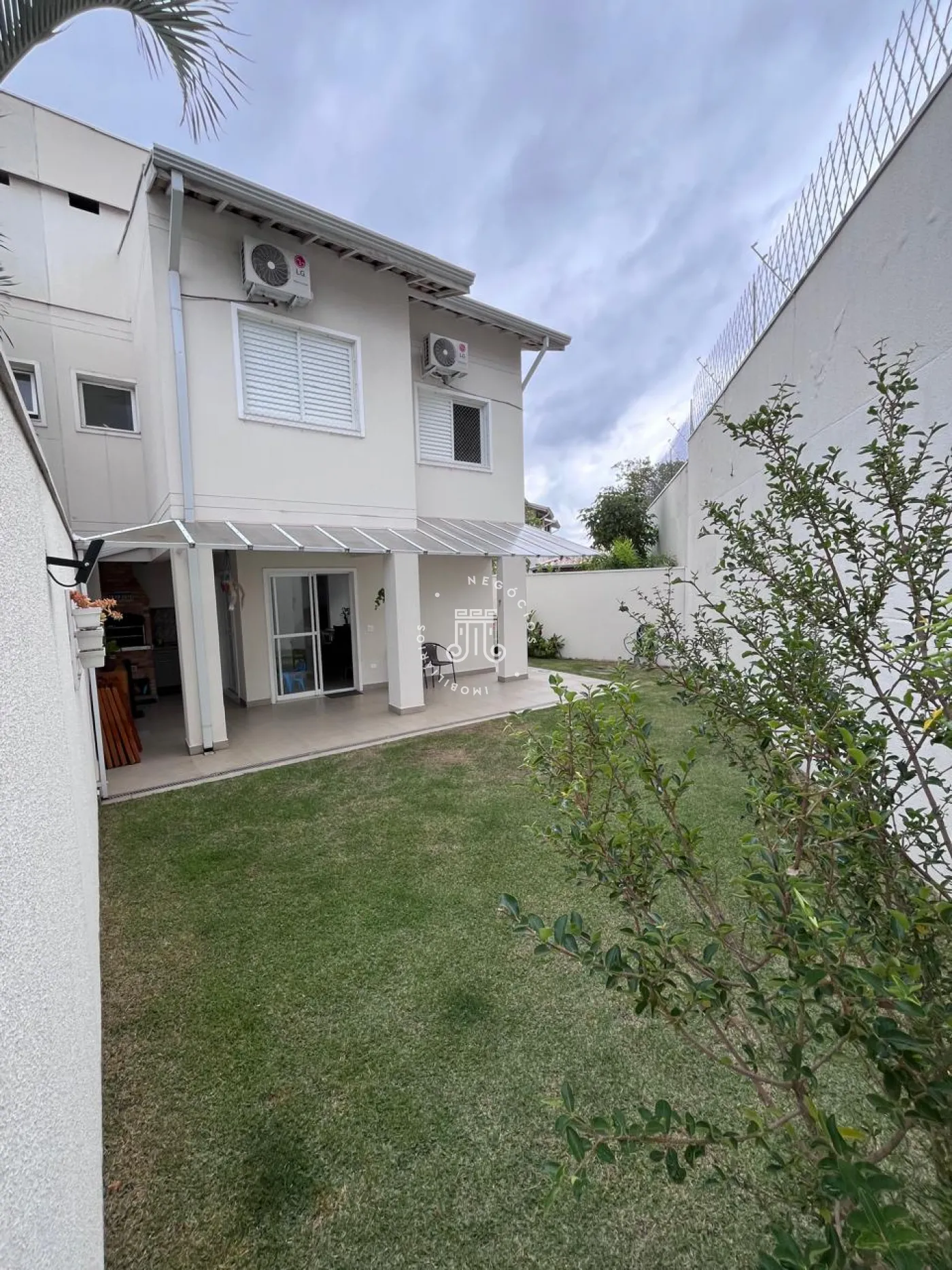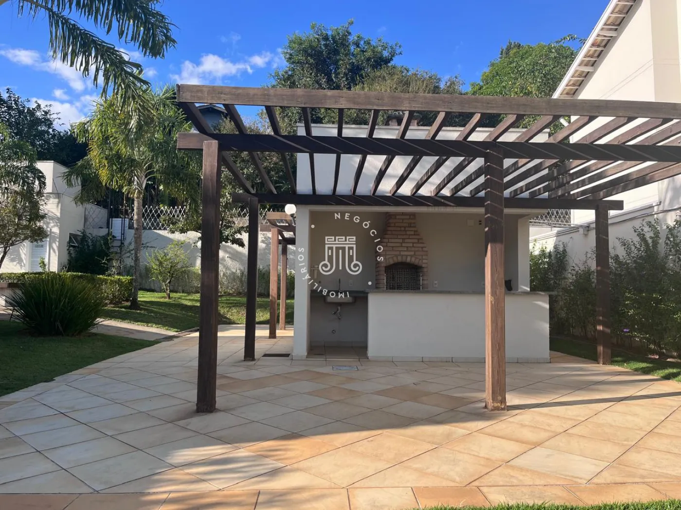 Na área externa conta com amplo jardim com grama, área gourmet com churrasqueira e banheiro.