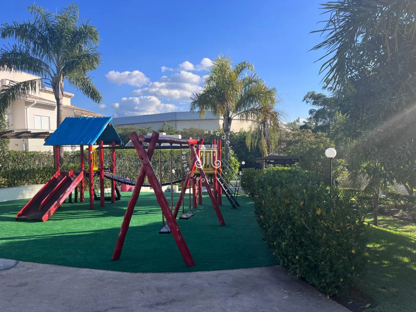 O condomínio conta com playground, bosque e quadra