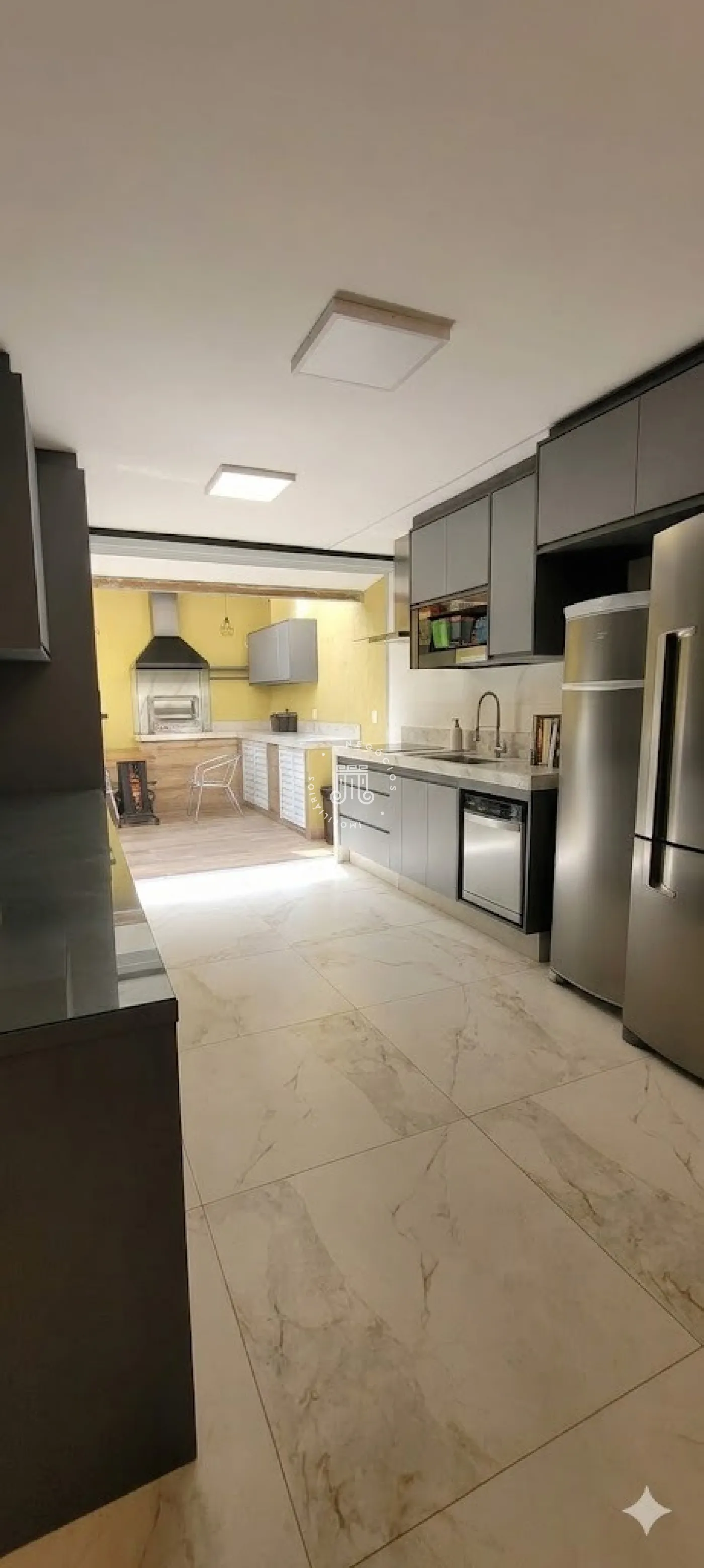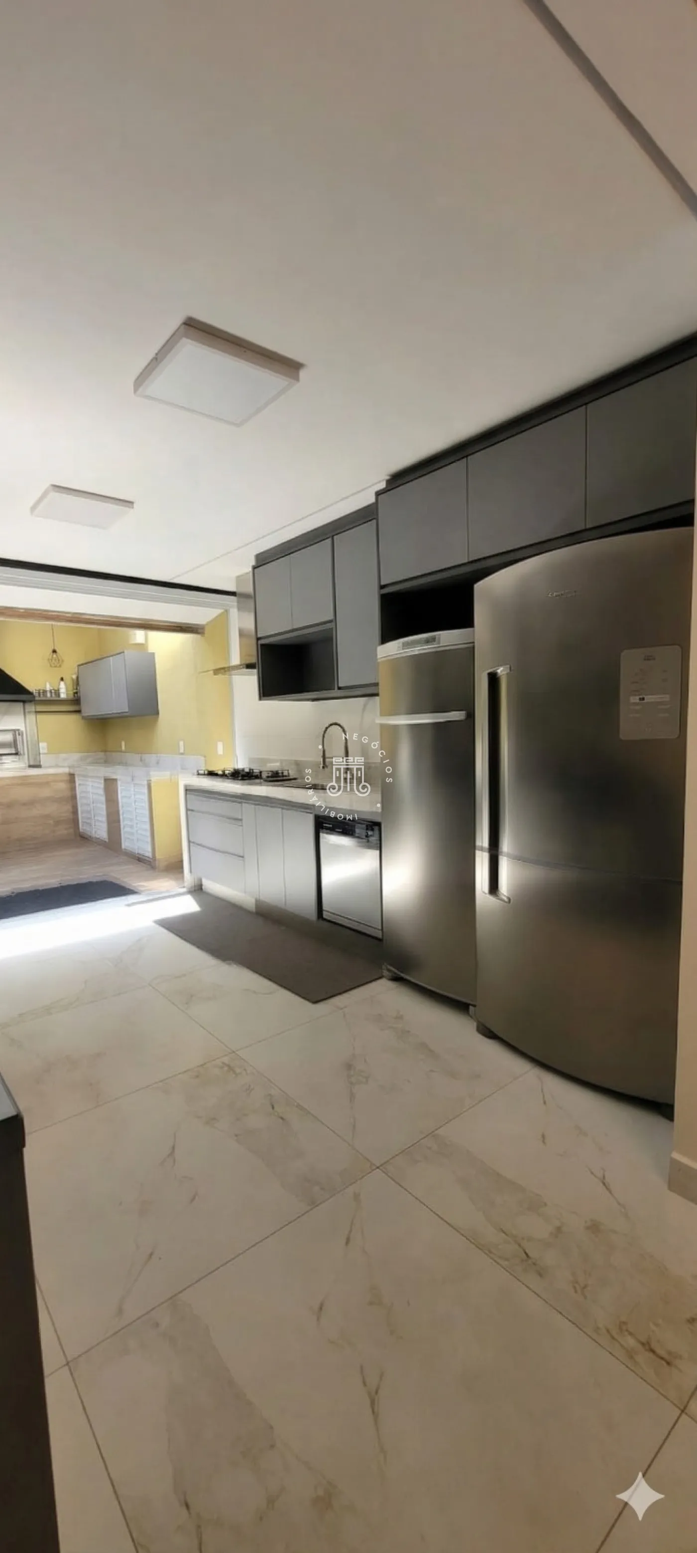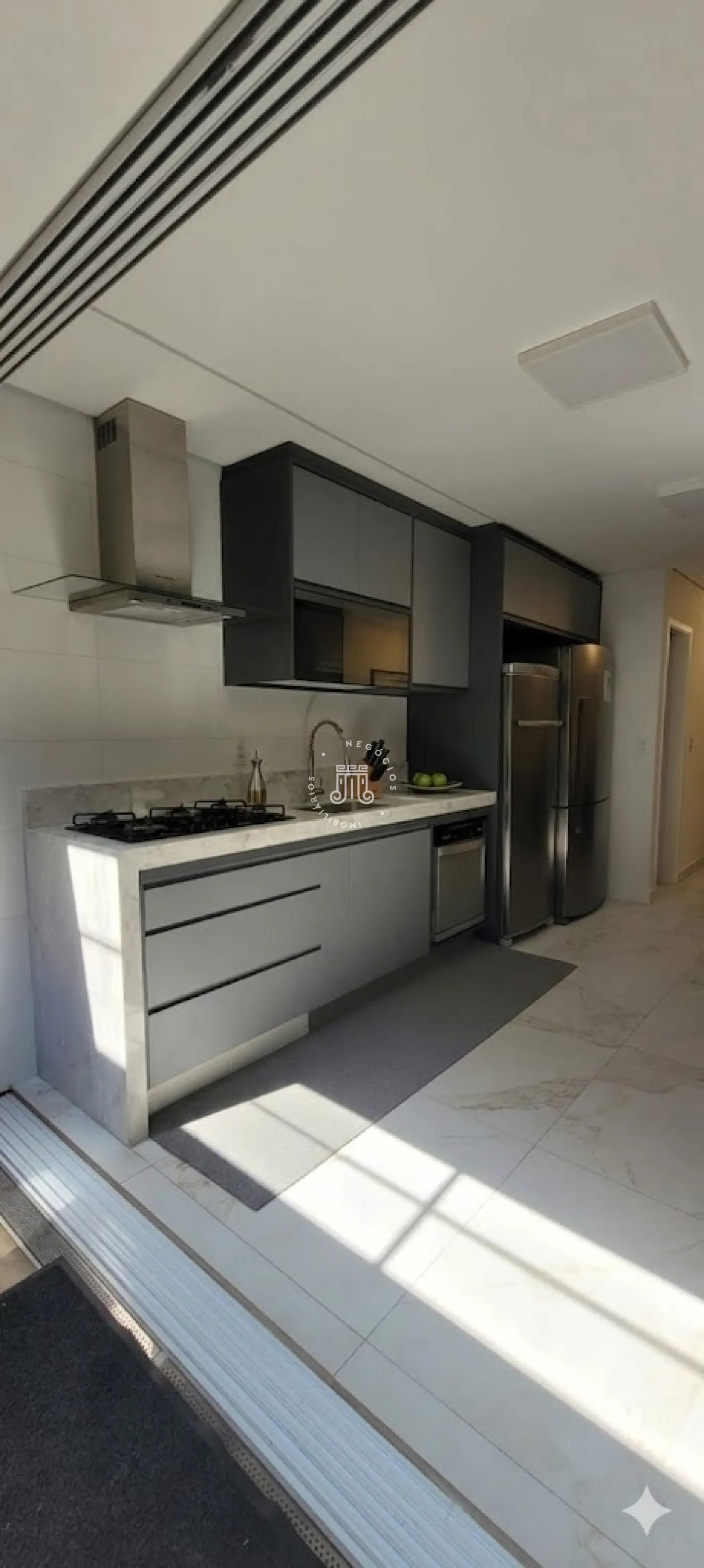 - Cozinha completa com armários, fogão embutido, coifa e cooktop;