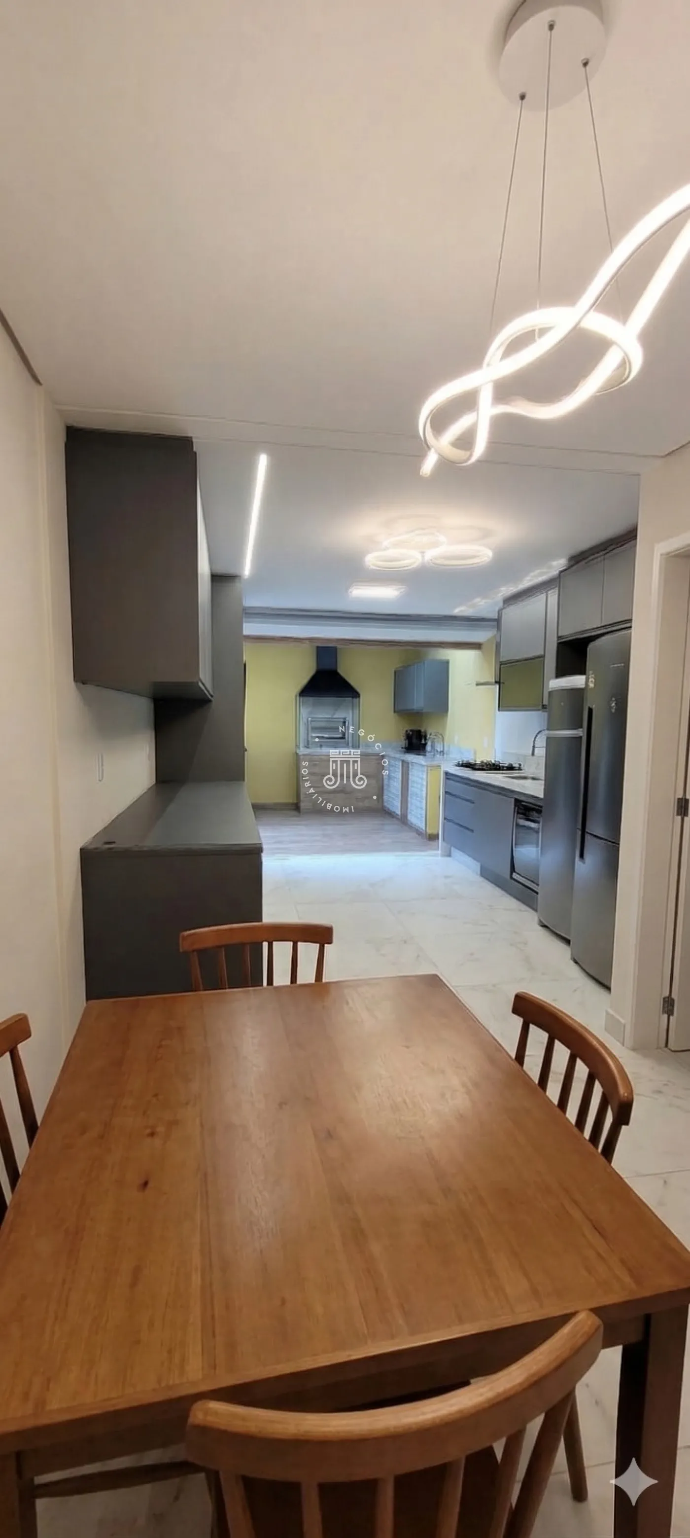 - Sala de jantar integrada à cozinha;