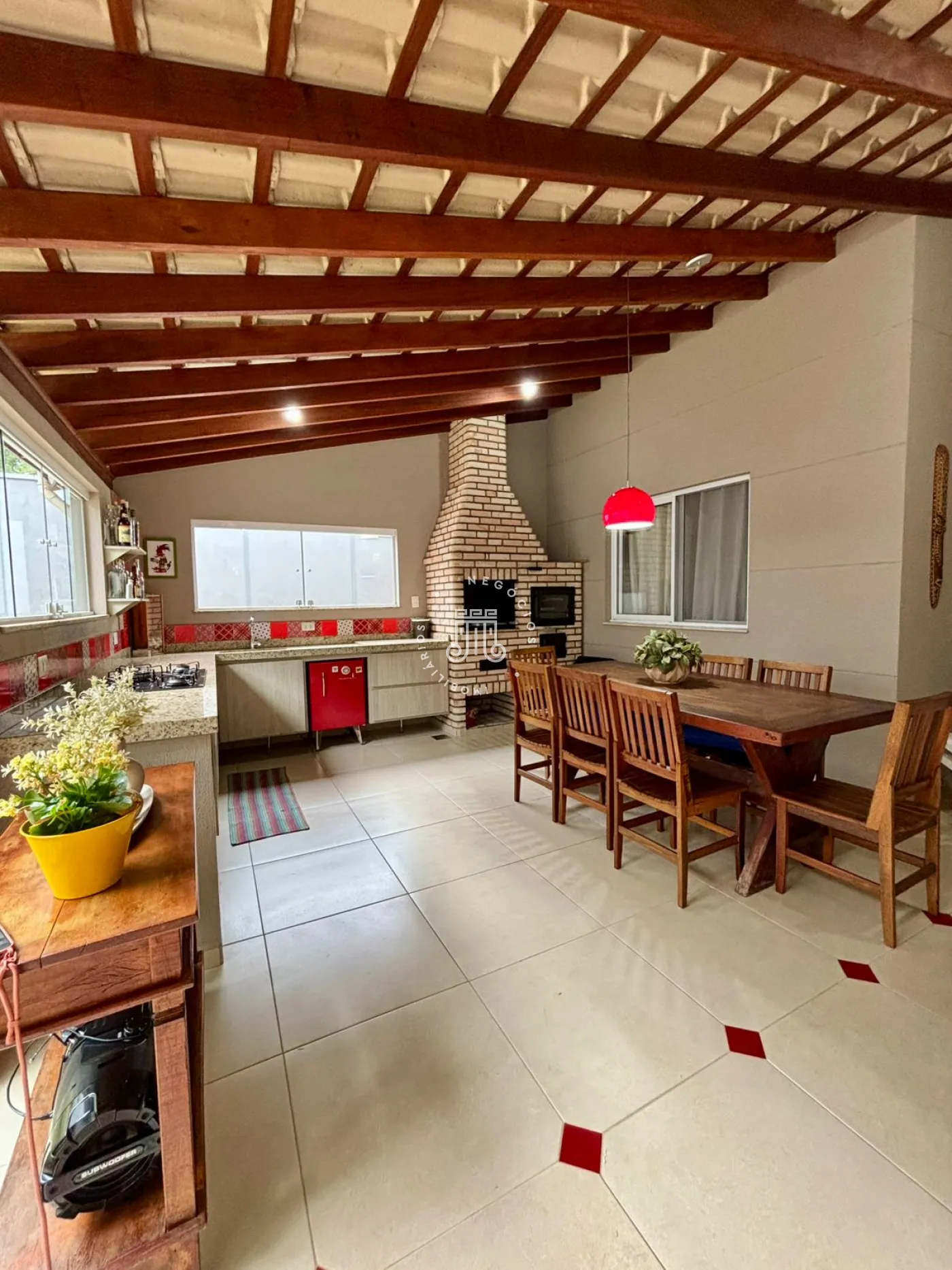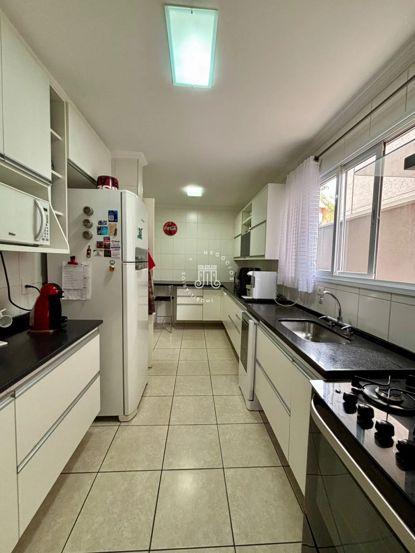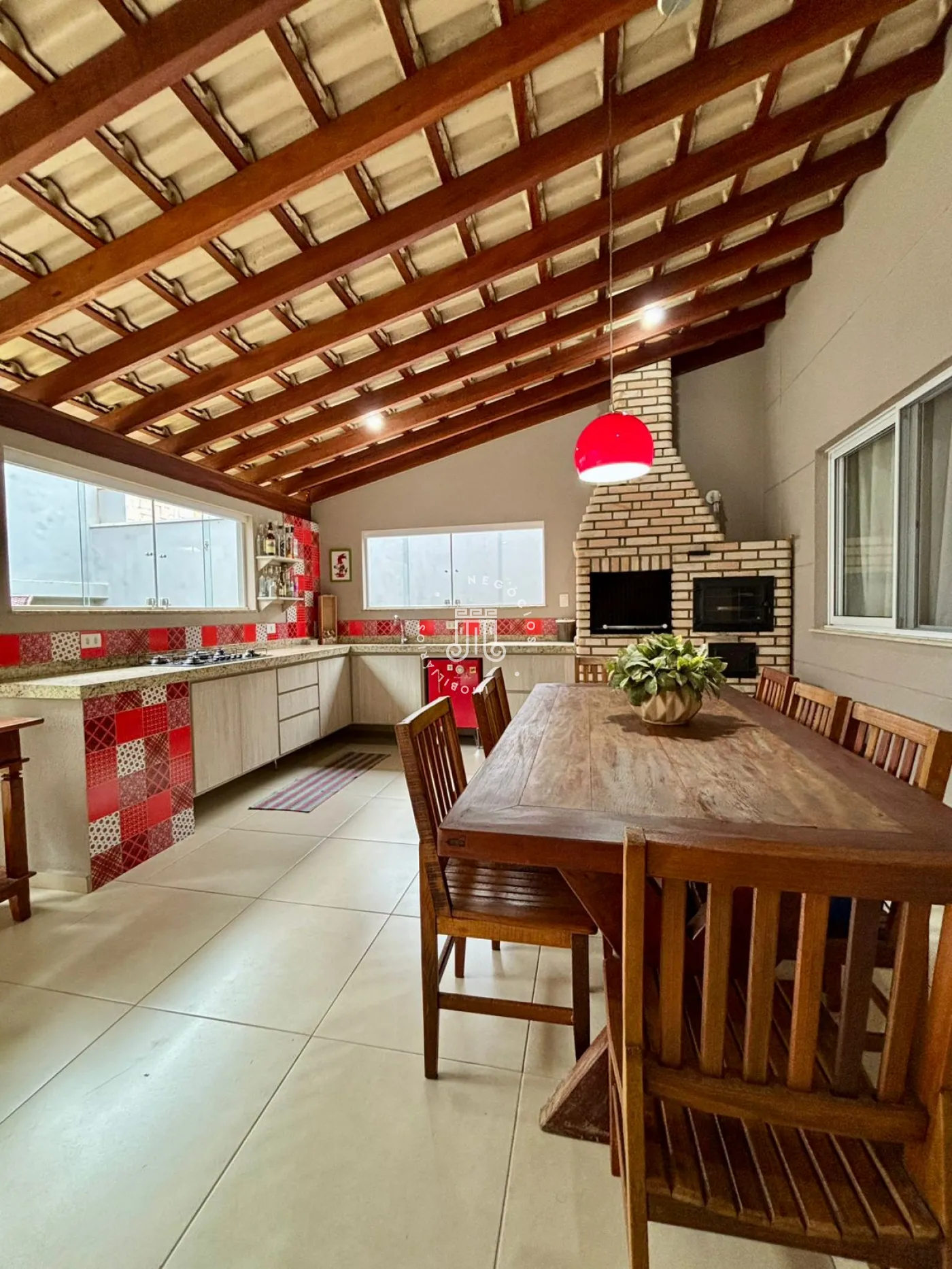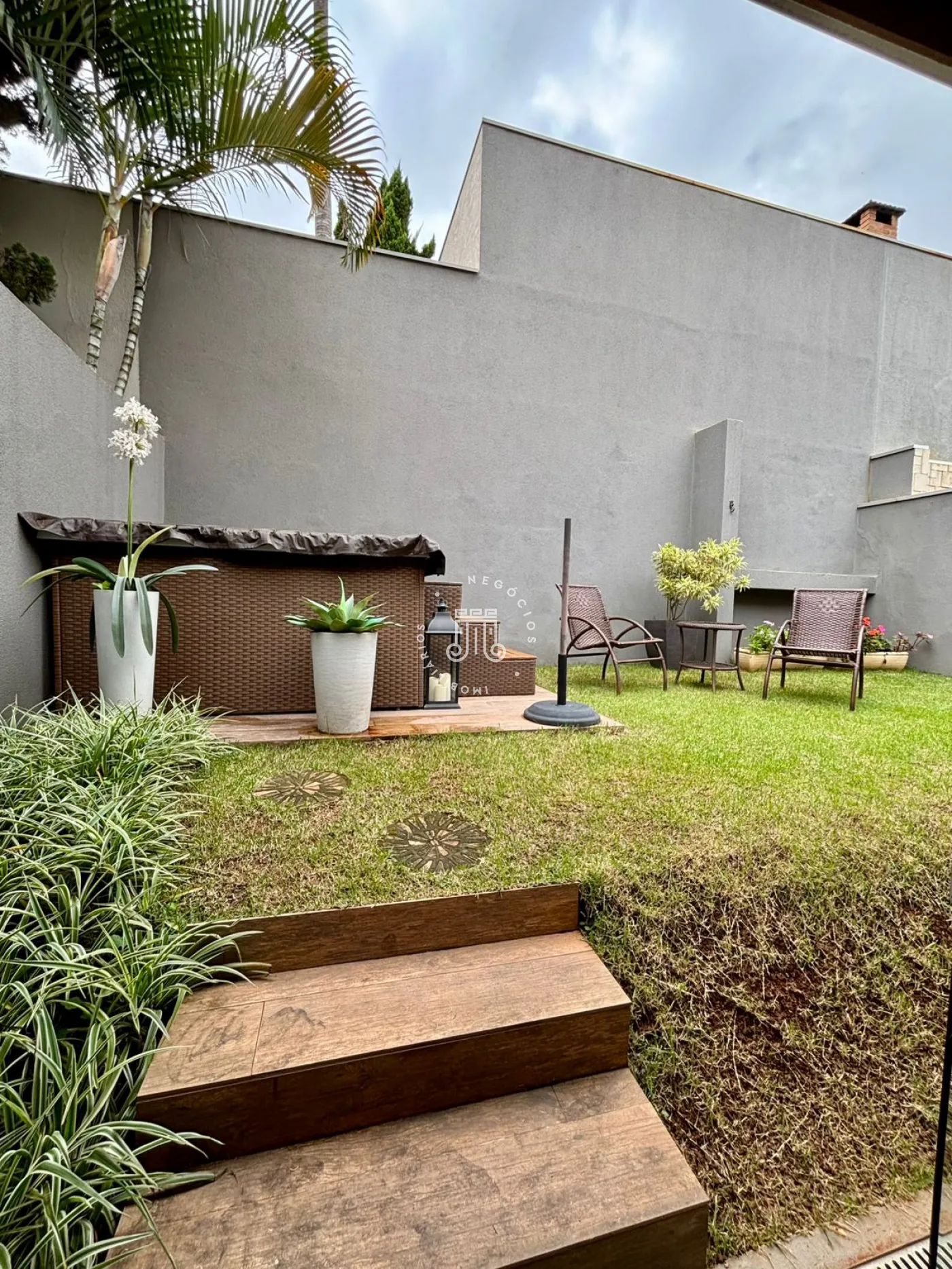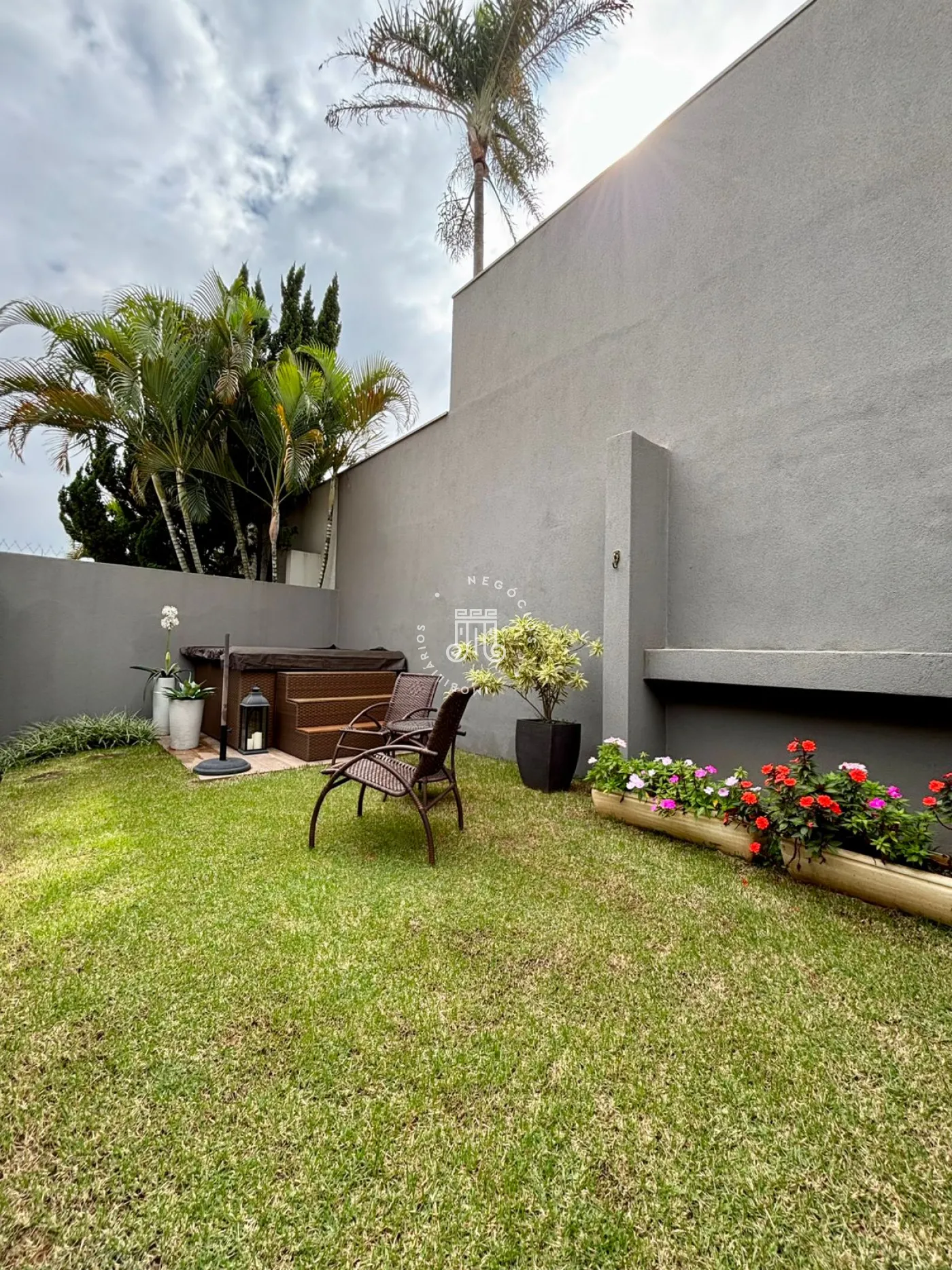 Possui 4 dormitórios, sendo 1 suíte, todos com planejados e 2 com ar condicionado, sala 2 ambientes, cozinha planejada, banheiro social, lavabo, área de serviço com armários, espaço gourmet com churrasqueira, fogão cooktop e forno, quintal gramado com Spa, 4 vagas de garagem, sendo 1 coberta.