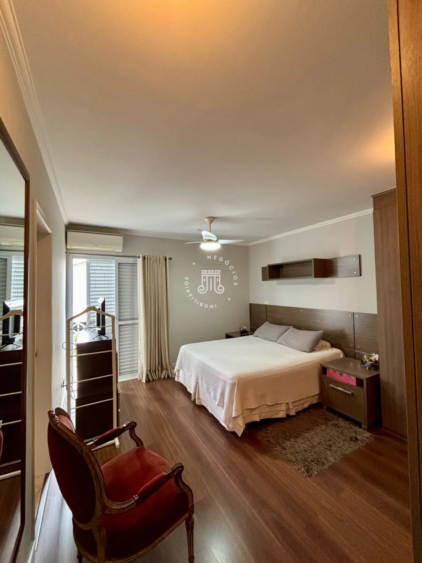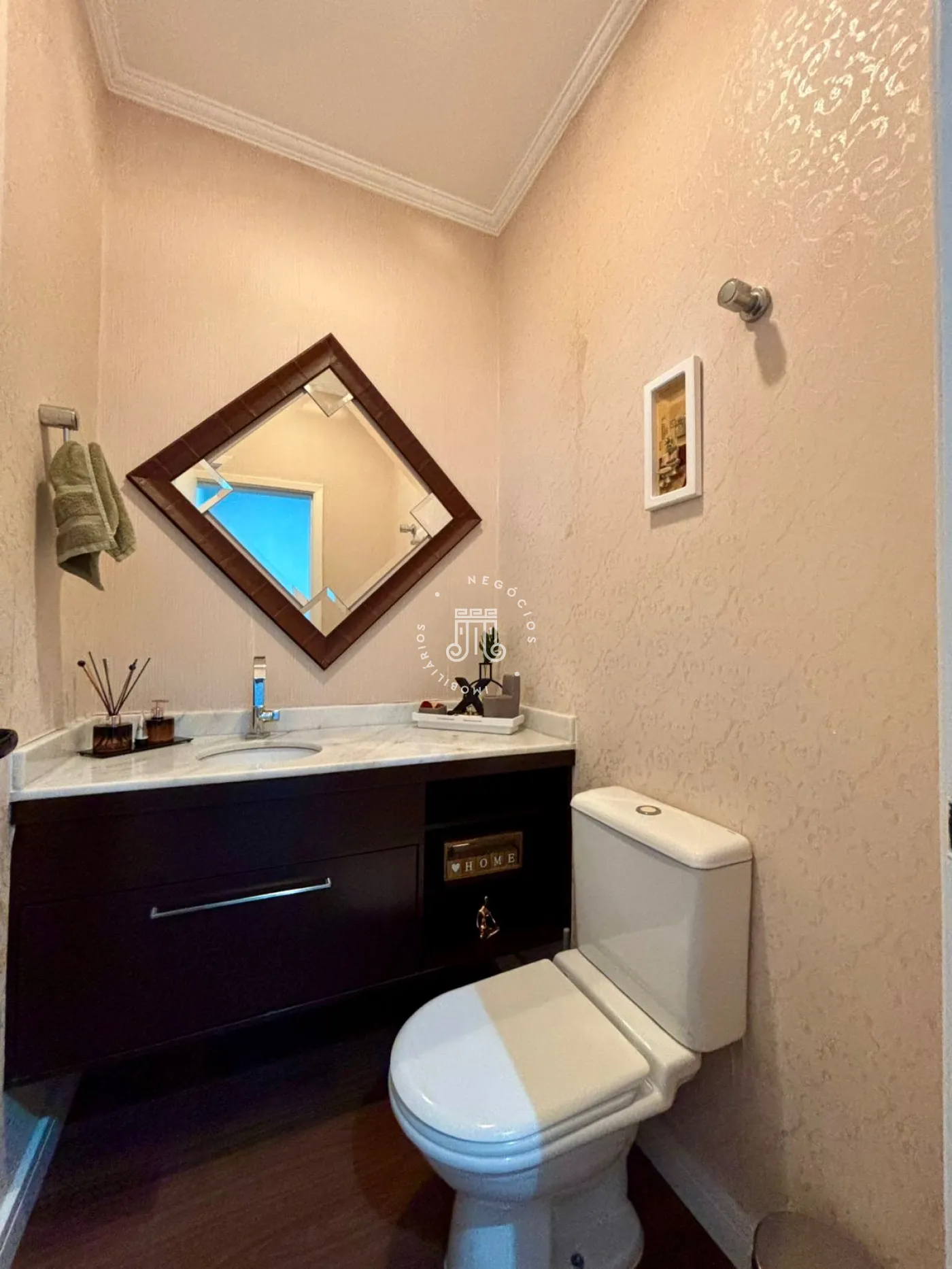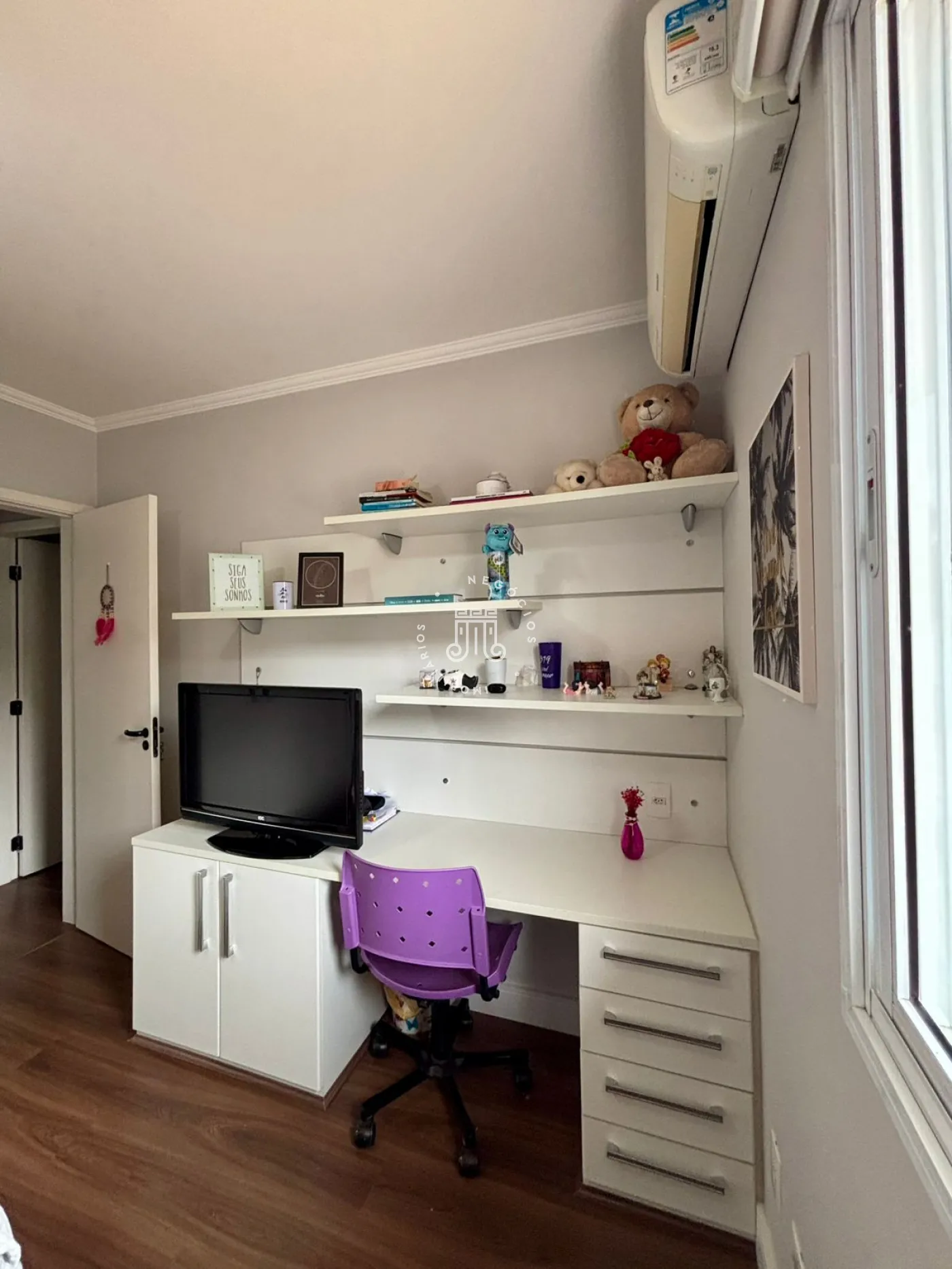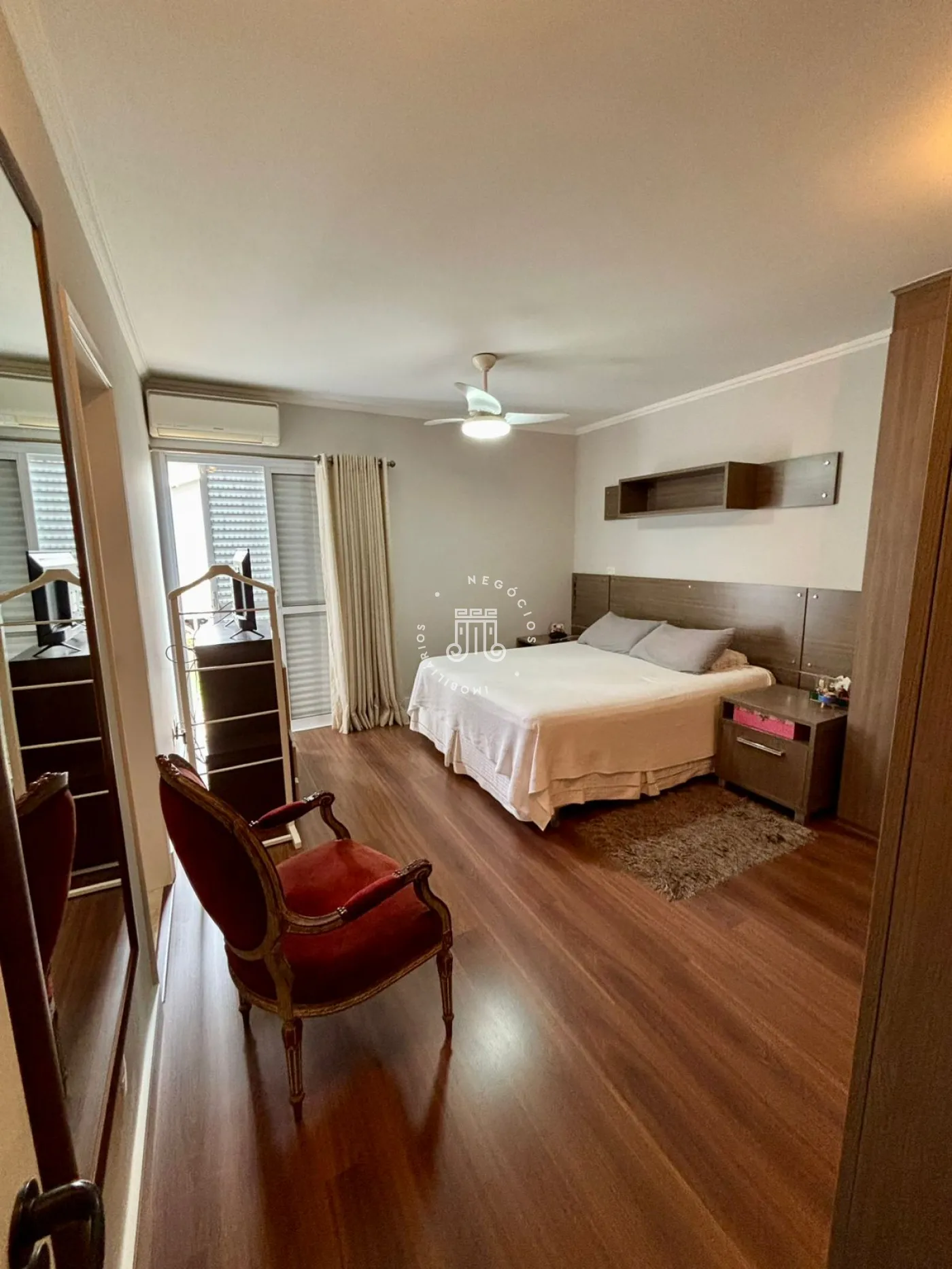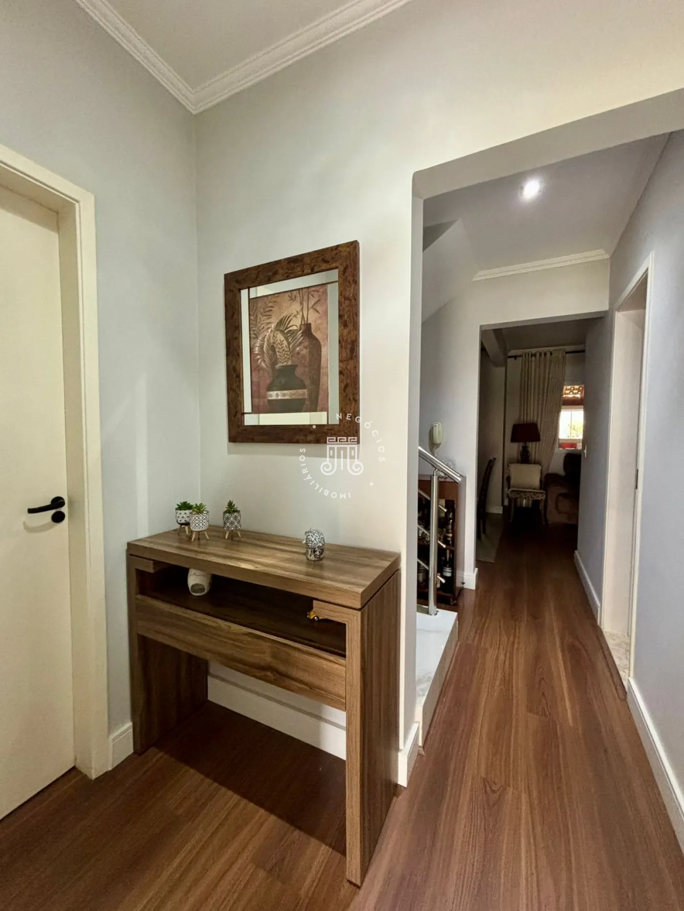 Possui 4 dormitórios, sendo 1 suíte, todos com planejados e 2 com ar condicionado, sala 2 ambientes, cozinha planejada, banheiro social, lavabo, área de serviço com armários, espaço gourmet com churrasqueira, fogão cooktop e forno, quintal gramado com Spa, 4 vagas de garagem, sendo 1 coberta.