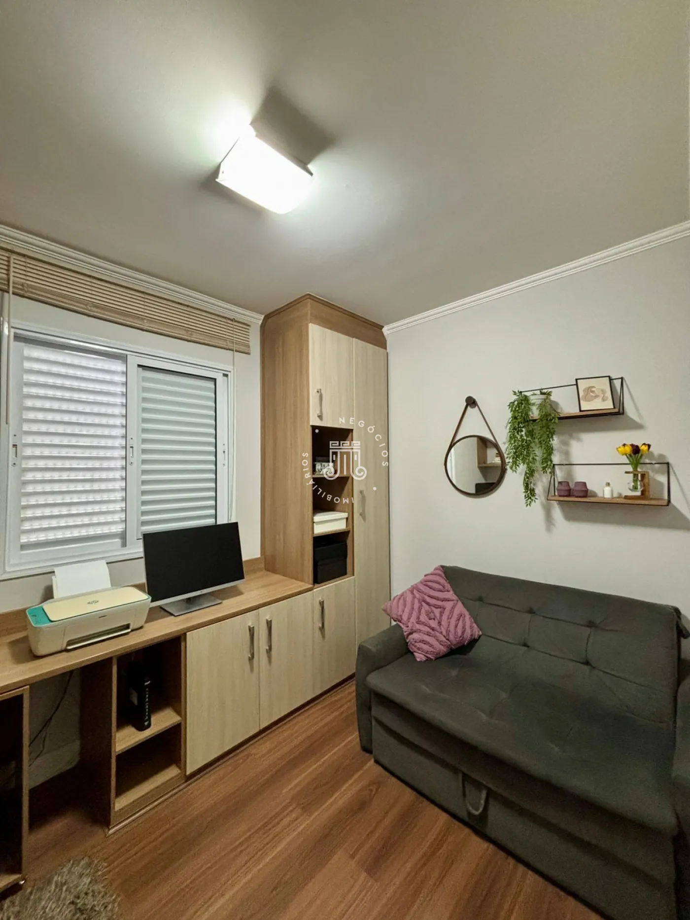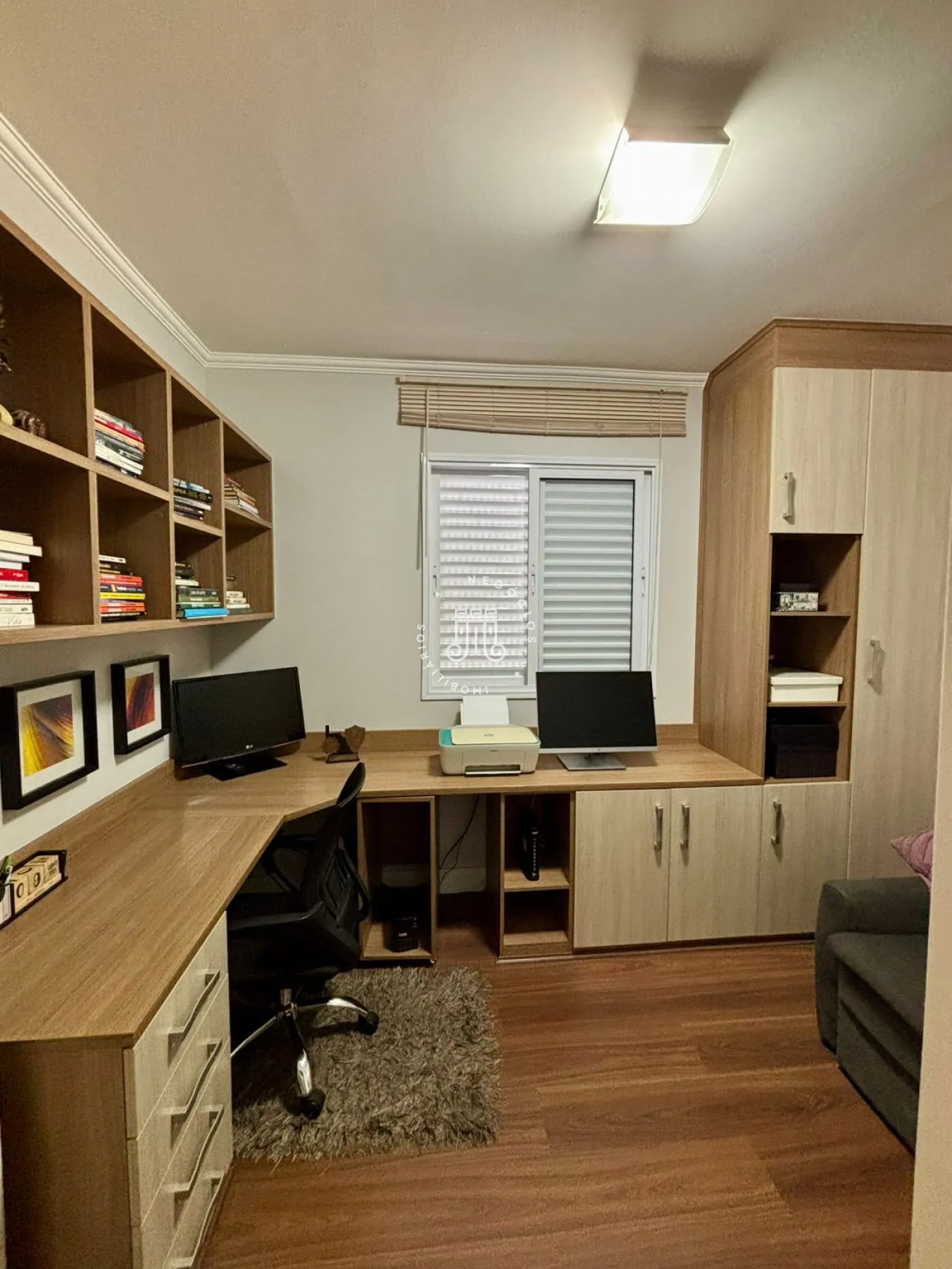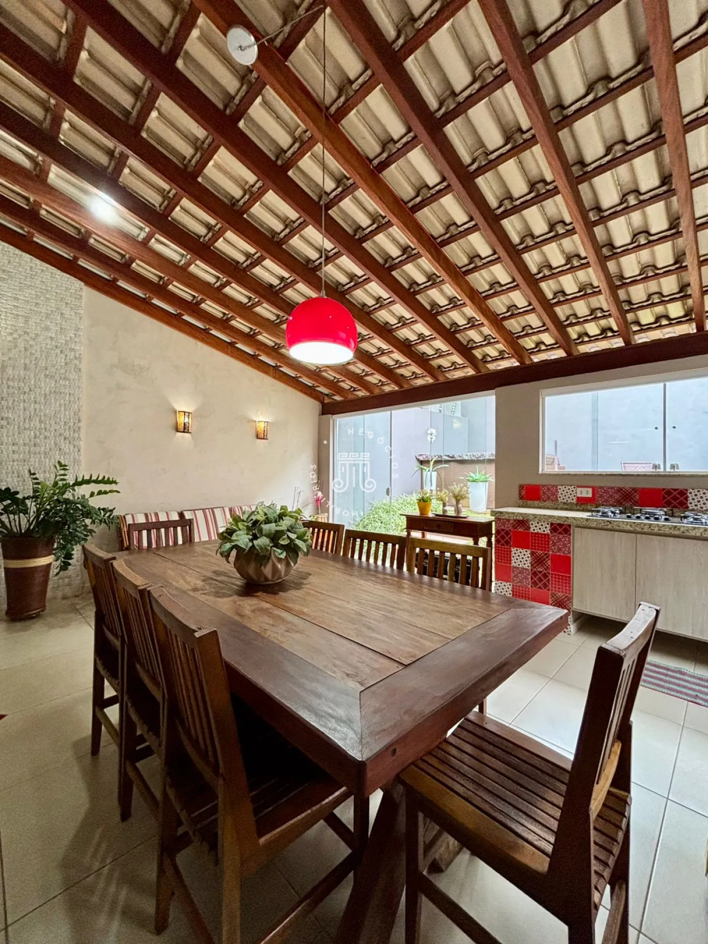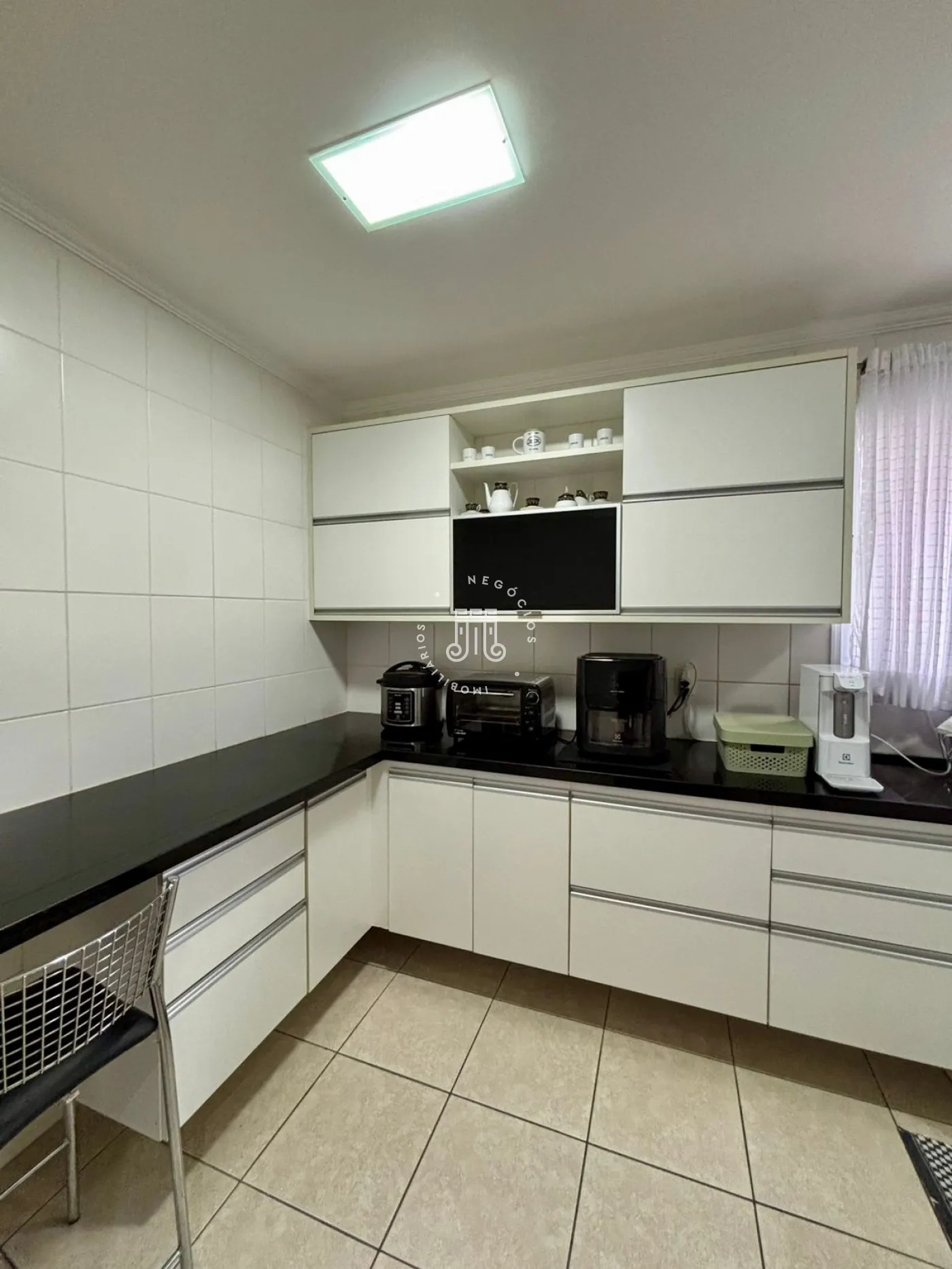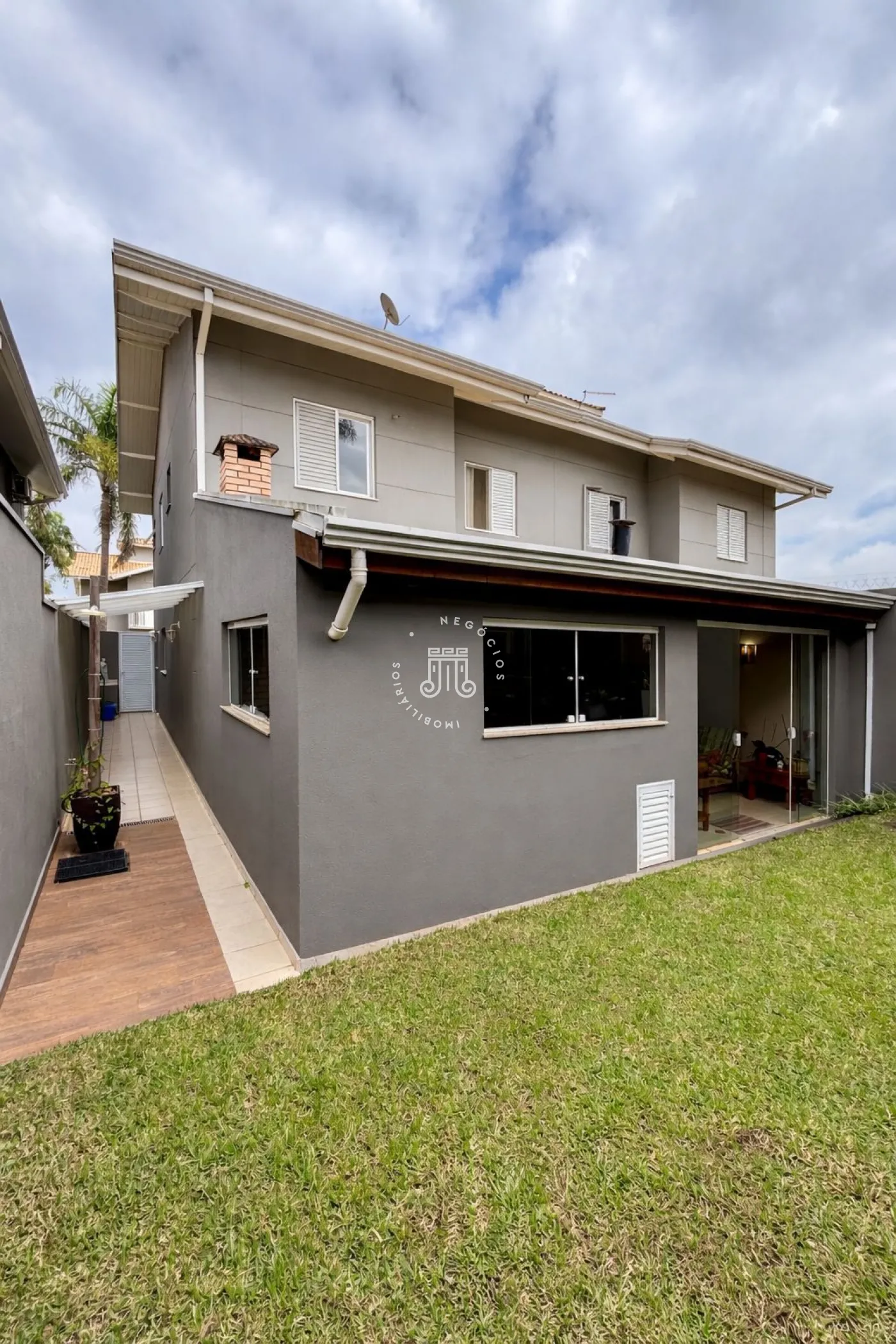 Possui 4 dormitórios, sendo 1 suíte, todos com planejados e 2 com ar condicionado, sala 2 ambientes, cozinha planejada, banheiro social, lavabo, área de serviço com armários, espaço gourmet com churrasqueira, fogão cooktop e forno, quintal gramado com Spa, 4 vagas de garagem, sendo 1 coberta.