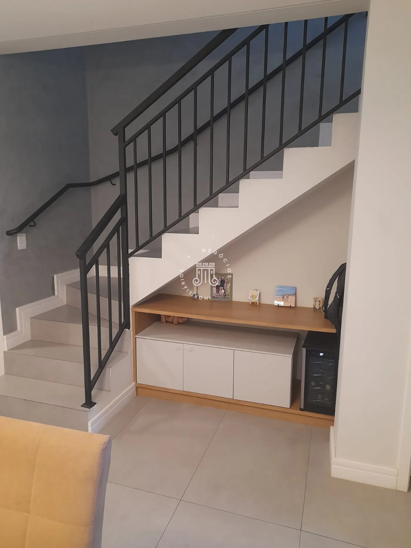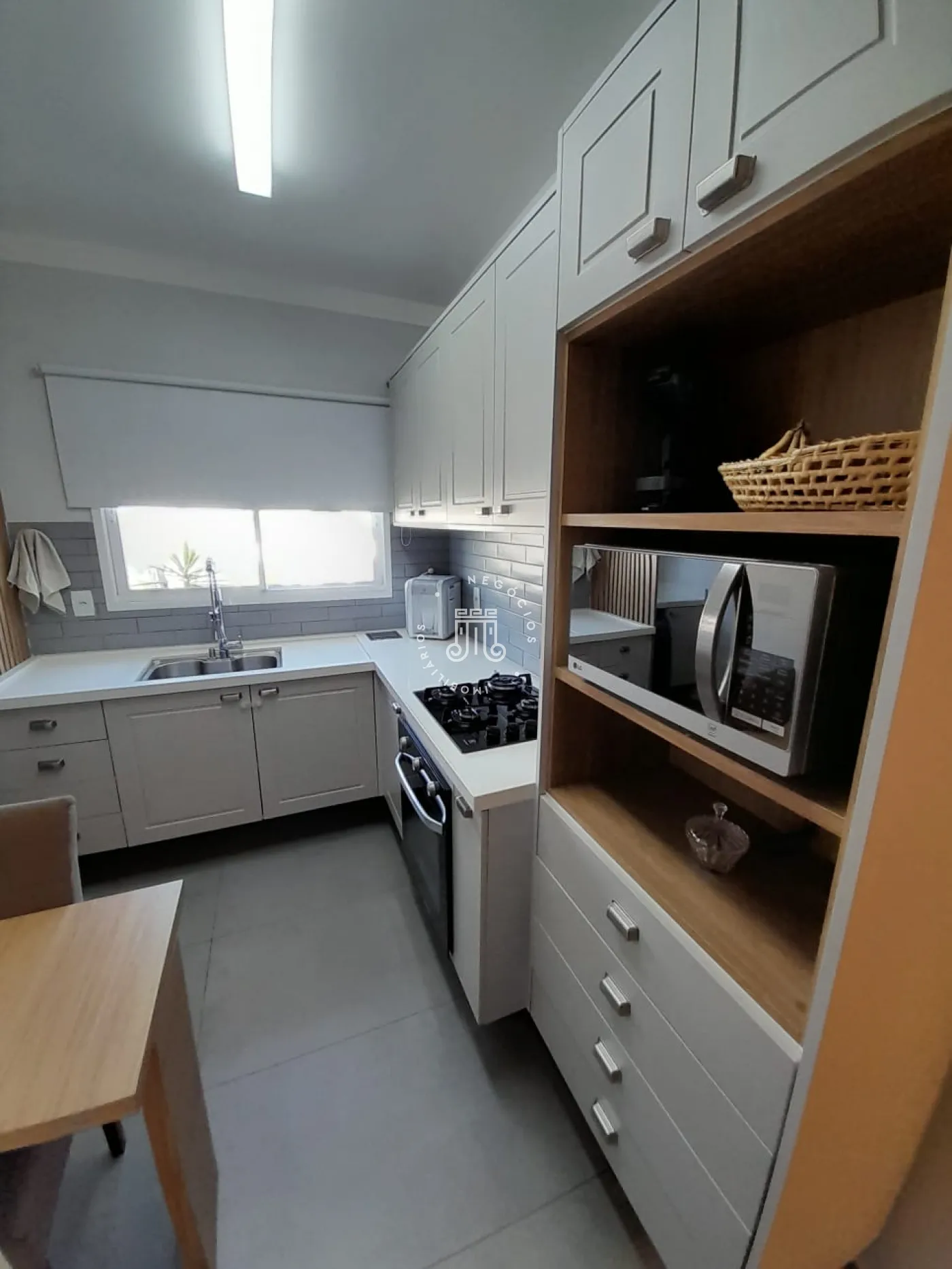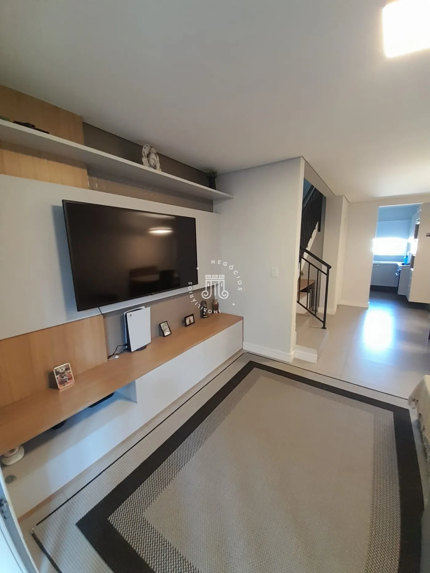 Sobrado com 2 suítes (uma com closet e outra com varanda), sala para 2 ambientes com painel para TV, cozinha planejada, lavabo, área de serviço com armários e área gourmet com churrasqueira e teto retrátil. Possui 2 vagas de garagem.