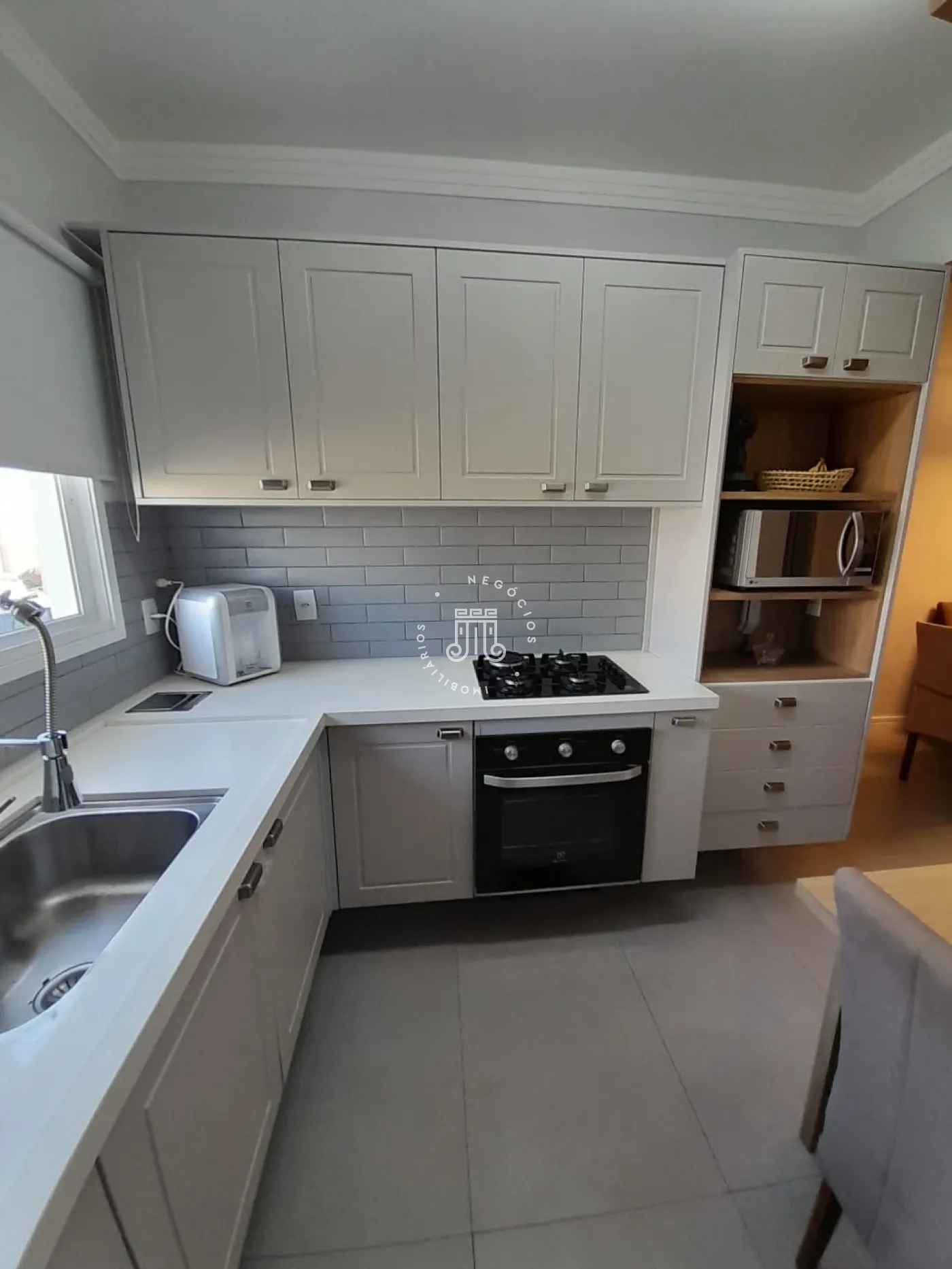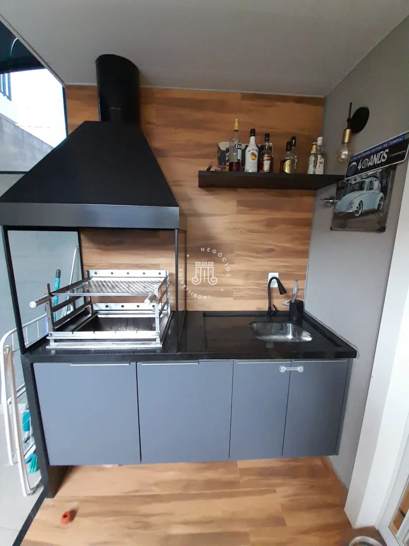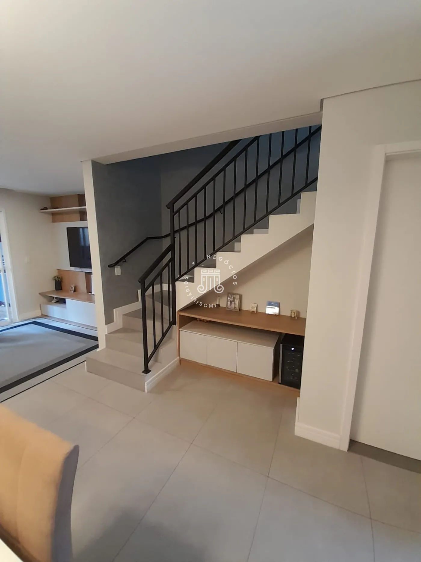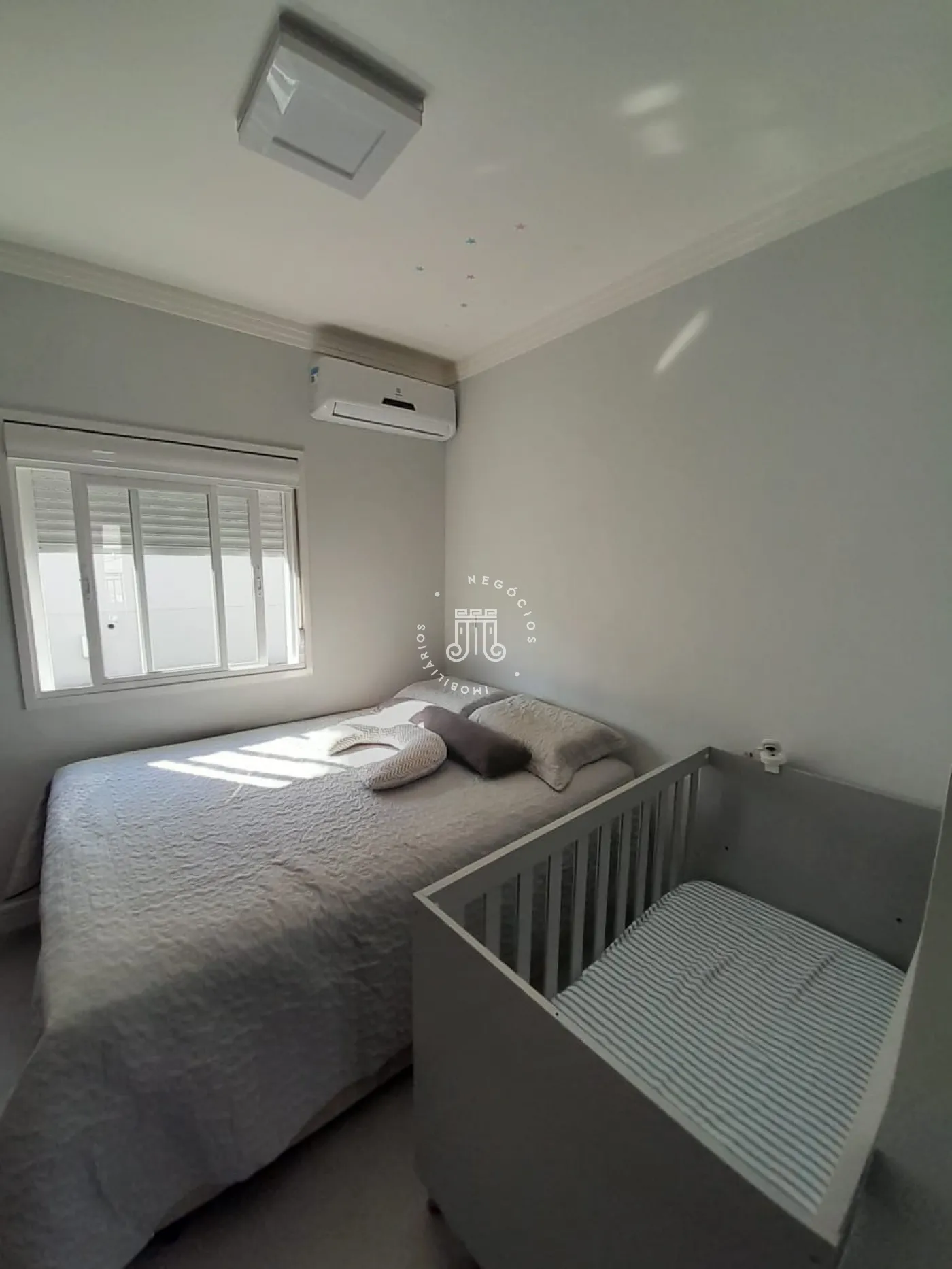 Sobrado com 2 suítes (uma com closet e outra com varanda), sala para 2 ambientes com painel para TV, cozinha planejada, lavabo, área de serviço com armários e área gourmet com churrasqueira e teto retrátil. Possui 2 vagas de garagem.
