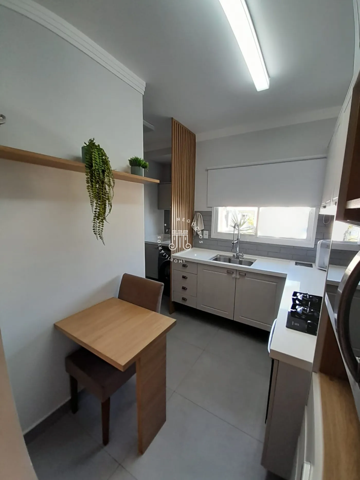 O condomínio oferece lazer completo, incluindo piscina, churrasqueira, salão de festas, salão de jogos, sala fitness e playground.