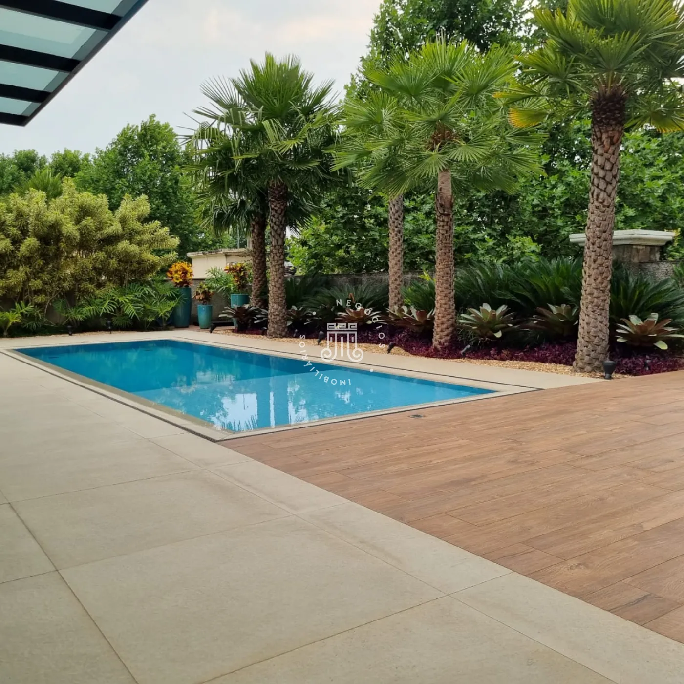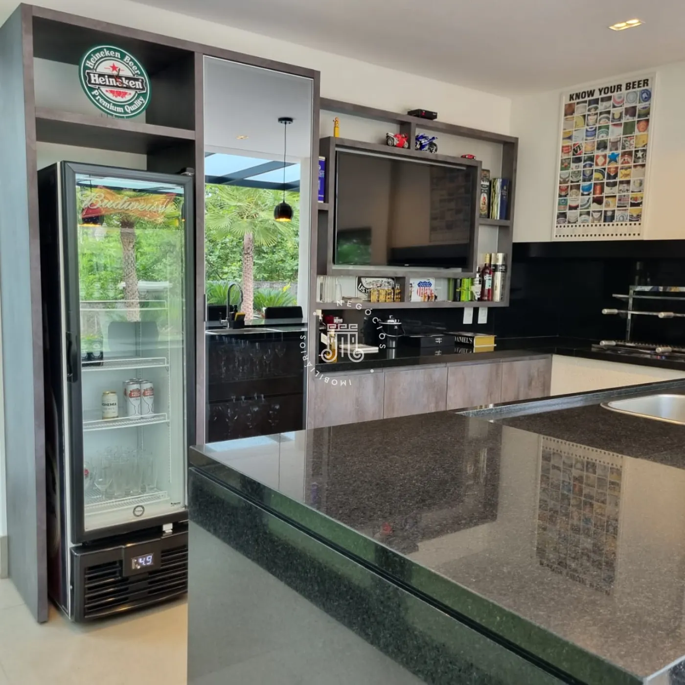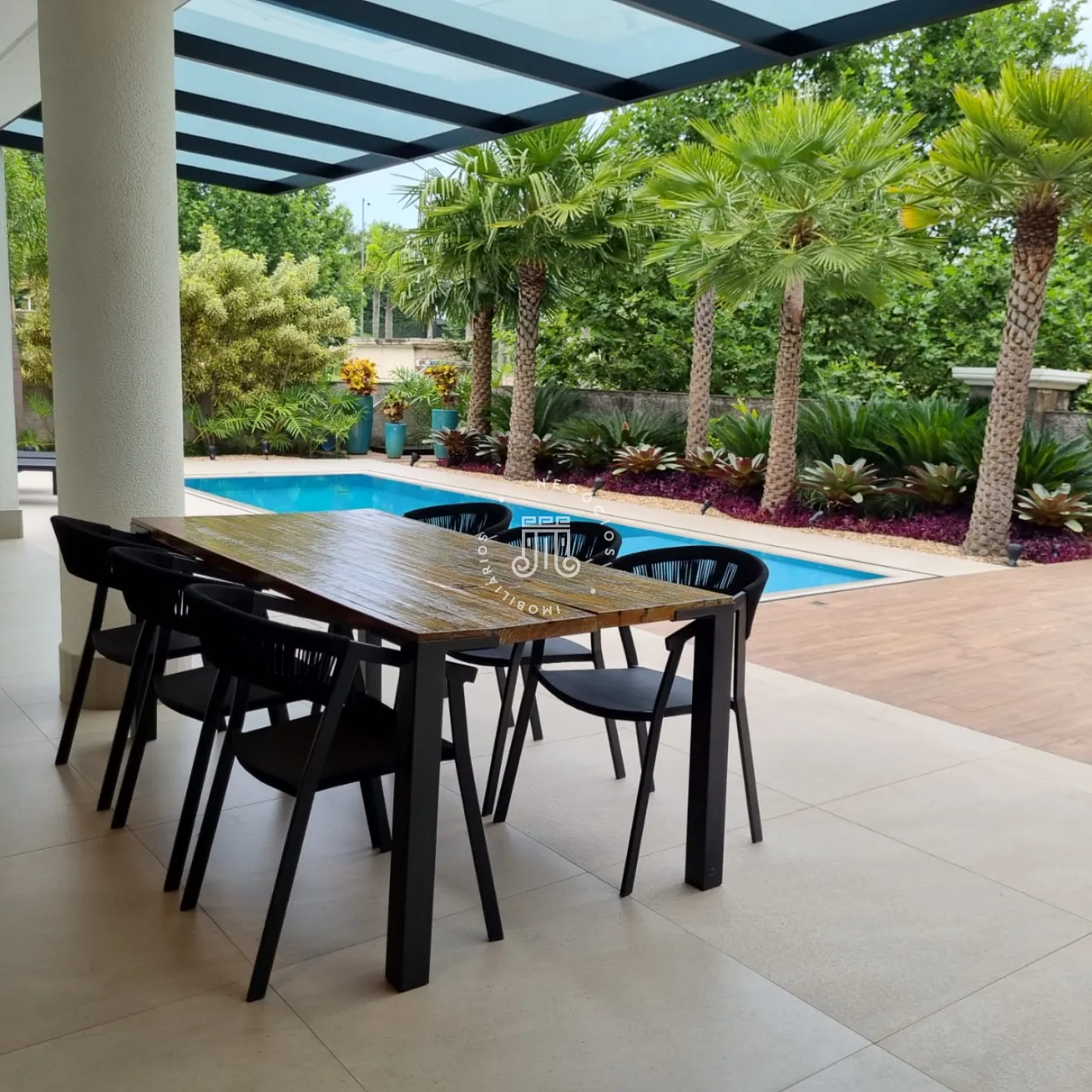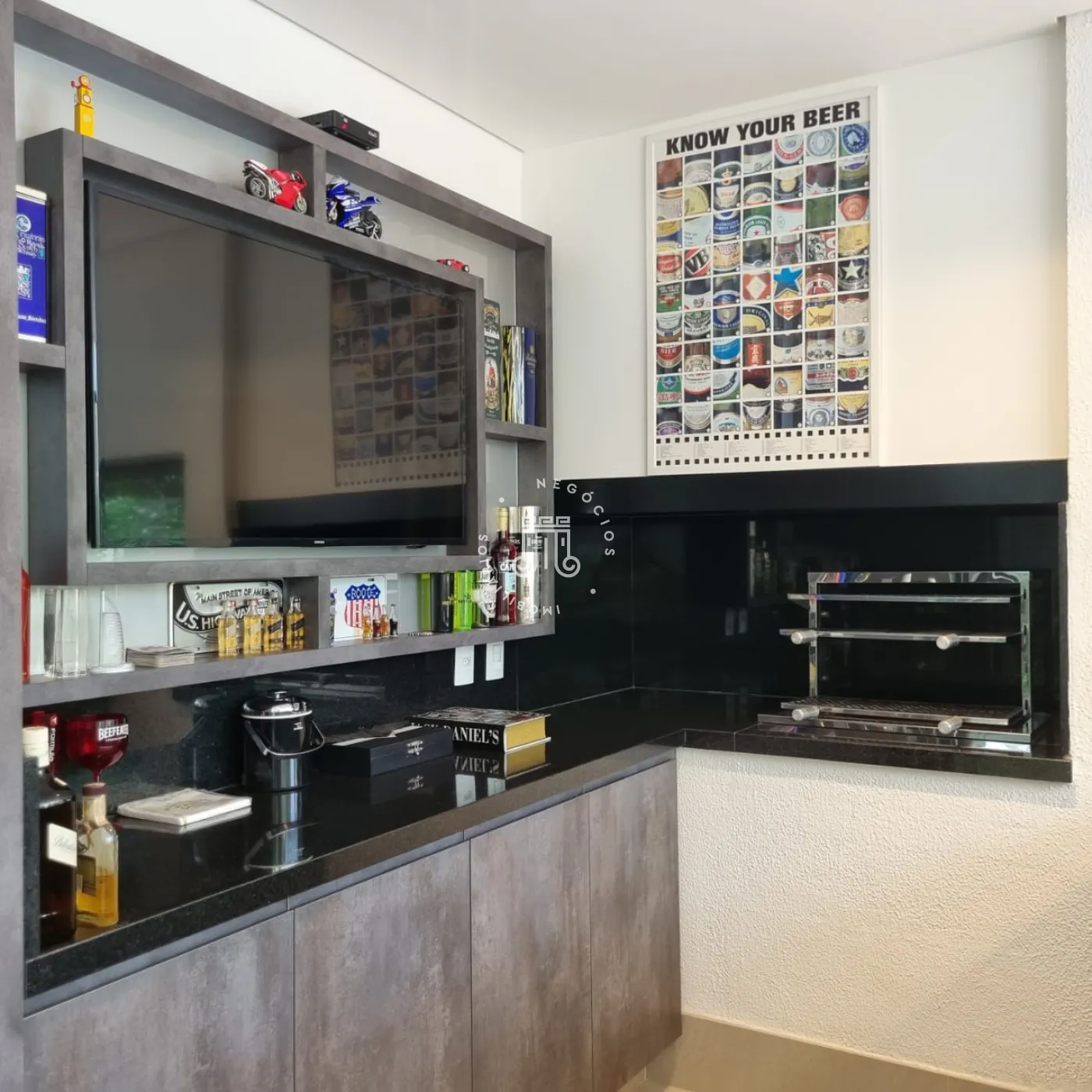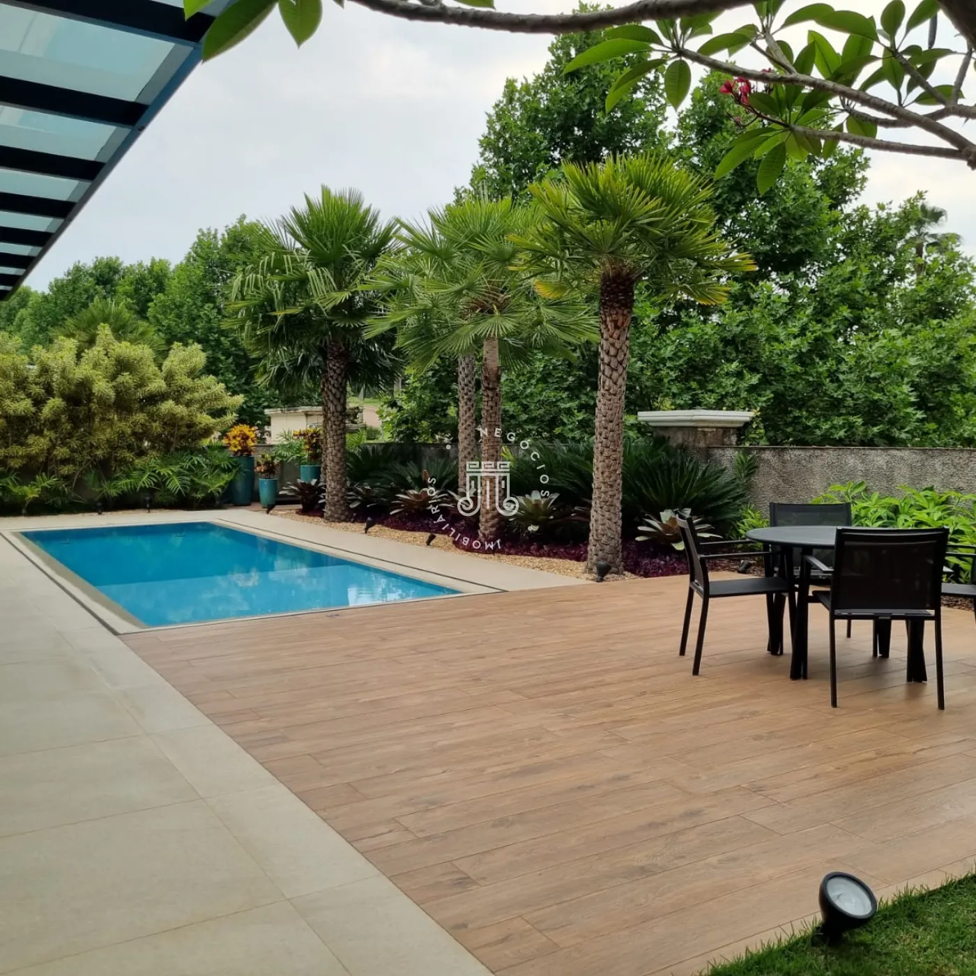 Parte térrea, living com pé direito duplo ,sala de jantar, lavabo ,cozinha com ilha integrada a sala de jantar e com armários planejados ,despensa, área de serviço, banheiro de serviço, amplo quintal, piscina, espaço gourmet com churrasqueira e 6 vagas de garagem sendo 3 cobertas.