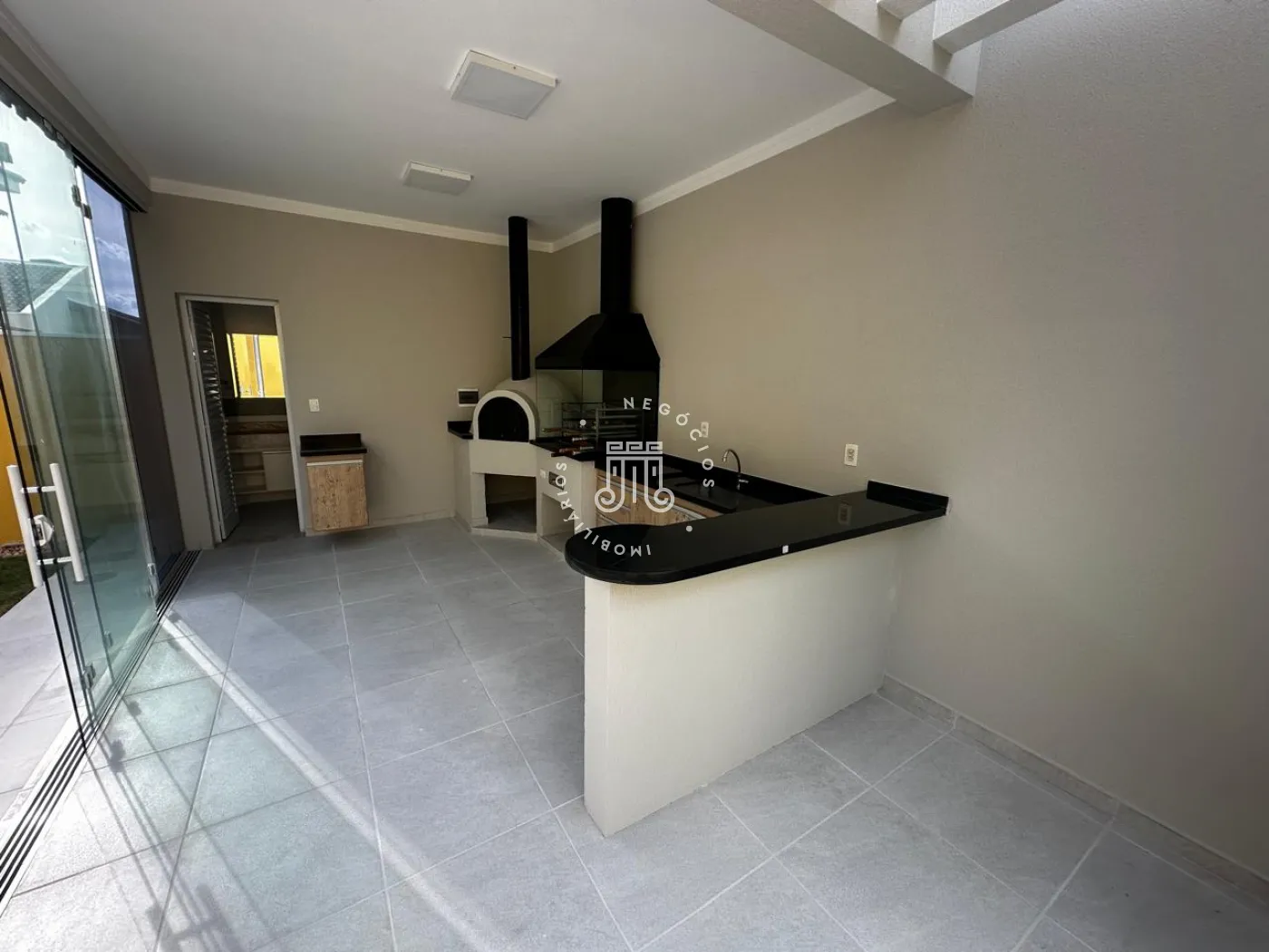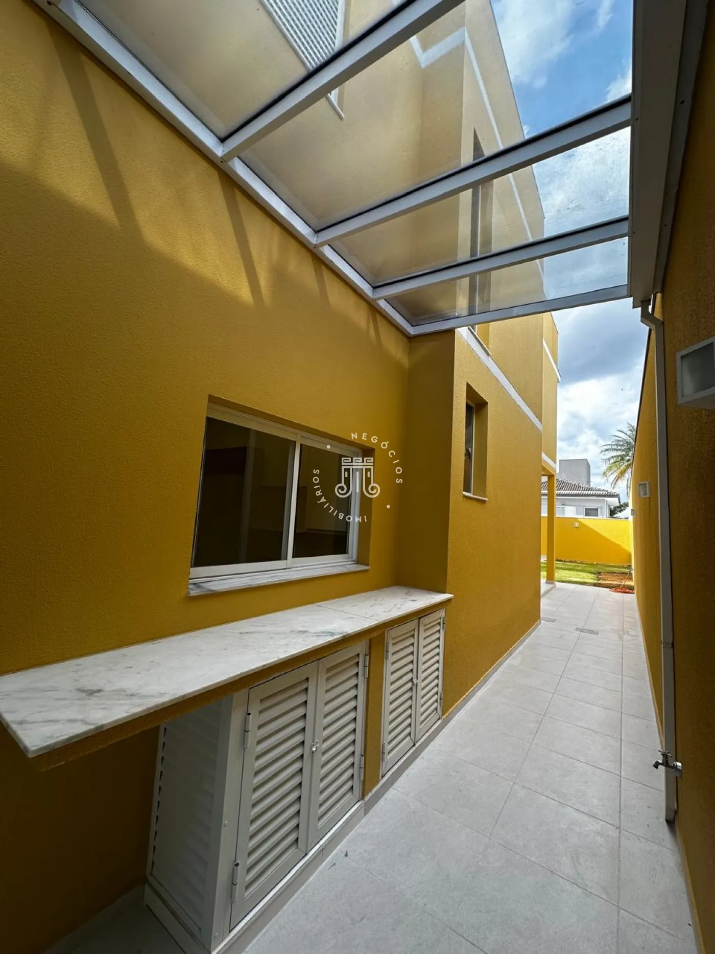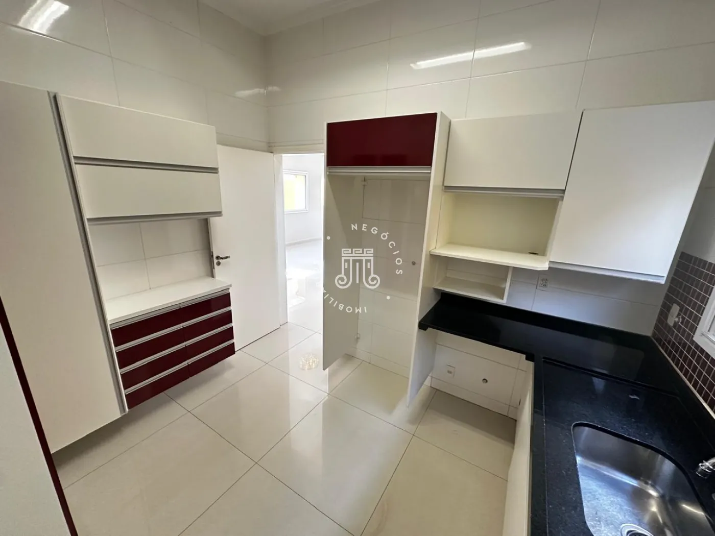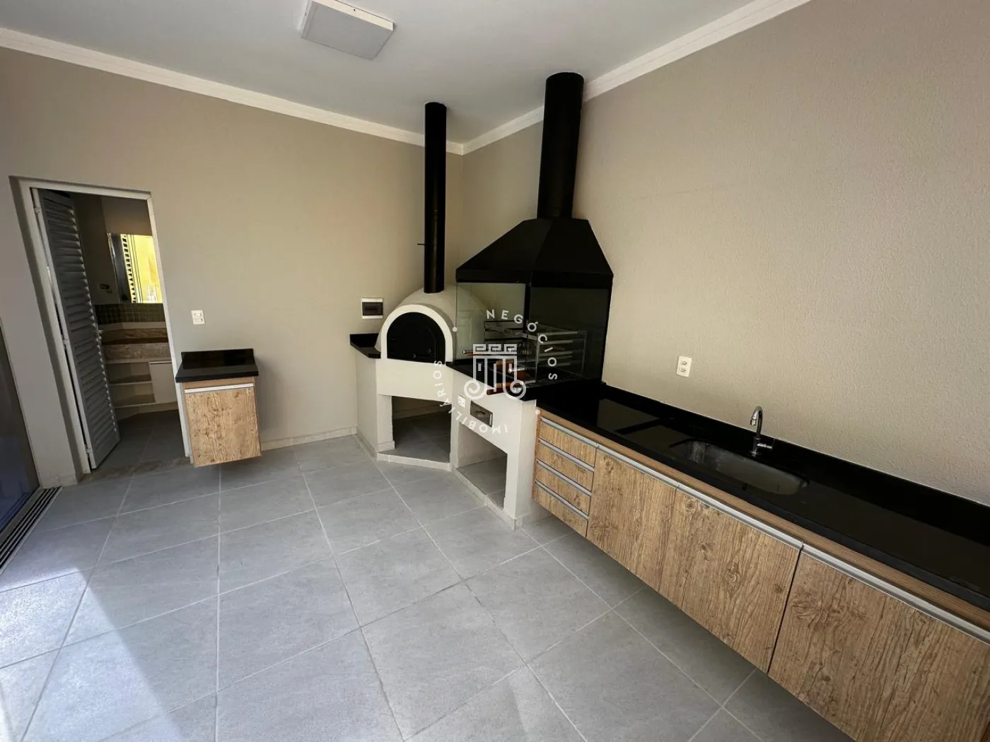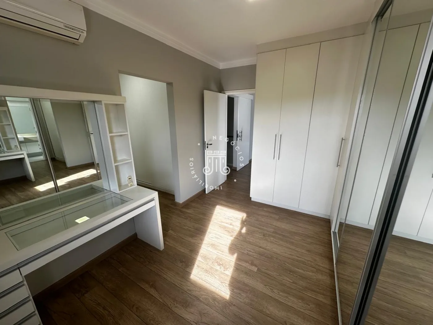 Imóvel composto por três suítes, sendo uma delas com closet de grandes dimensões. Possui sala com capacidade para três ambientes, cozinha com armários, despensa e edícula nos fundos equipada com churrasqueira e forno de pizza. Todos os quartos estão equipados com guarda-roupas modulados e aparelhos de ar-condicionado. A construção está situada em terreno delimitado, com acesso por via pública pavimentada e conta com infraestrutura de água, energia elétrica e esgoto.
