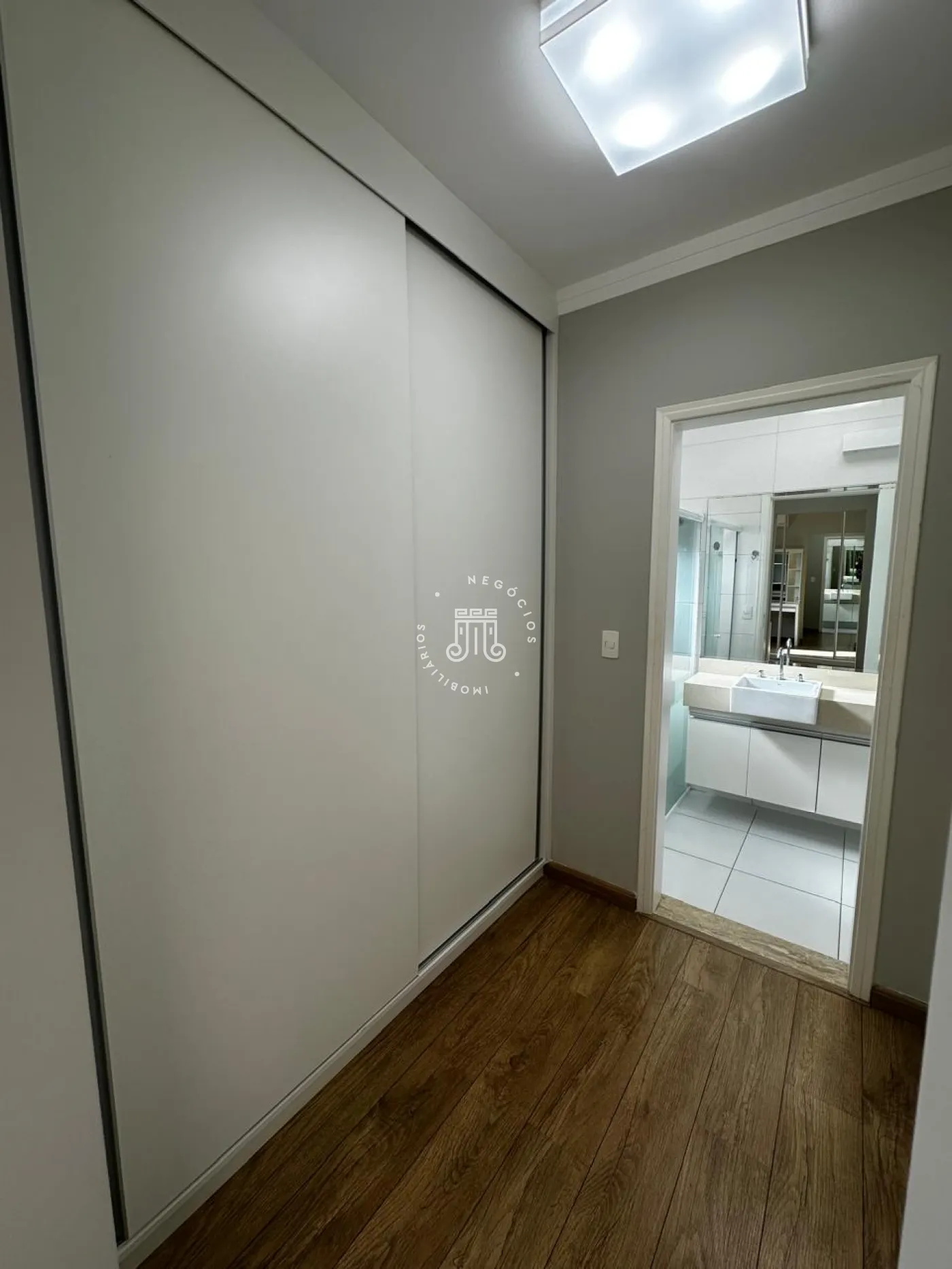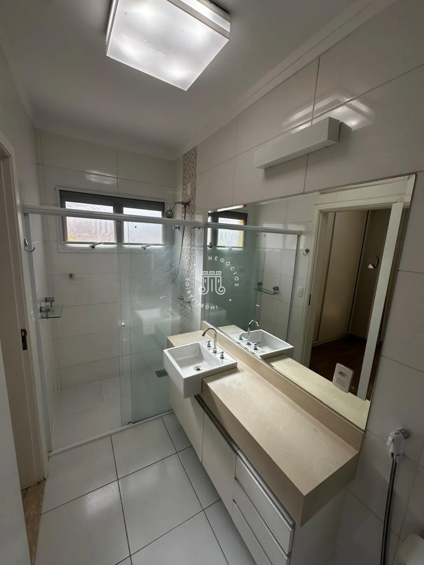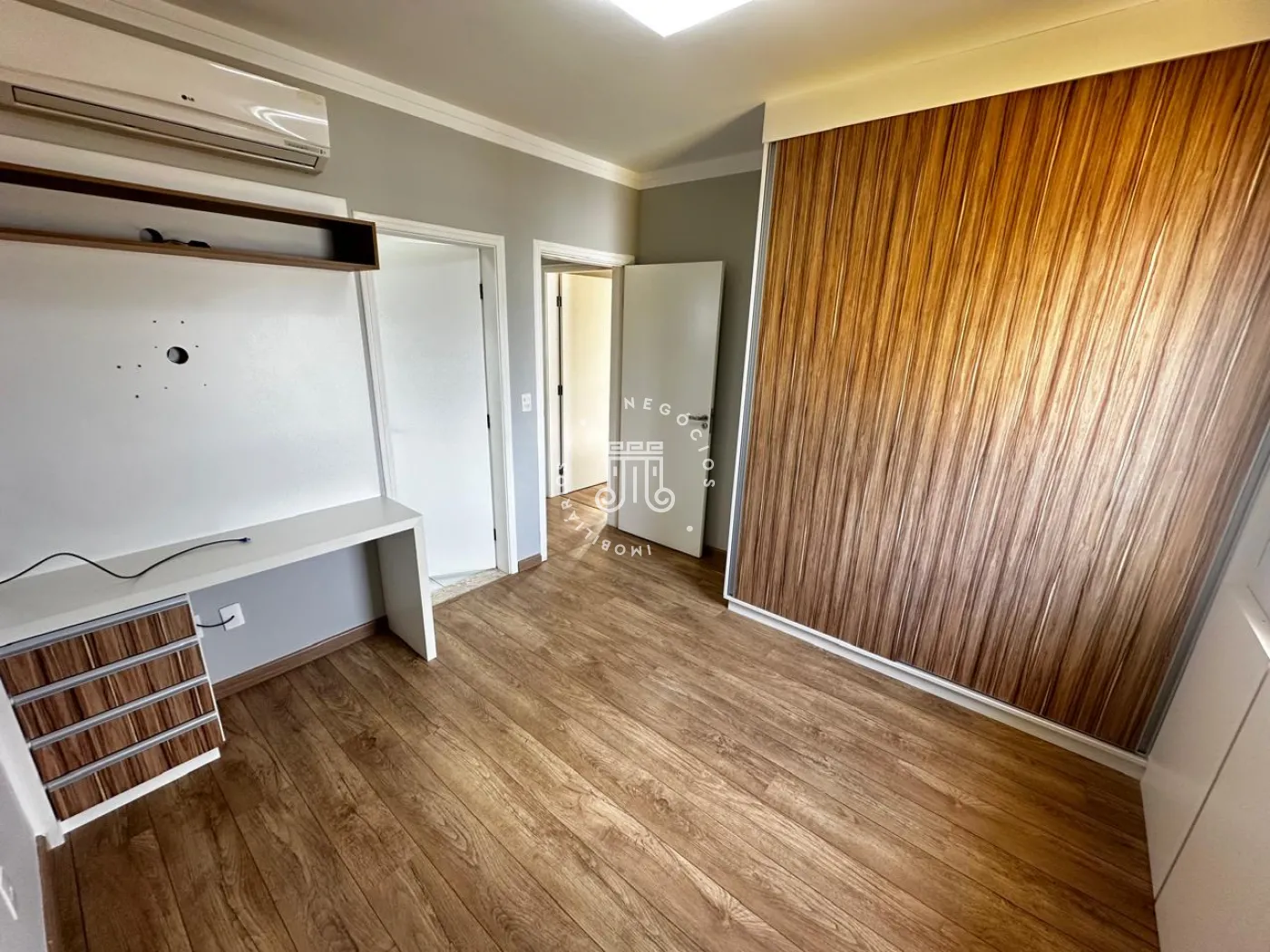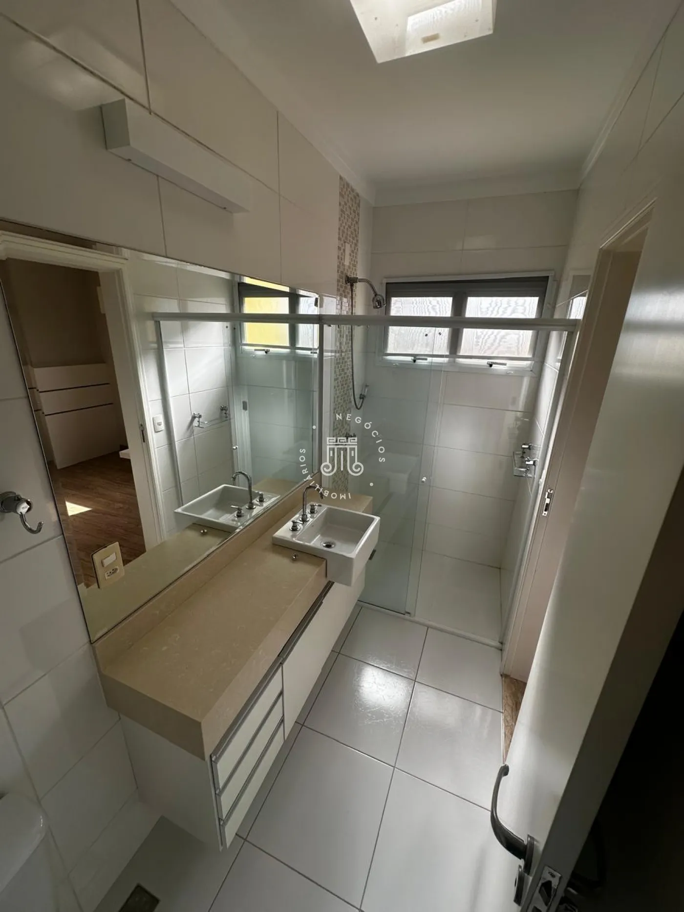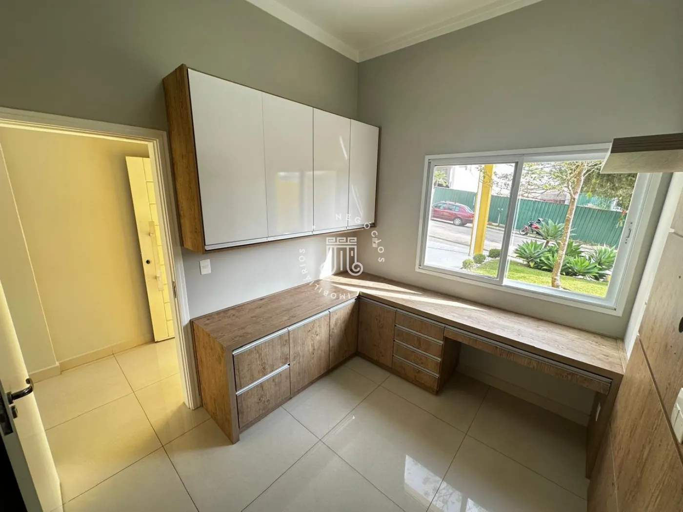 Imóvel composto por três suítes, sendo uma delas com closet de grandes dimensões. Possui sala com capacidade para três ambientes, cozinha com armários, despensa e edícula nos fundos equipada com churrasqueira e forno de pizza. Todos os quartos estão equipados com guarda-roupas modulados e aparelhos de ar-condicionado. A construção está situada em terreno delimitado, com acesso por via pública pavimentada e conta com infraestrutura de água, energia elétrica e esgoto.